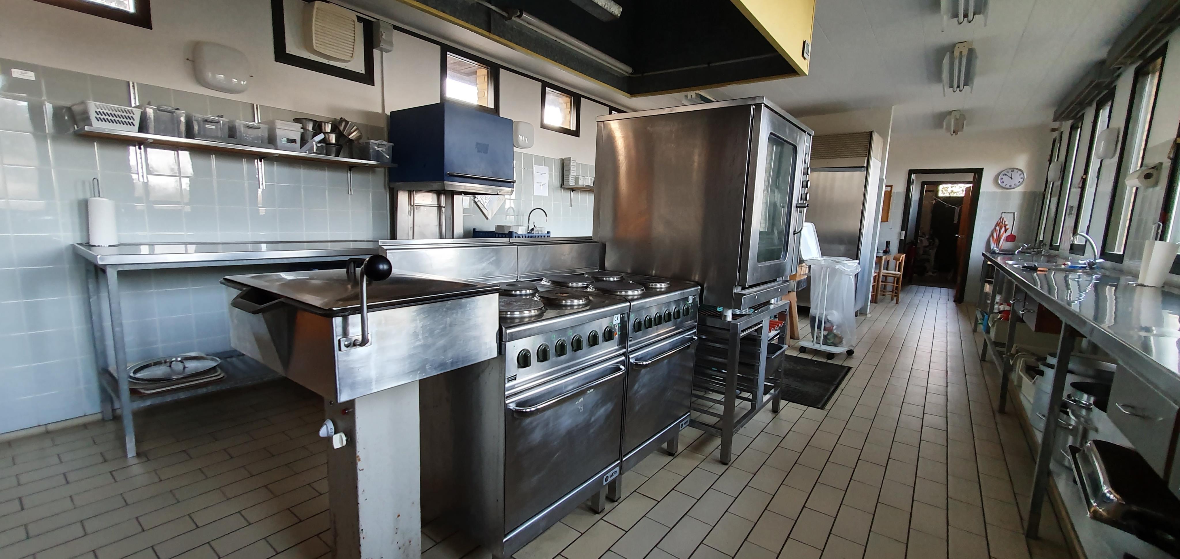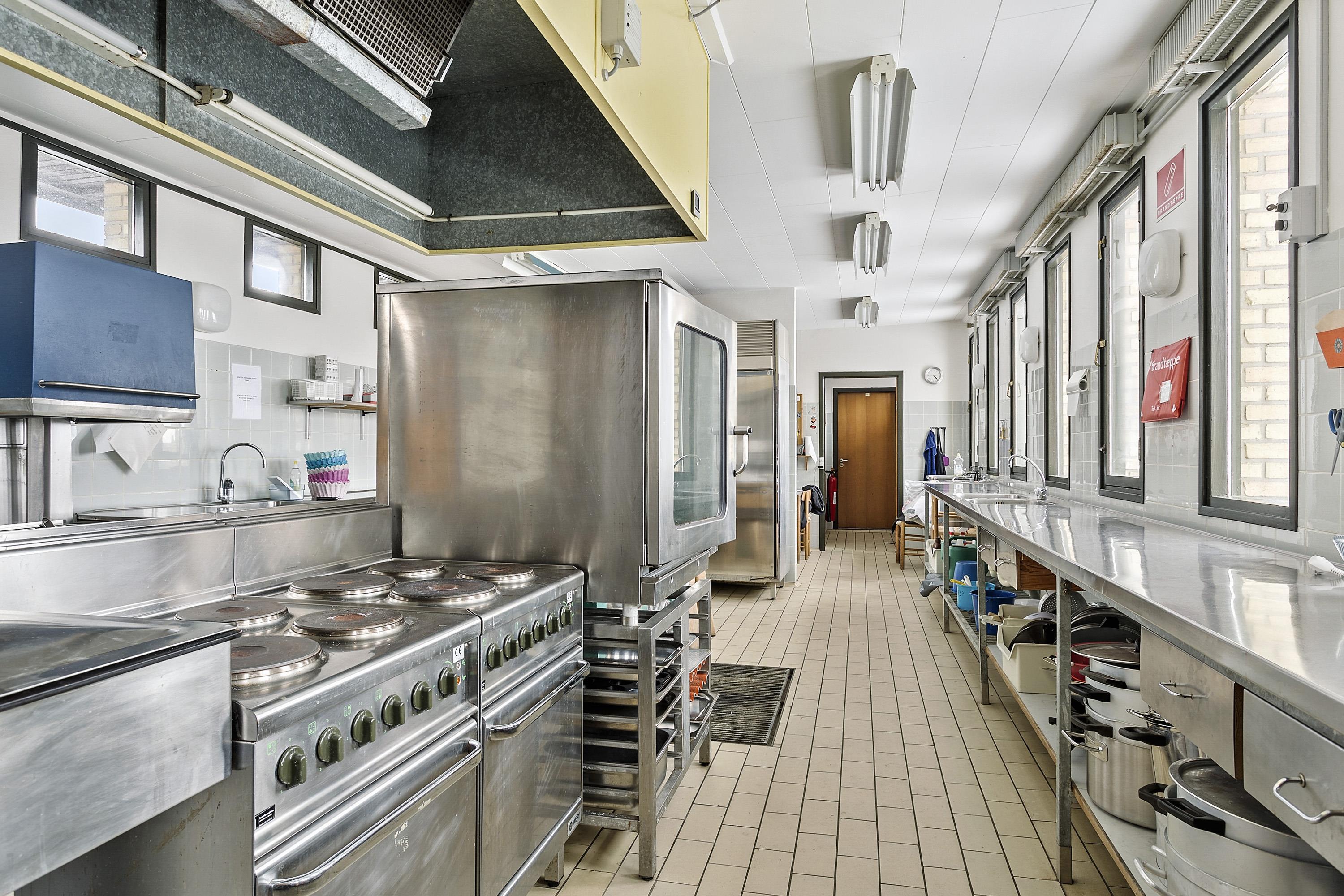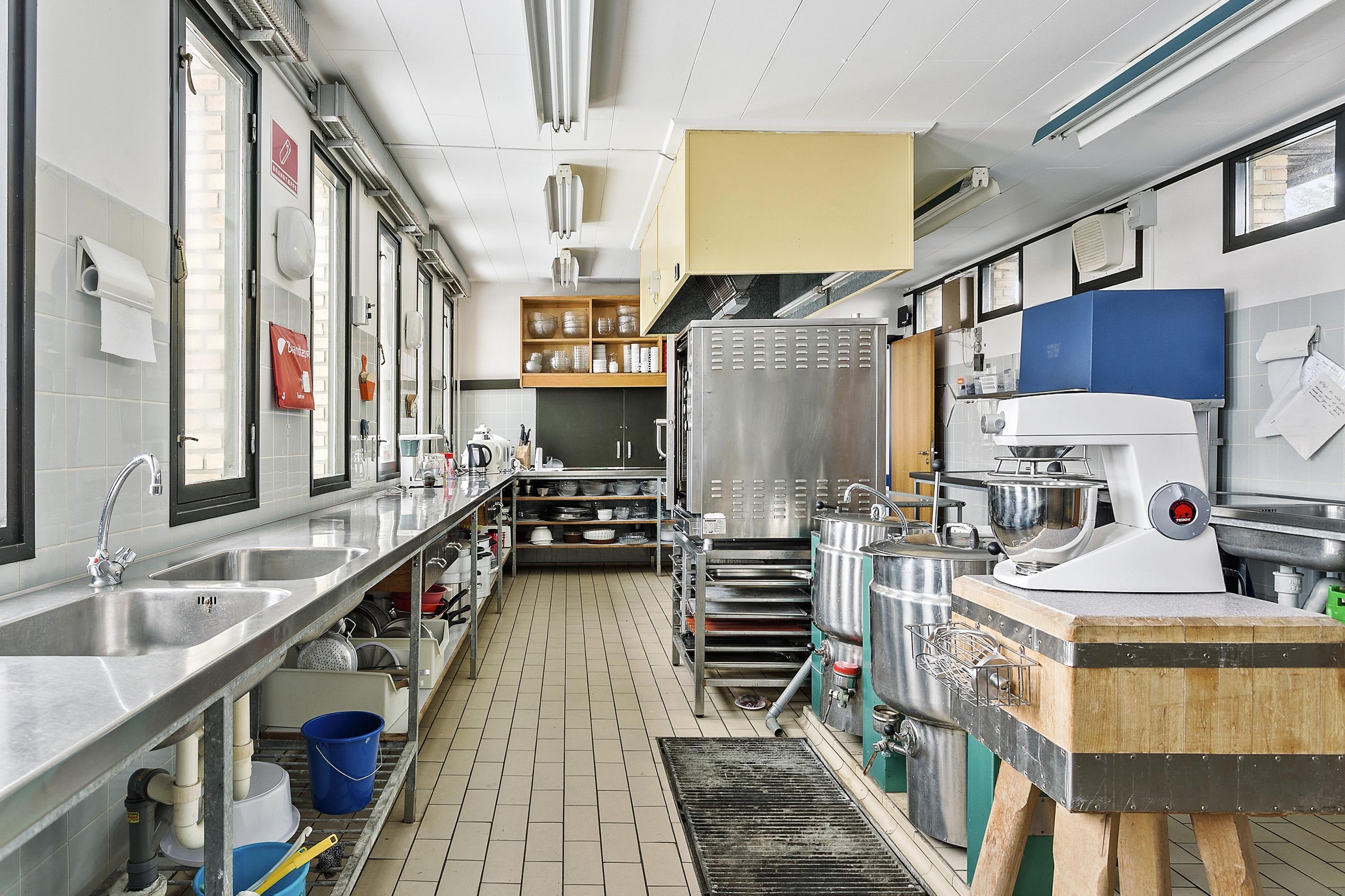 Huge kitchen with everything that belongs to, among other things, 2 fridge, small freezer and commercial dishwasher.