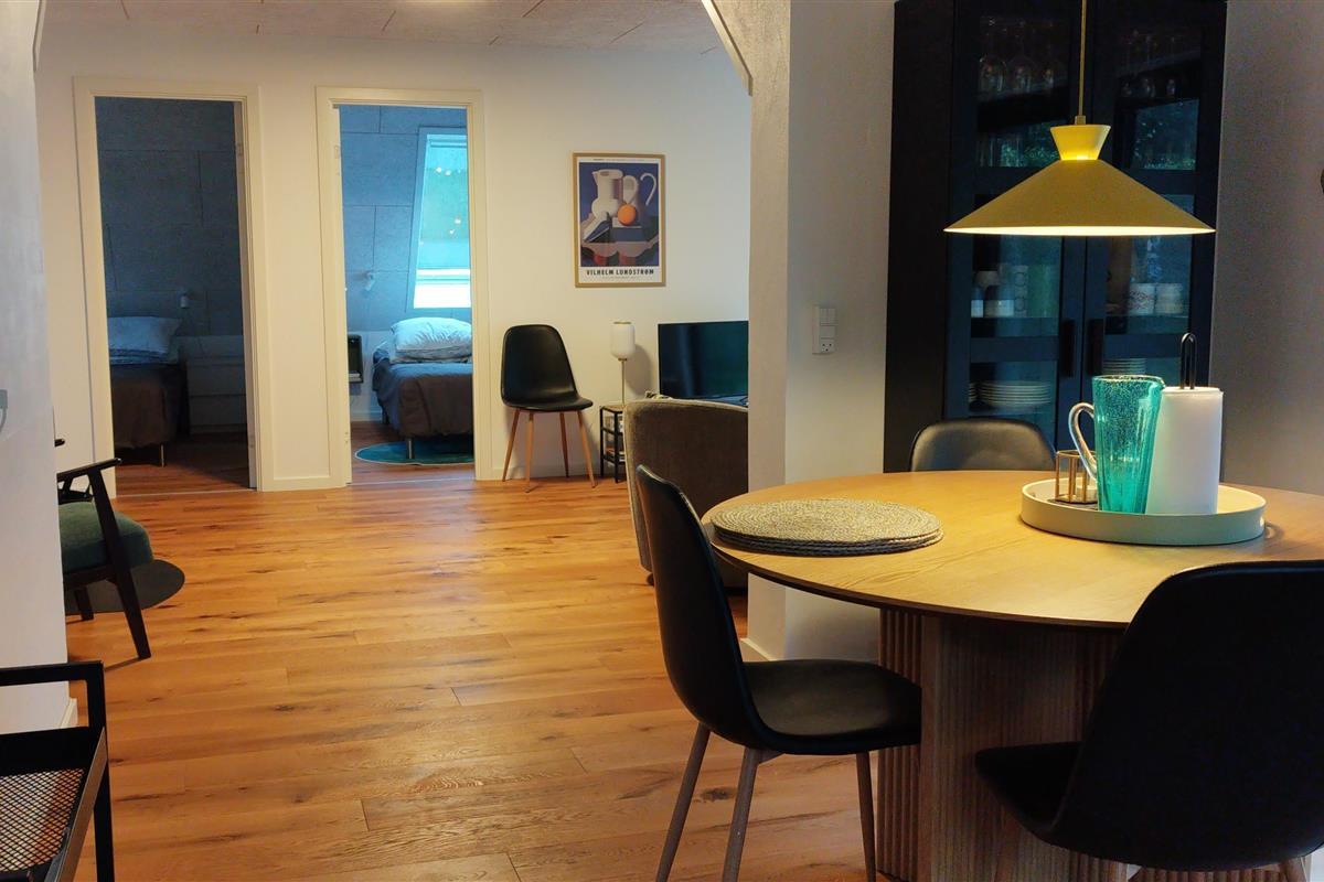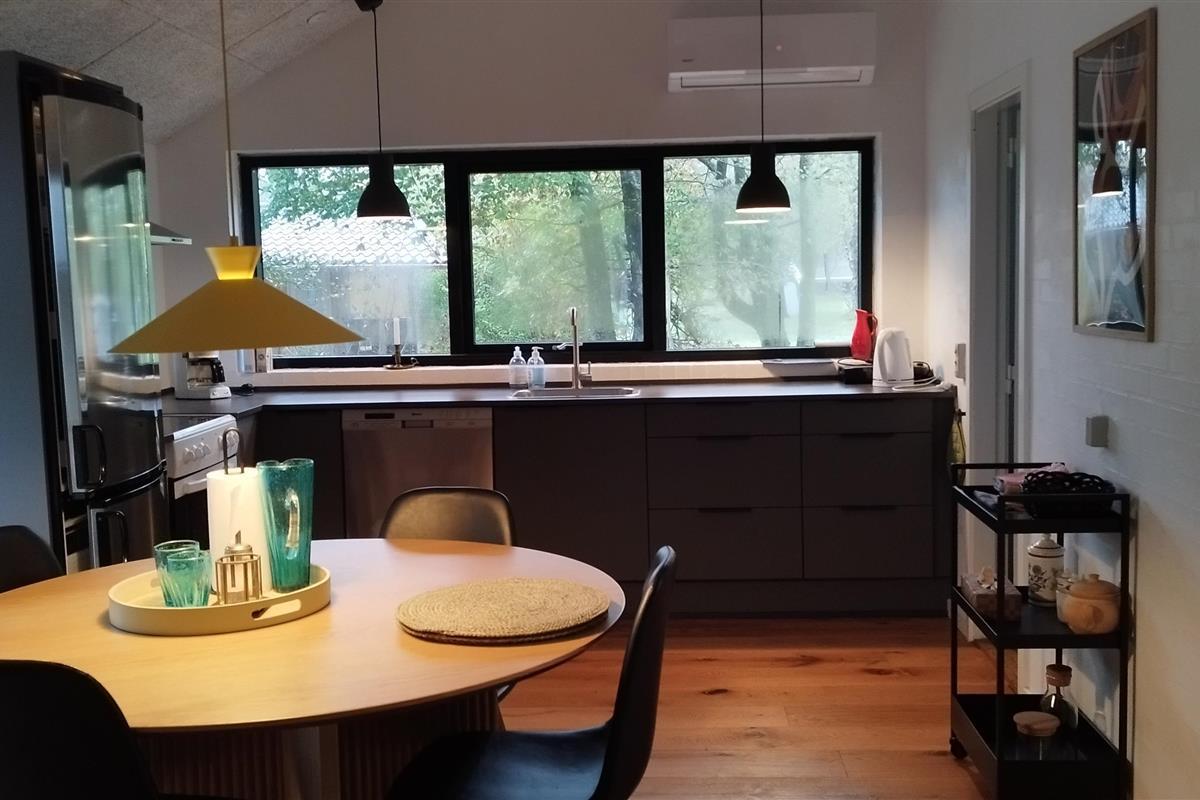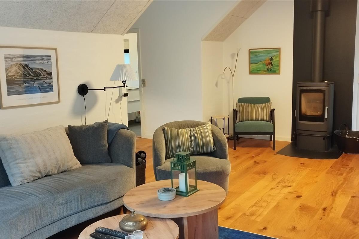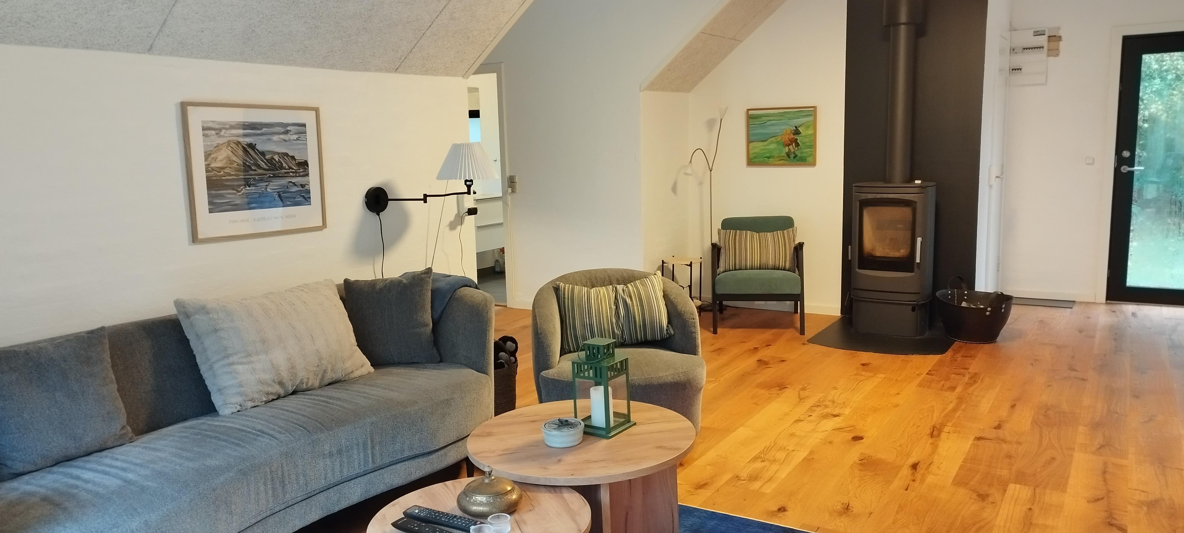 90 m2 beautiful cottage only 100 m from the fjord with a bathing jetty and very close to Ejerslev Harbour. There are 3 rooms in the house, each with 1 double bed. Lovely combined kitchen - living room with a view of the fjord. The house was renovated in 2024, and appears nice and bright. Just around the corner is Ejerslev Harbour with a lagoon, where the mole slopes rise high and where it is allowed to seek your fortune as a fossil hunter. It is also in Nordmors that you will find the Fossil and Mole Museum, which tells 55 million years of history through the many finds made in the mole at Mors. In the area is also the agricultural museum Skarregaard, where time stood still in 1958. There is also a beautiful nature playground here. The highest point on Mors is Salgjerhøj 89 m. Salgjerhøj is located in a narrow and impressive hill, from which you have a 360-degree view of the entire island and where you can count many of the island's 34 churches. Hanklit is probably the most famous mole slope at 61 m. Don't miss a trip to the top, where you will be rewarded with a fantastic view of the island and beyond Thisted Bredning.