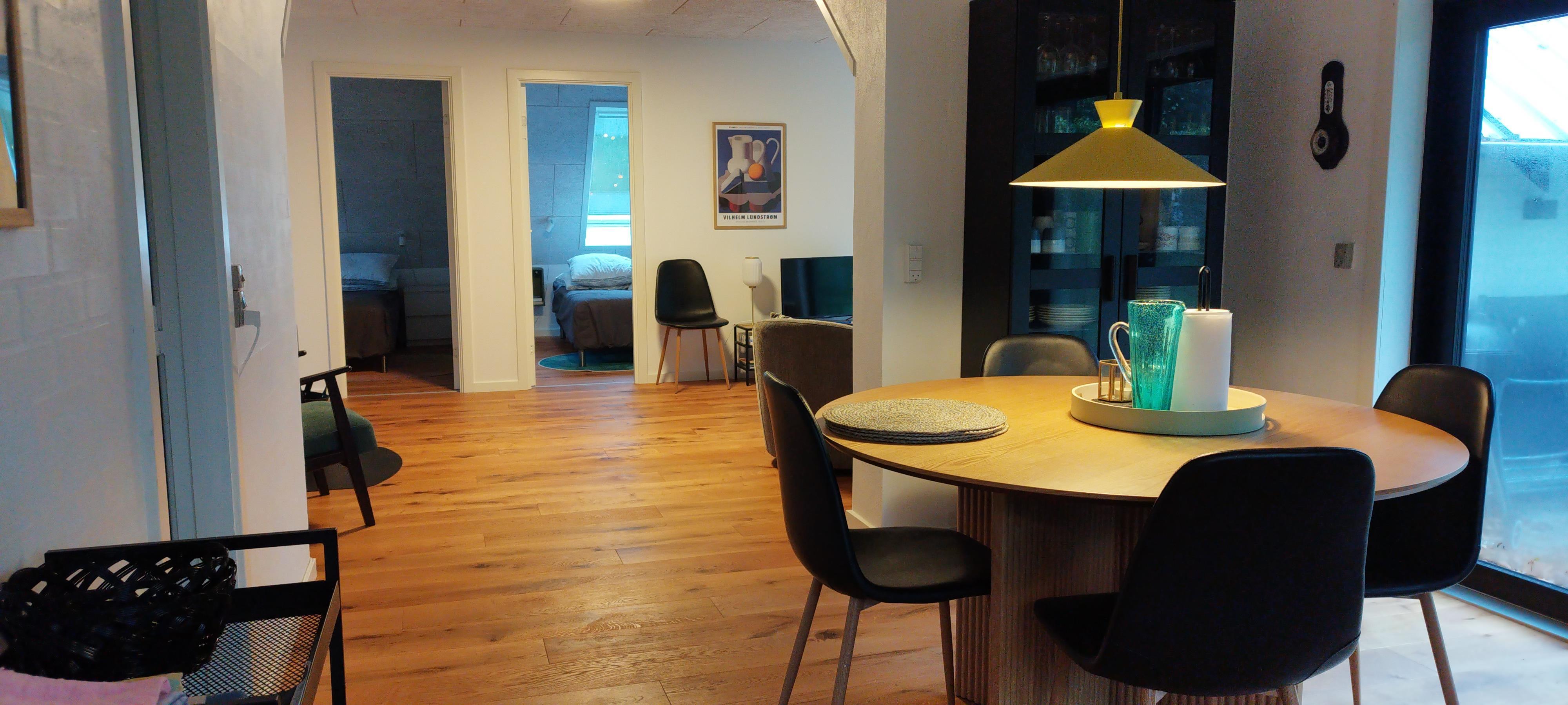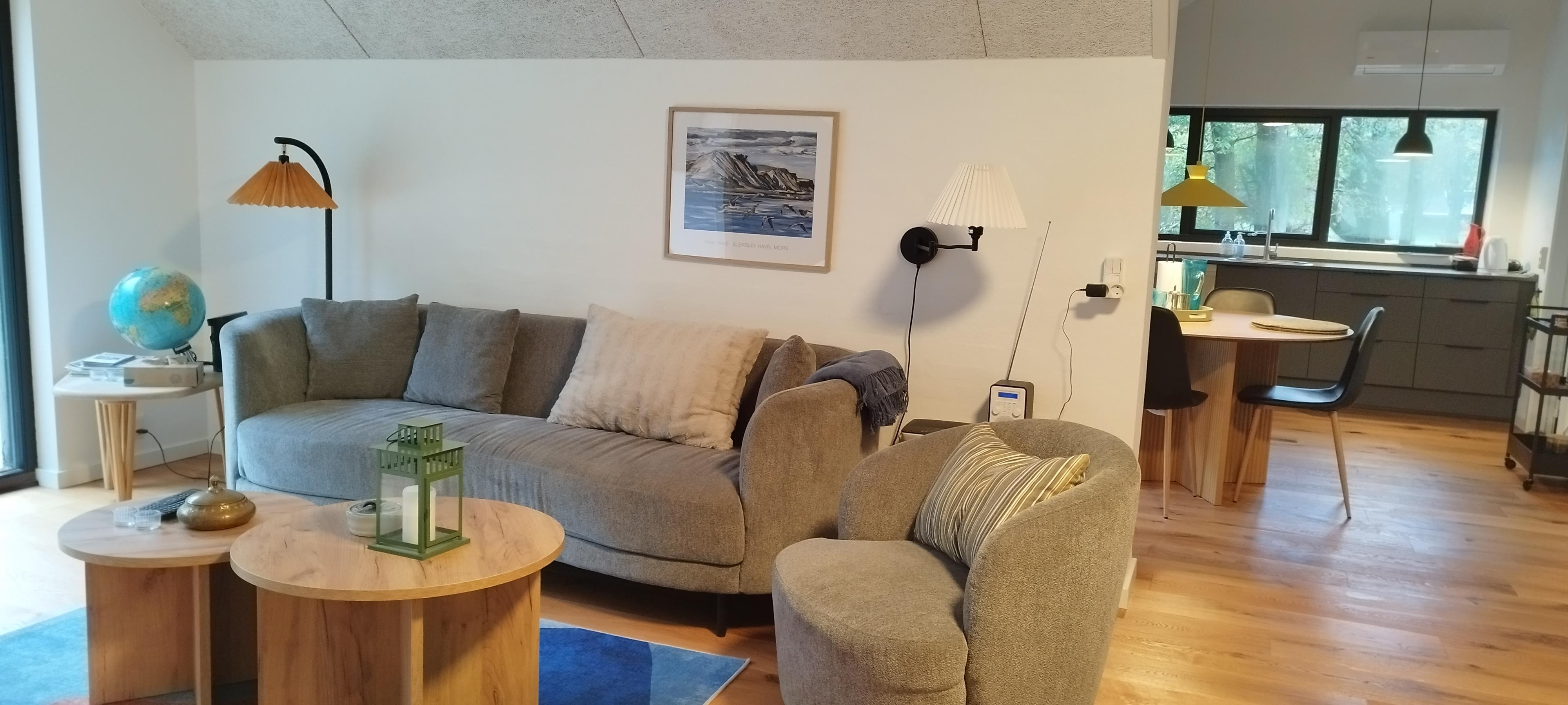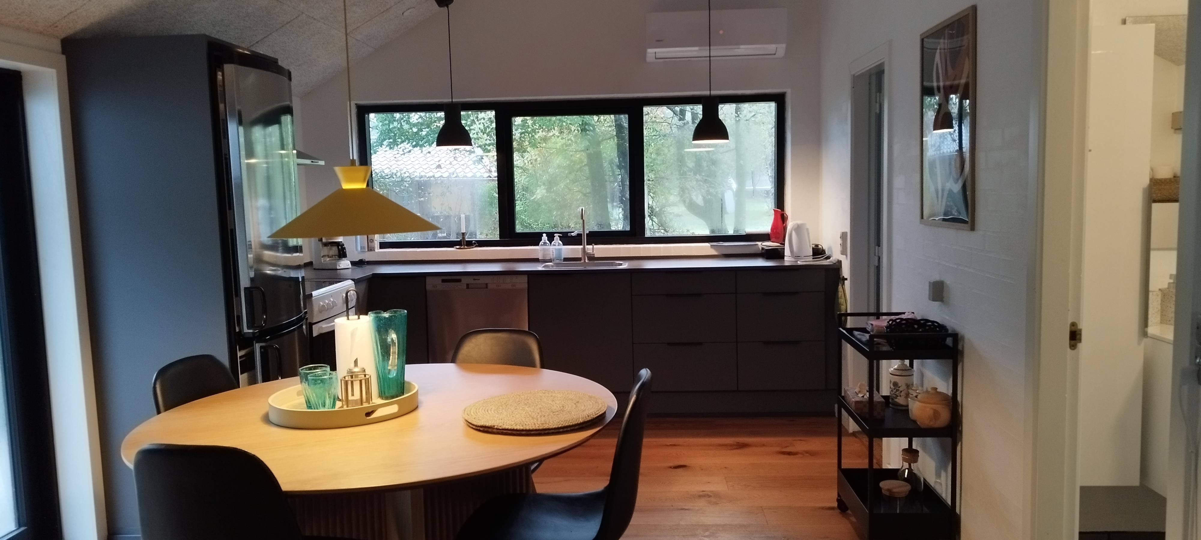 90 m2 beautiful cottage only 100 m from the fjord with a bathing jetty and very close to Ejerslev Harbour. There are 3 rooms in the house, each with 1 double bed. Lovely combined kitchen - living room with a view of the fjord. The house was renovated in 2024, and appears nice and bright. Just around the corner is Ejerslev Harbour with a lagoon, where the mole slopes rise high and where it is allowed to seek your fortune as a fossil hunter. It is also in Nordmors that you will find the Fossil and Mole Museum, which tells 55 million years of history through the many finds made in the mole at Mors. In the area is also the agricultural museum Skarregaard, where time stood still in 1958. There is also a beautiful nature playground here. The highest point on Mors is Salgjerhøj 89 m. Salgjerhøj is located in a narrow and impressive hill, from which you have a 360-degree view of the entire island and where you can count many of the island's 34 churches. Hanklit is probably the most famous mole slope at 61 m. Don't miss a trip to the top, where you will be rewarded with a fantastic view of the island and beyond Thisted Bredning.