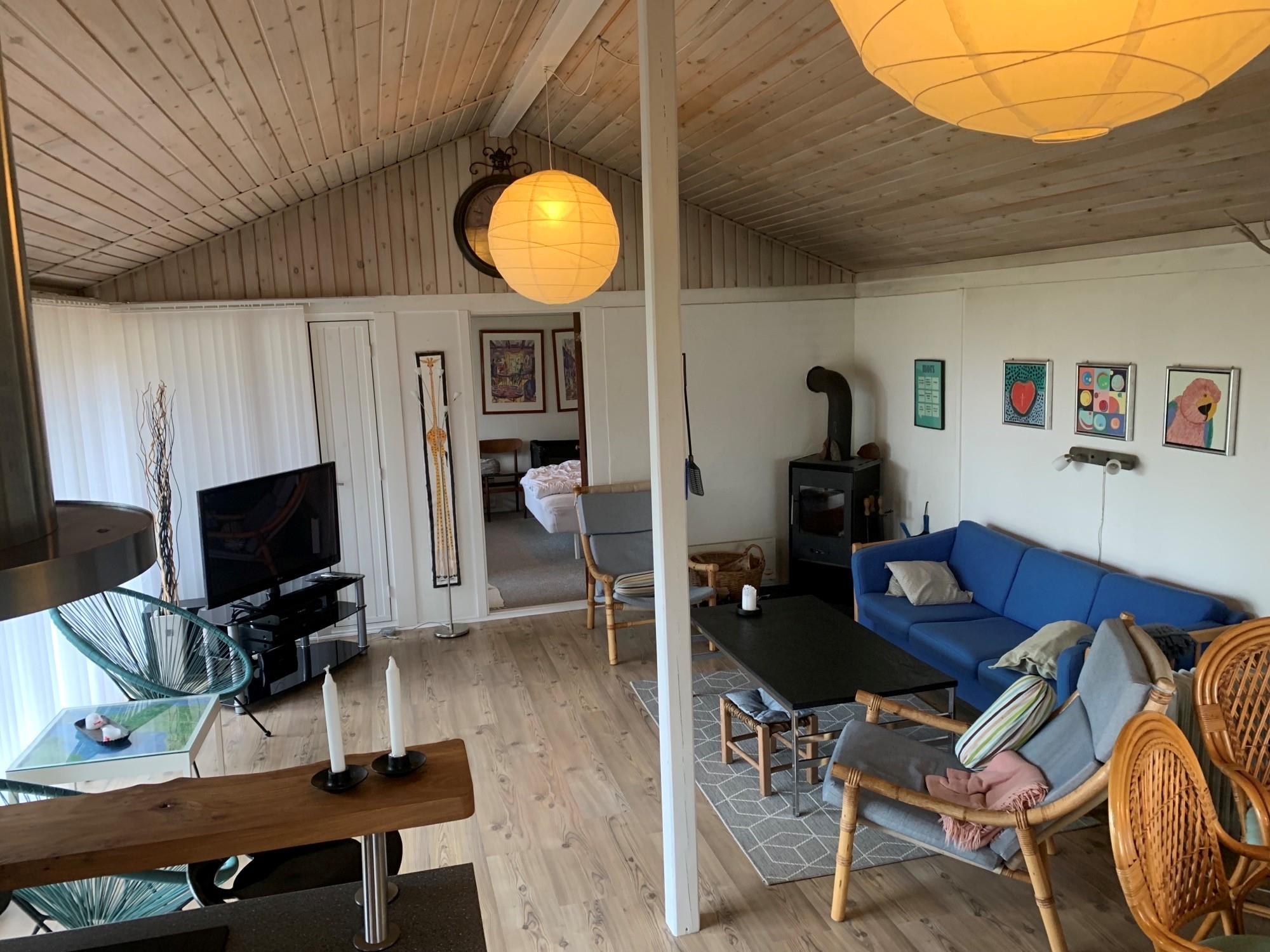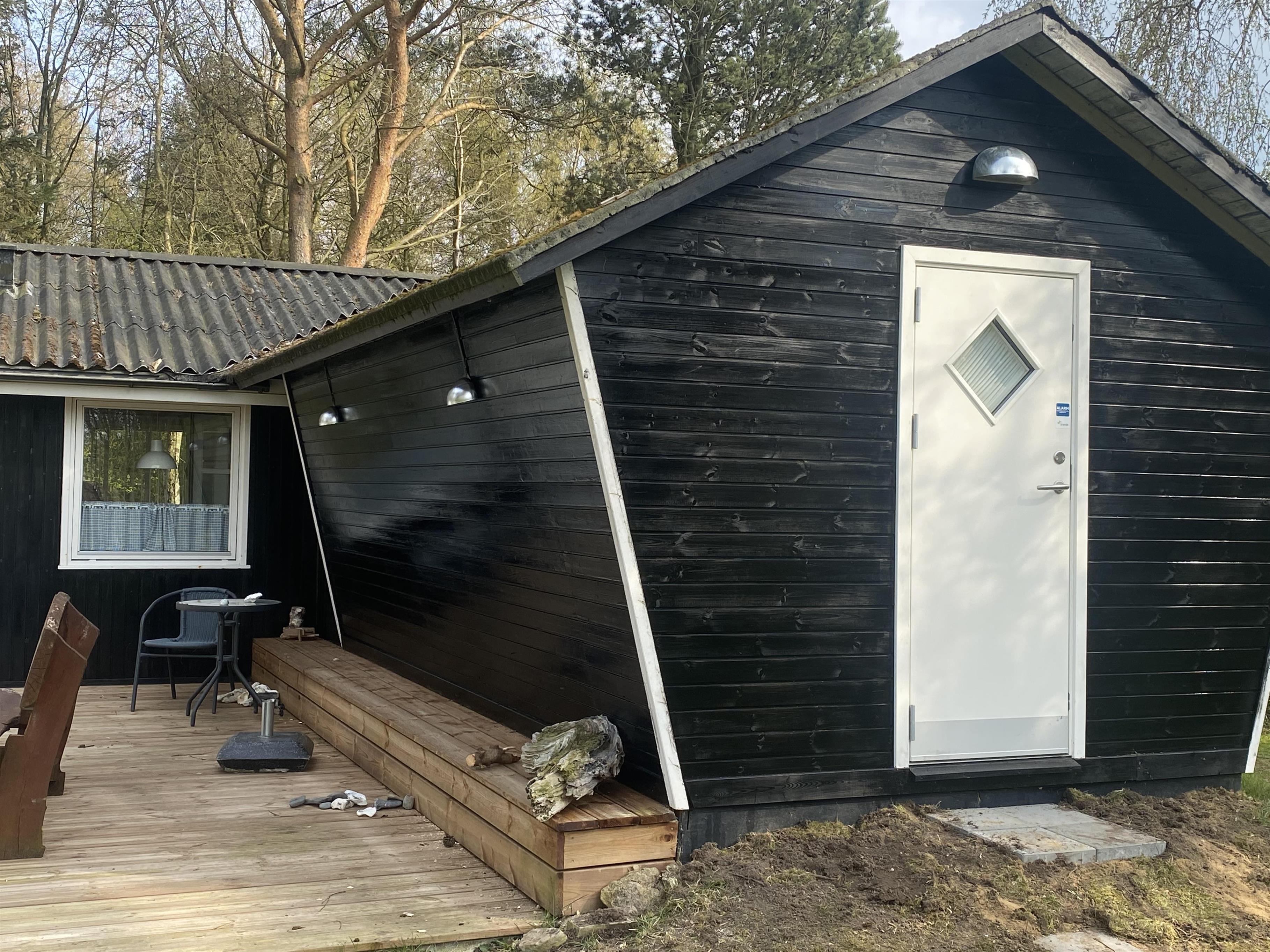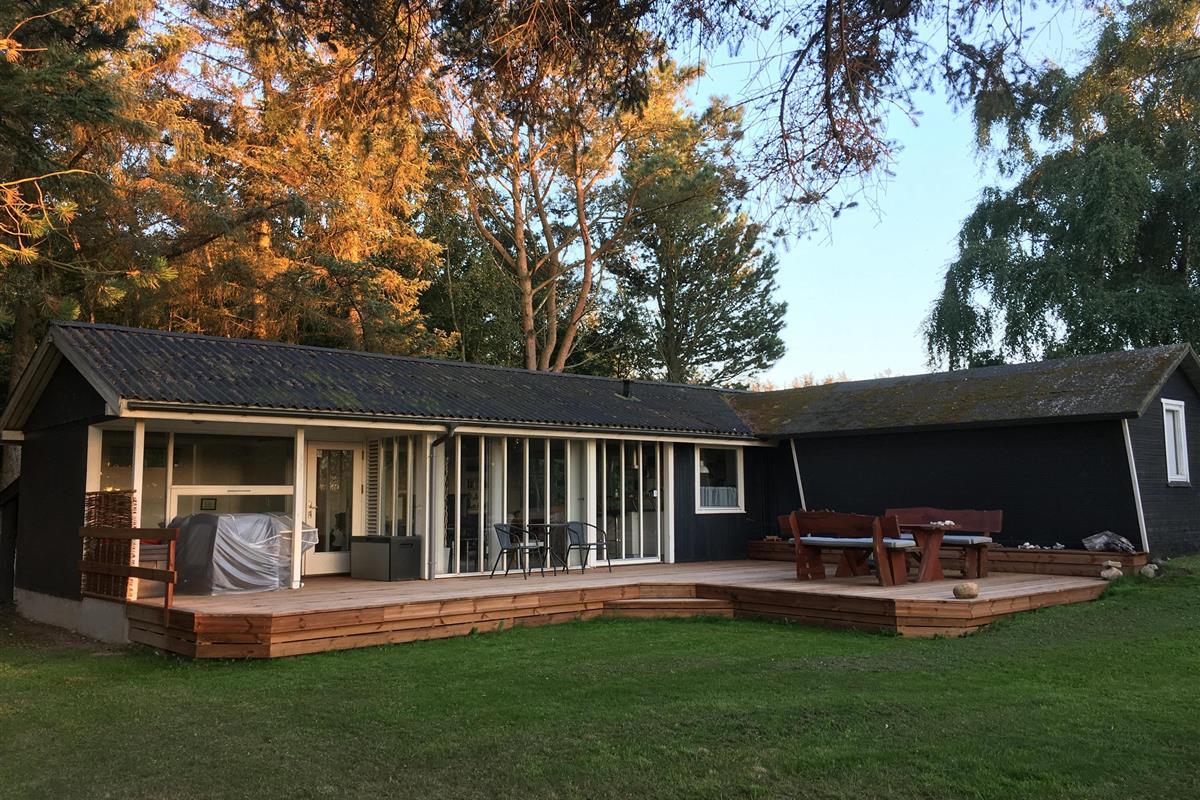 Schönes Ferienhaus bei Ejerslev Lyng, einem schönen Ferienhausgebiet auf Nordmors. Das Grundstück ist 1.600 m2 groß und ist in einen Garten und einem Fußballfeld unterteilt. Es gibt 2 Zimmer im Haus. Es gibt 1 Zimmer mit einem Doppelbett und 1 Zimmer mit 4 Kojen, die sich in einem geschlossenen Nebengebäude befinden. 2 schöne überdachte Terrassen mit Gartenmöbeln und Sonnenliegen. Kinderbett und Hochstuhl stehen zur Verfügung. Das Haus liegt friedlich und schön und lädt Sie zu Aktivitäten im Freien ein. Es gibt auch einen kinderfreundlichen Strand mit einem Badesteg in der Nähe. Der in der Nähe liegenede Hafen von Ejerslev ist Heimat für eine Reihe von lokalen Fischern. Nach umfangreichen Renovierungsarbeiten ist der Ort zu einem natürlichen Treffpunkt für die Region geworden. Es gibt auch eine schöne kleine Ausstellung über die Gegend. Am Hafen ist eine Lagune, wo die Klippen sich hoch erheben und man die vielen Schichten vulkanischer Asche deutlich sehen kann. Machen Sie einen Spaziergang um die Lagune. Während der Sommerzeit ist das Café Lagunen geöffnet.