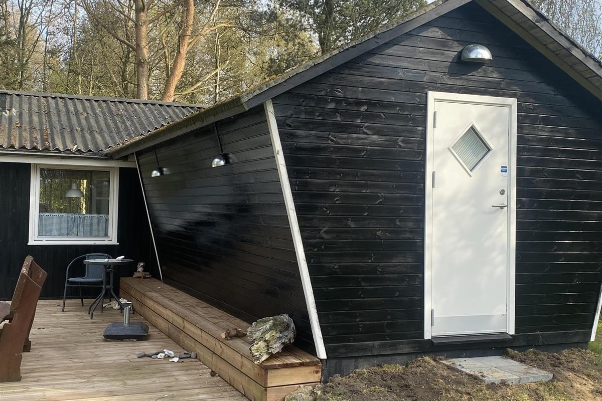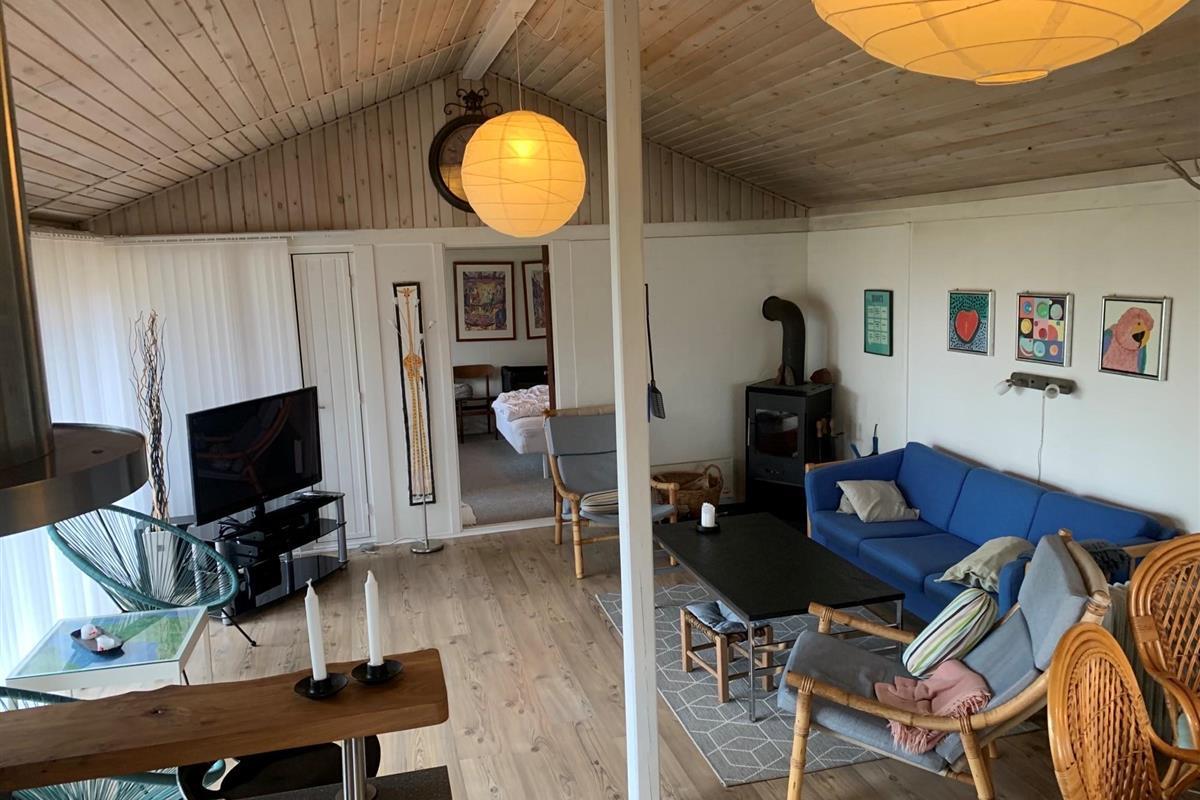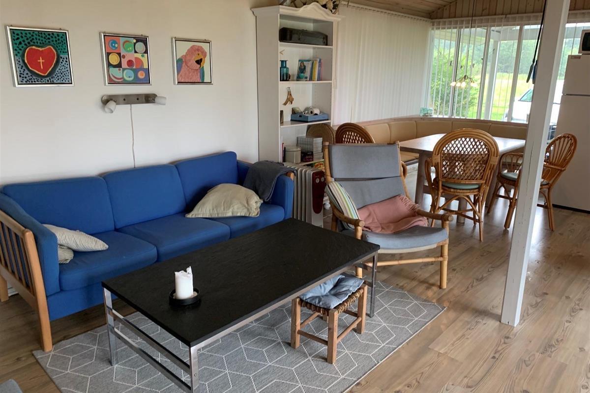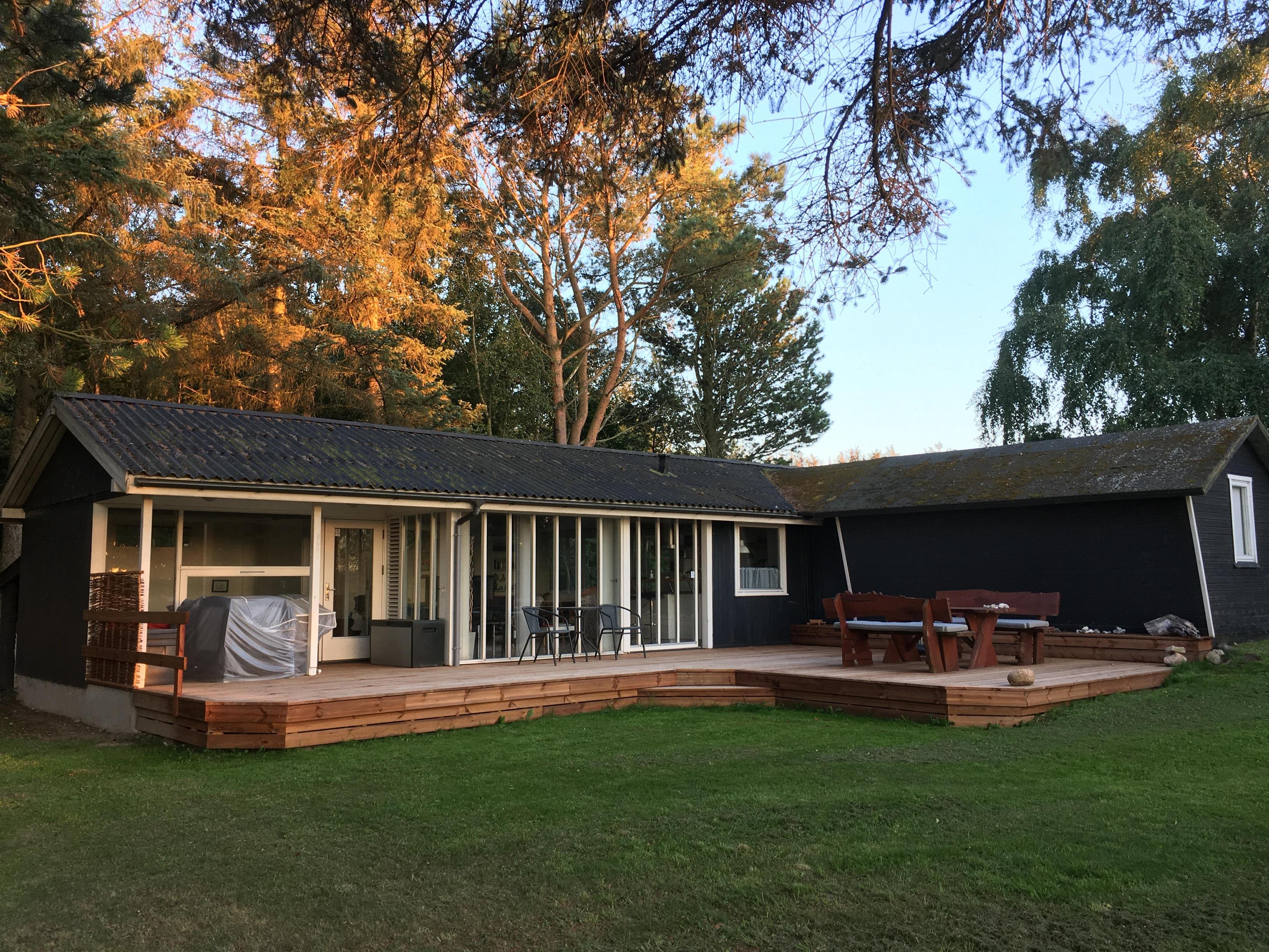 Schönes Ferienhaus bei Ejerslev Lyng, einem schönen Ferienhausgebiet auf Nordmors. Das Grundstück ist 1.600 m2 groß und ist in einen Garten und einem Fußballfeld unterteilt. Es gibt 2 Zimmer im Haus. Es gibt 1 Zimmer mit einem Doppelbett und 1 Zimmer mit 4 Kojen, die sich in einem geschlossenen Nebengebäude befinden. 2 schöne überdachte Terrassen mit Gartenmöbeln und Sonnenliegen. Kinderbett und Hochstuhl stehen zur Verfügung. Das Haus liegt friedlich und schön und lädt Sie zu Aktivitäten im Freien ein. Es gibt auch einen kinderfreundlichen Strand mit einem Badesteg in der Nähe. Der in der Nähe liegenede Hafen von Ejerslev ist Heimat für eine Reihe von lokalen Fischern. Nach umfangreichen Renovierungsarbeiten ist der Ort zu einem natürlichen Treffpunkt für die Region geworden. Es gibt auch eine schöne kleine Ausstellung über die Gegend. Am Hafen ist eine Lagune, wo die Klippen sich hoch erheben und man die vielen Schichten vulkanischer Asche deutlich sehen kann. Machen Sie einen Spaziergang um die Lagune. Während der Sommerzeit ist das Café Lagunen geöffnet.