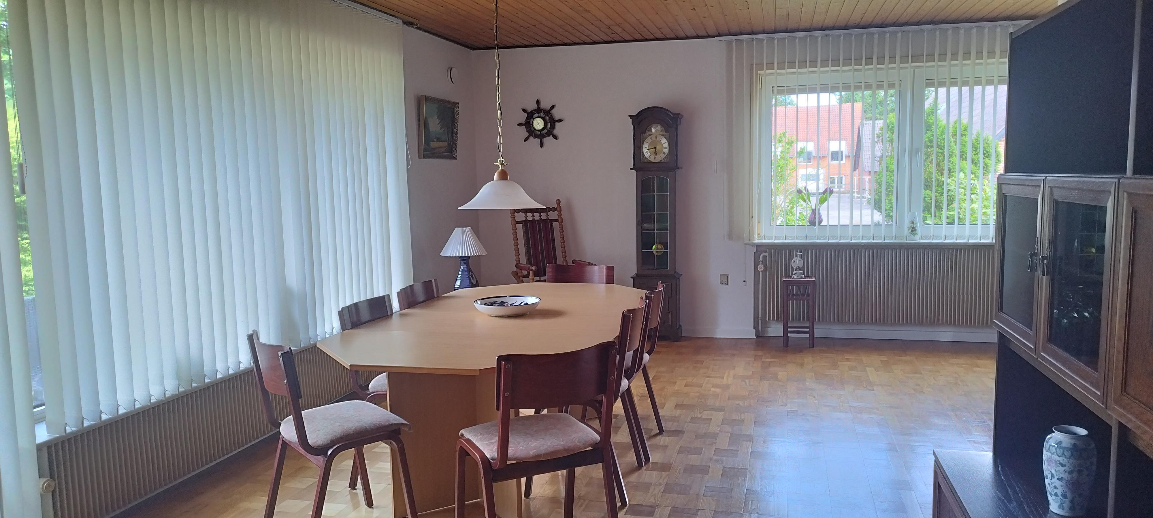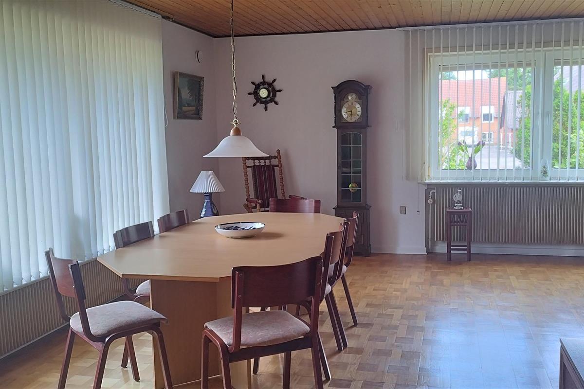 The house has a utility room with laundry facilities and storage. Large corner living room with sofa group and dining area. From the living room there is access to a tiled terrace with a cozy green garden overlooking green fields.