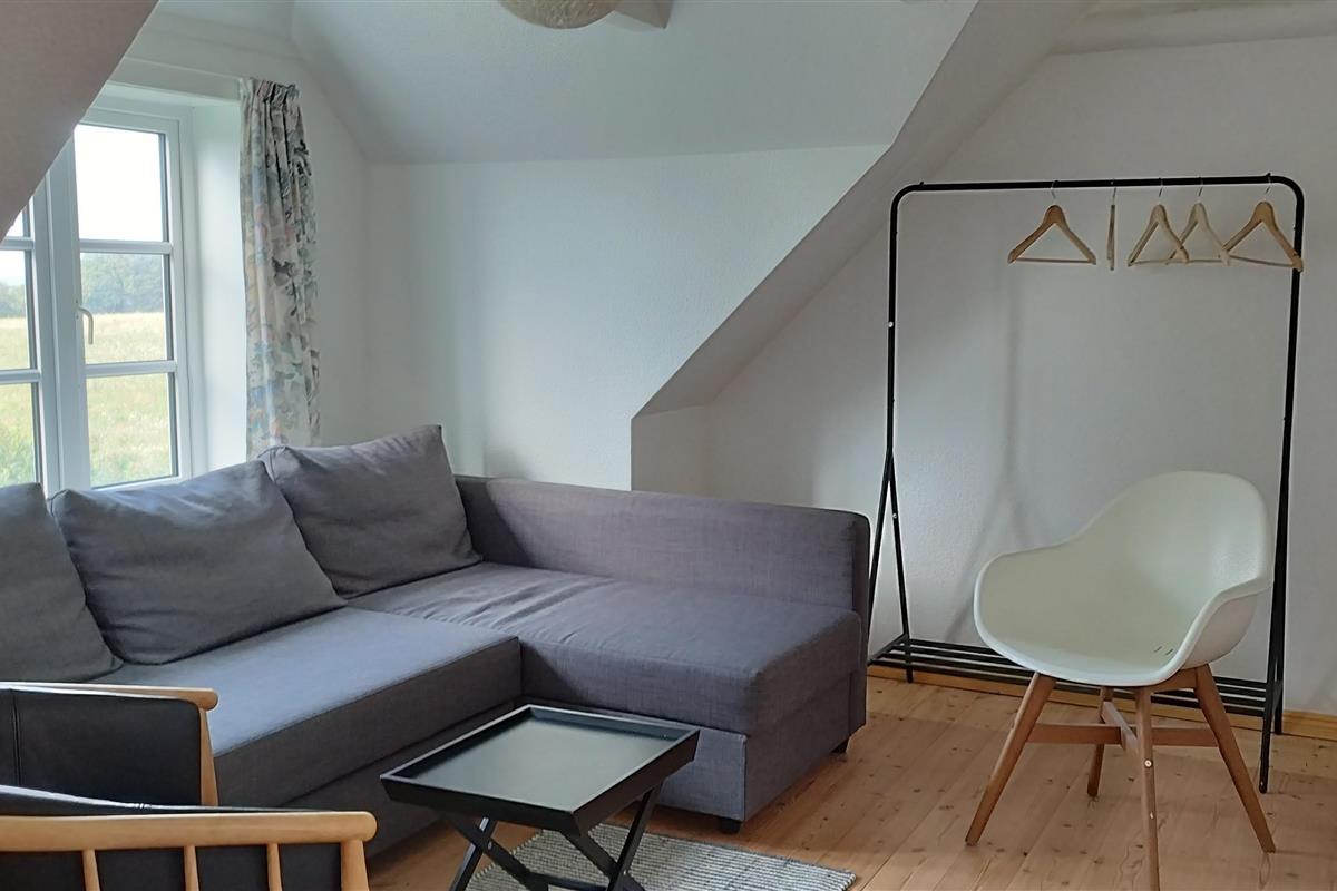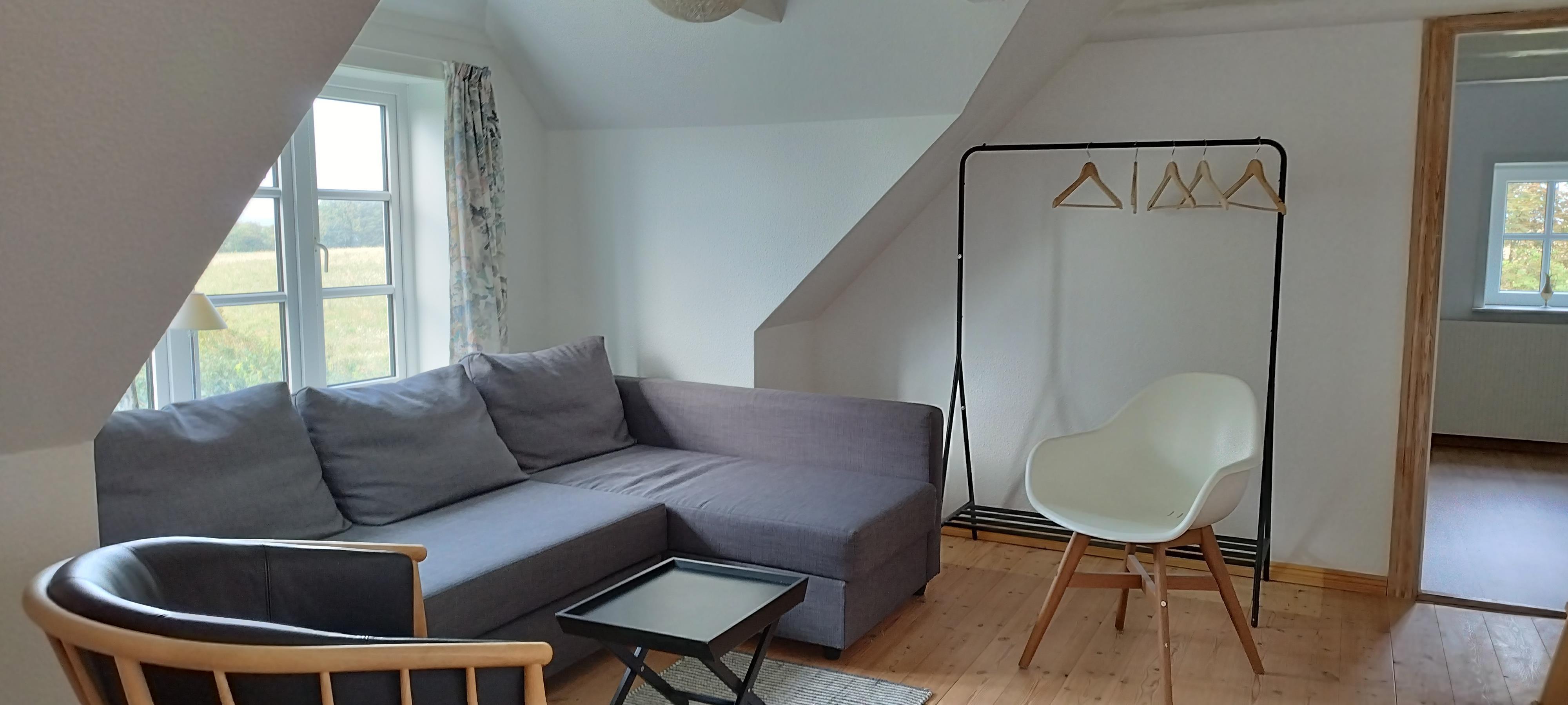 Large beautiful house on Mors close to the Limfjorden. The house is 136m2 and there are 3 rooms with 2 single beds in each room. In addition, a distribution room with a sofa bed on the 1st floor. TV living room with sofas, so there is room for 8 adults.