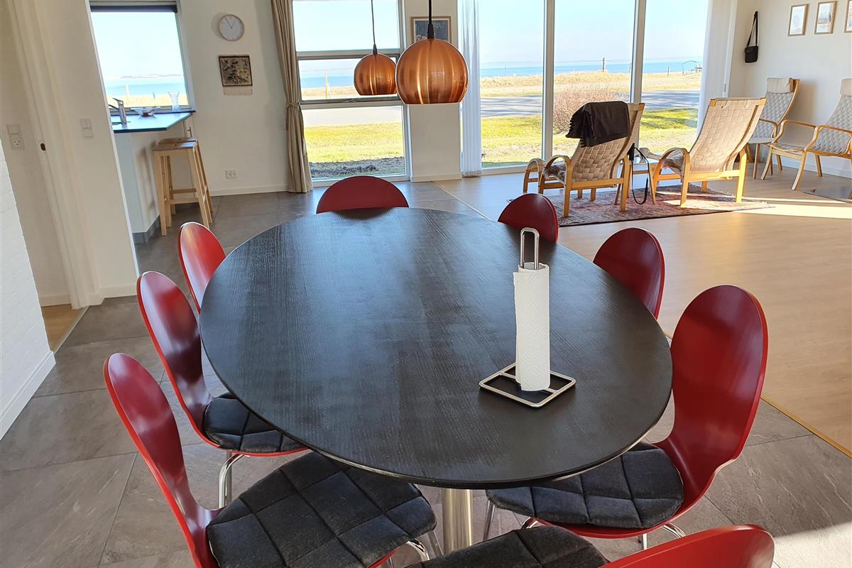 150 m2 lovely Holiday cottage for up to 8 people - close to the Limfjord and with a great view of the water. The house is newly renovated in 2020 and 2021 and appears bright and cozy. Combined kitchen and livingroom with a fireplace, in which You can enjoy the excellent view of the fjord. The house has 3 bedrooms – 2 with each a double bed, and 1 with both a double bed and a large bunk bed. The house offers both a bathroom and a guest toilet. Youth groups are not welcome.