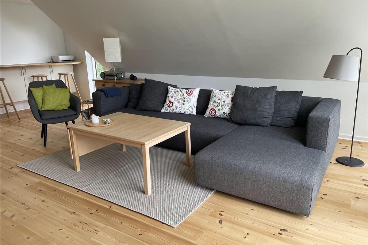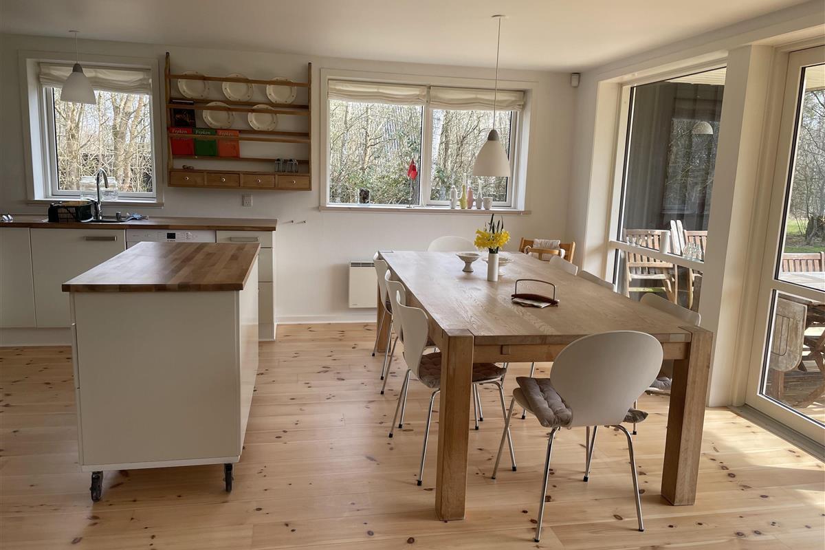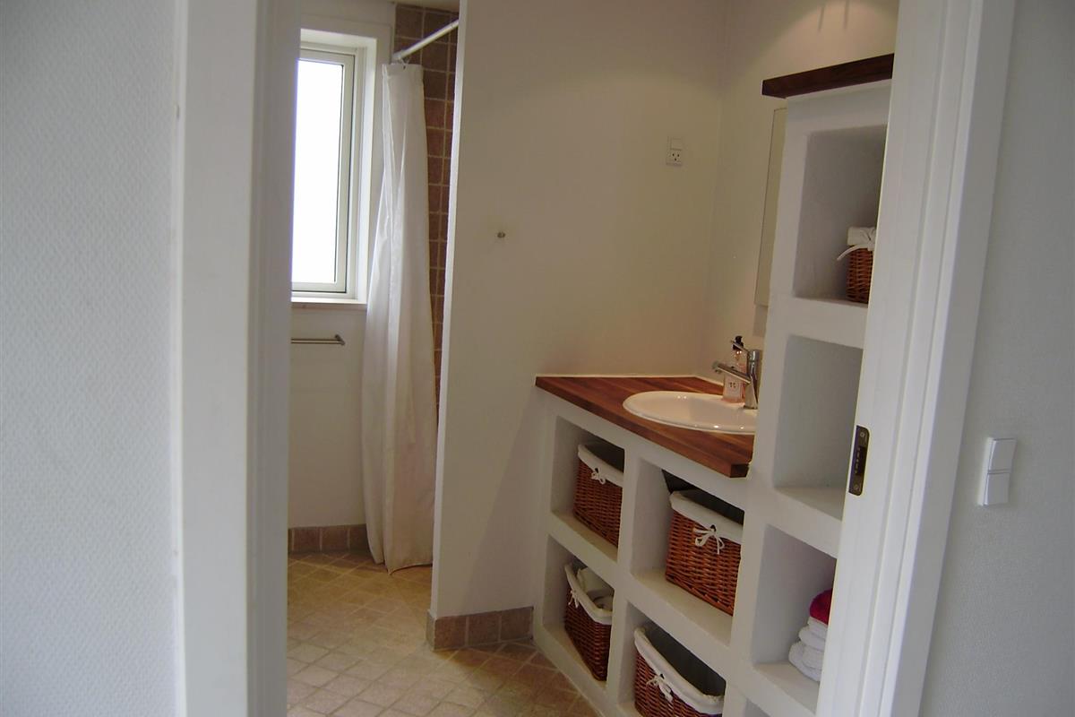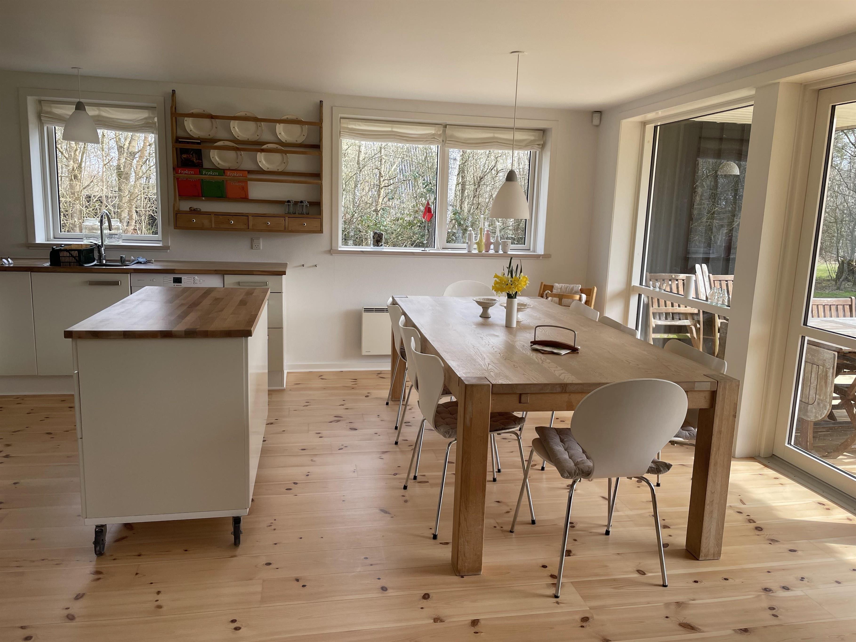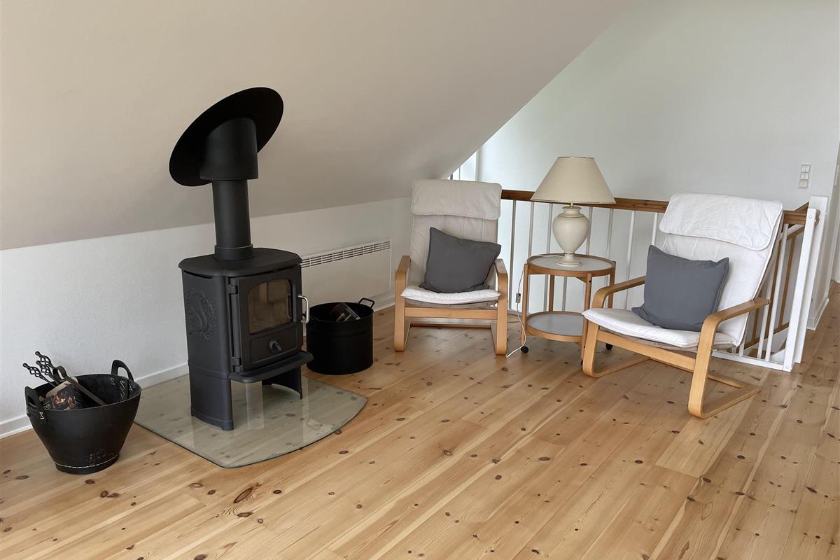 This beautiful 2-plan 135 m2 holiday house has view over the Limfjord and situated on 4,000 m2 ground with football field. It has 3 cozy rooms: 1st room has a double bed and a 2 persons bunk bed located at the ground floor. The 2nd room also has a double bed and a 2 persons bunk bed and the 3rd room has double bed, both located at the 1st floor. TV in all rooms and Wi-fi connection. 2 spacious and lovely bathrooms with floor heating. This beautiful holiday house is simple and modernly designed with wooden and tiled floor.