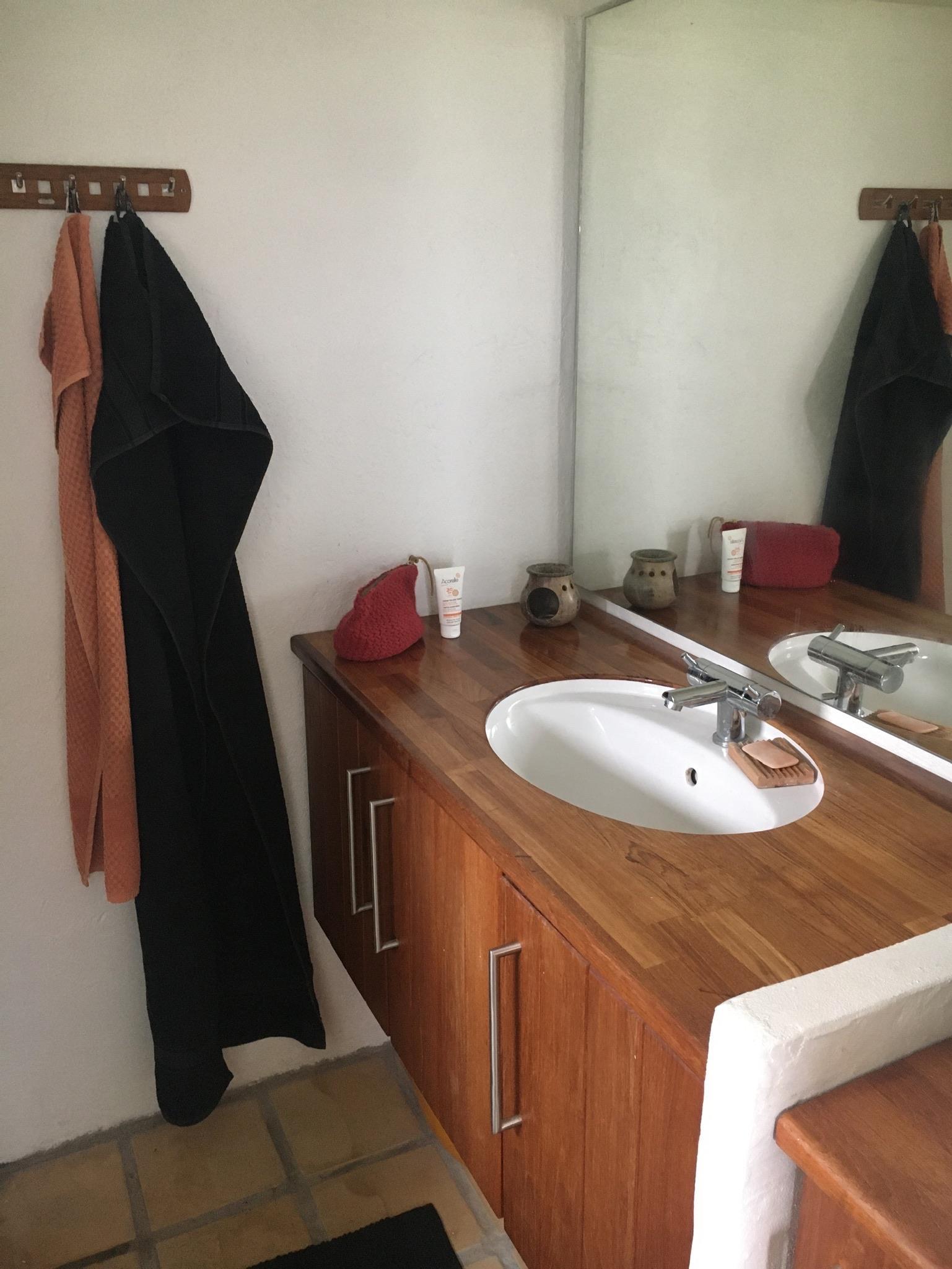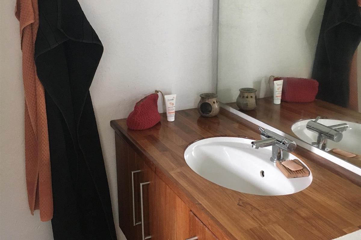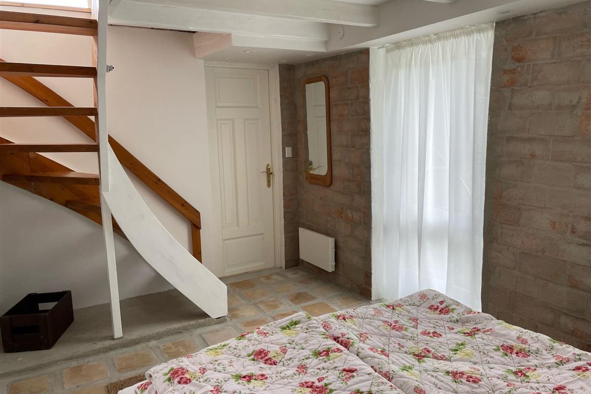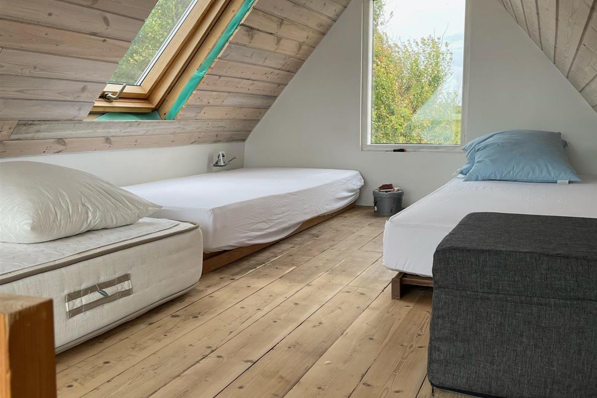The house, which appears bright and neat, contains a room with a double bed on the ground floor and a high loft with access to the terrace. In addition, there is a bedroom with a double bed and space for 4 people on the 1st floor. Cozy living room with space to lounge by the wood-burning stove and well-functioning kitchen.