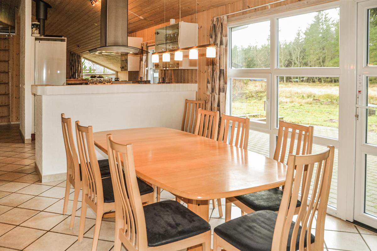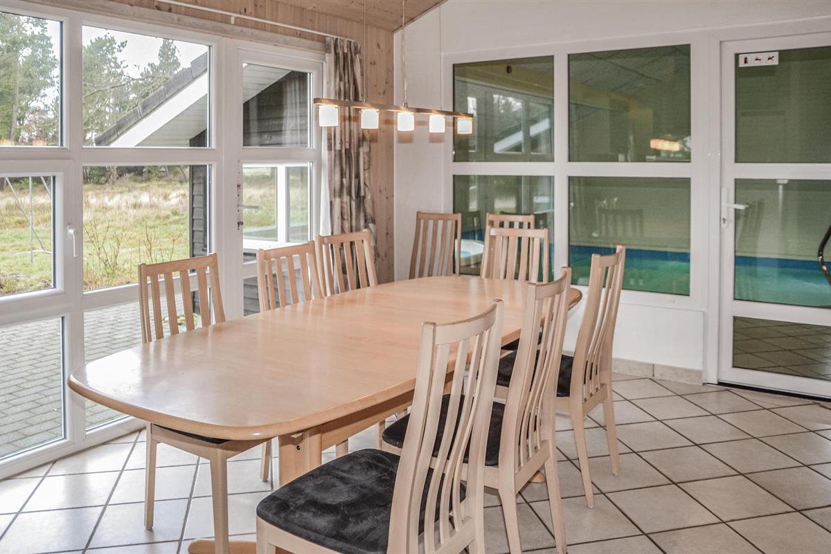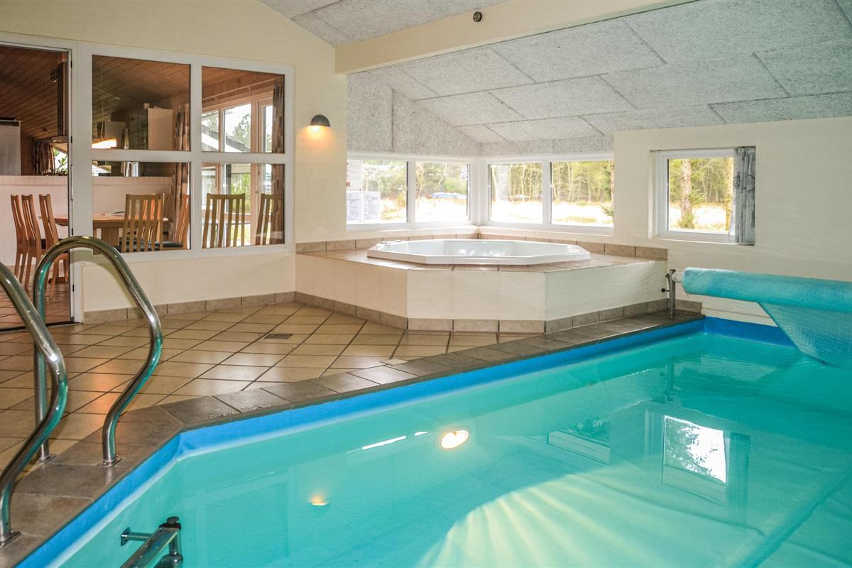 Mooi en praktisch ingericht vakantiehuis met een bijzonder groot zwembad met whirlpool en sauna. Vanuit de mooie woonkamer met keuken heeft u door de grote panoramische ramen zicht op het zwembad. Het huis heeft vier grote kamers met goede bedden. De open slaapzolder is zeer geschikt voor kinderen, zowel als slaapplaats als gezellige speelhoek. Op het grote terras van het huis kunt u 's avonds genieten van de zon of een glas wijn. Mosevrå ligt in een rustige en natuurlijke omgeving met veel wandelmogelijkheden en niet veel kilometers van Blåvand, waar ook een fietspad is. Er zijn winkels en een internationale golfbaan. In het zuidelijke deel kunt u het Veyers strand oprijden.
