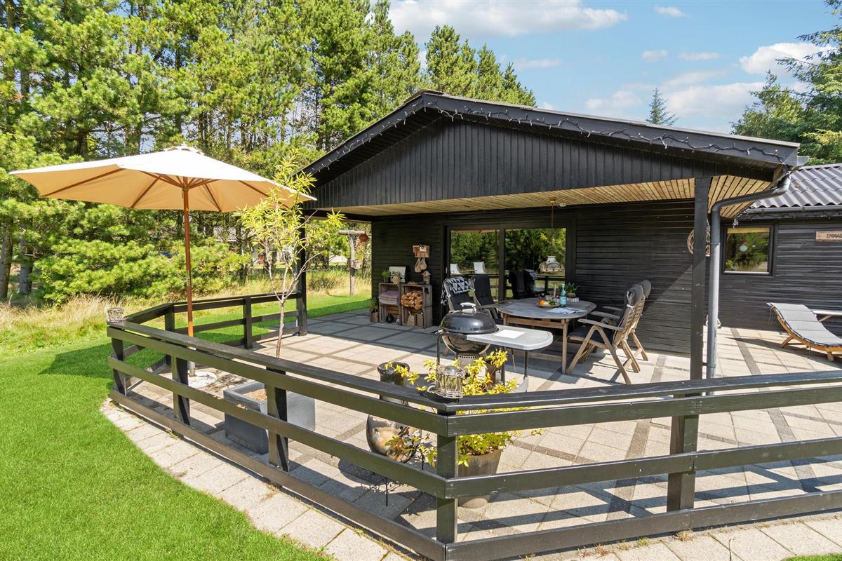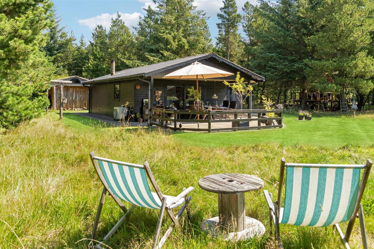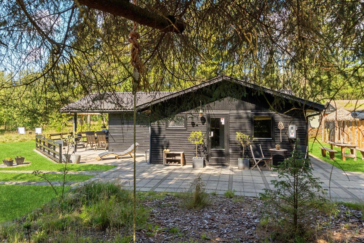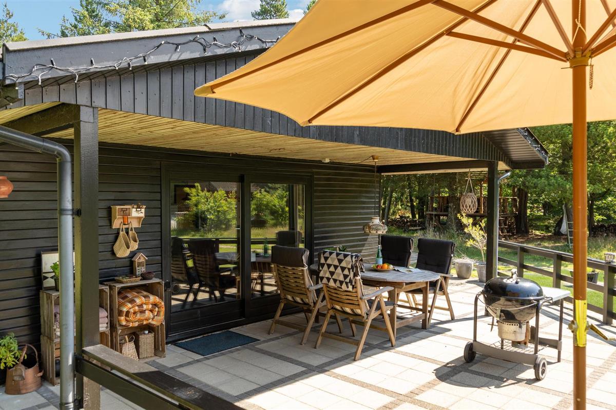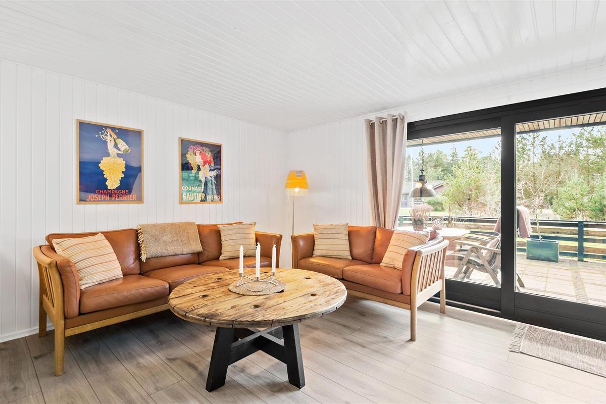 Rustig gelegen vakantiehuis met sfeervol interieur, deels overdekt terras en vuurplaats, nabij strand en natuur in Mosevrå, Denemarken.