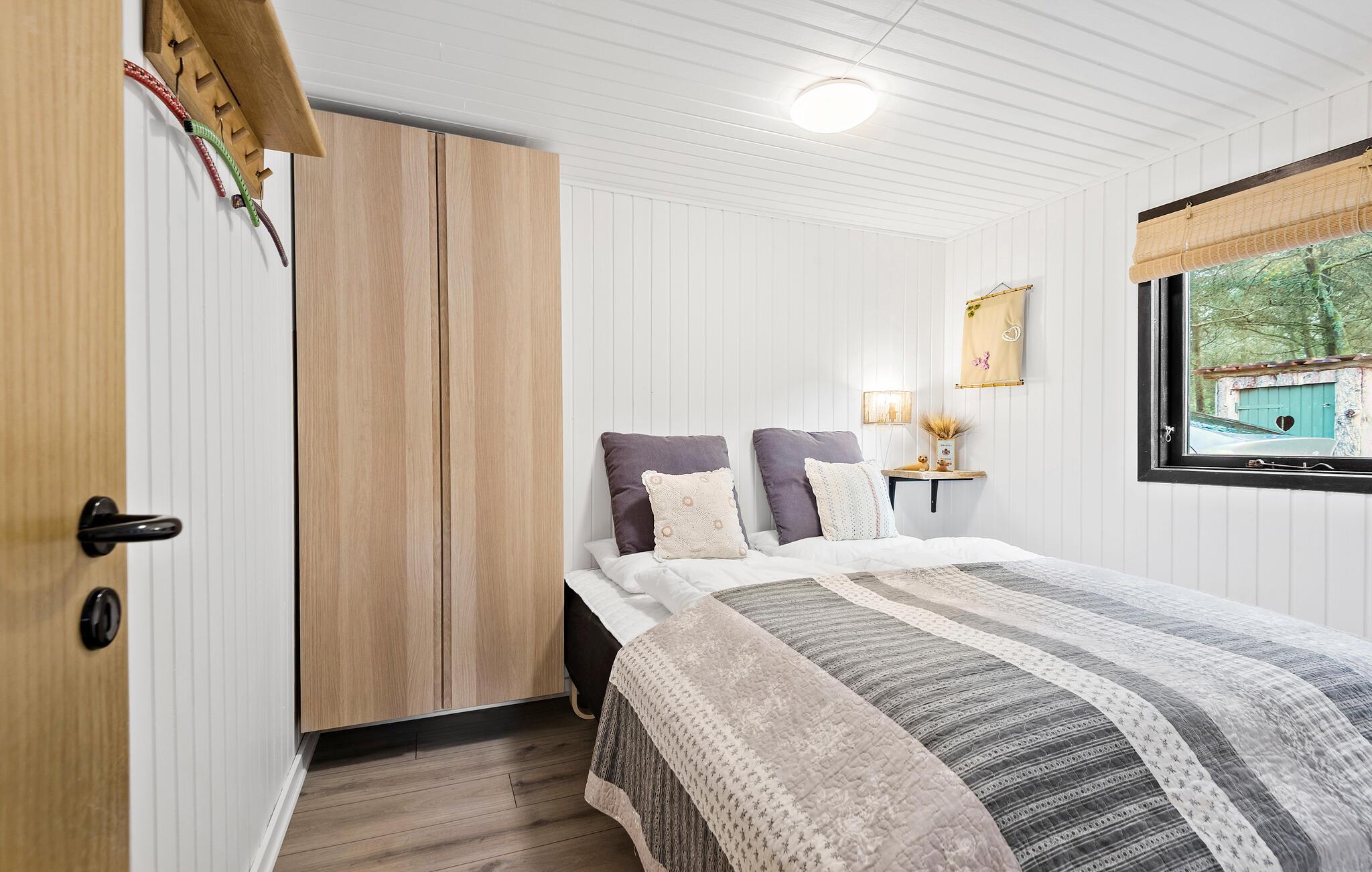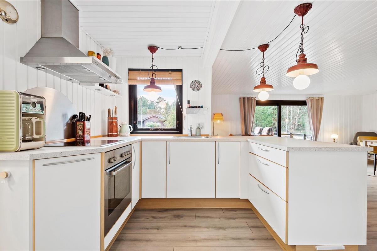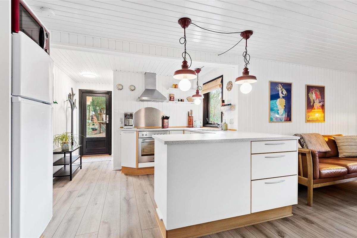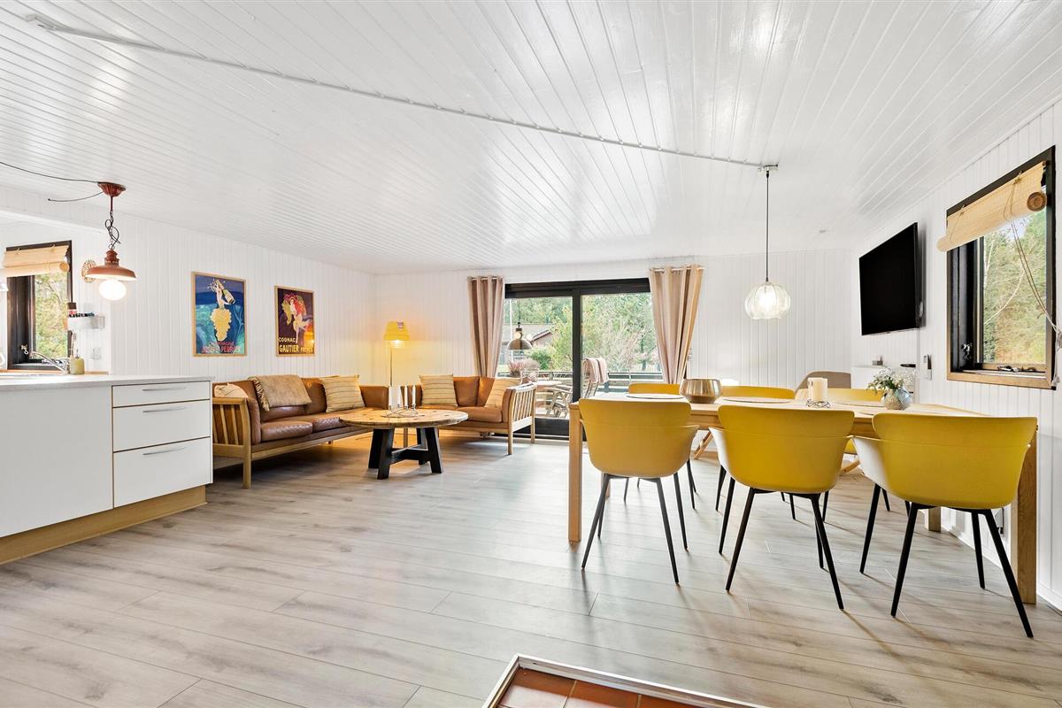 Rustig gelegen vakantiehuis met sfeervol interieur, deels overdekt terras en vuurplaats, nabij strand en natuur in Mosevrå, Denemarken.