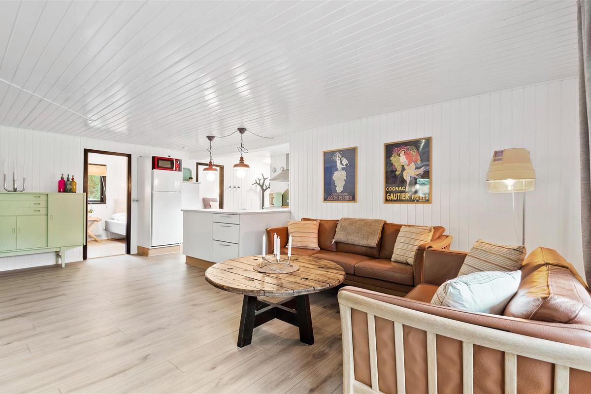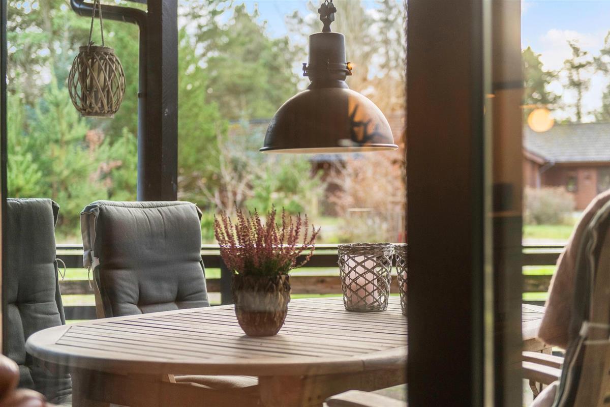 Het interieur is zeer functioneel en praktisch ingericht met enkele gezellige hoekjes en rustieke details. Op het ruime open en gedeeltelijk overdekte terras kun je genieten van een aangename tijd in de buitenlucht en heerlijke barbecuegerechten bereiden terwijl je ontspant in comfortabel tuinmeubilair. De vuurplaats nodigt je uit om stokbrood en marshmallows te roosteren en om gezellige uren door te brengen met je geliefden op warme zomeravonden.