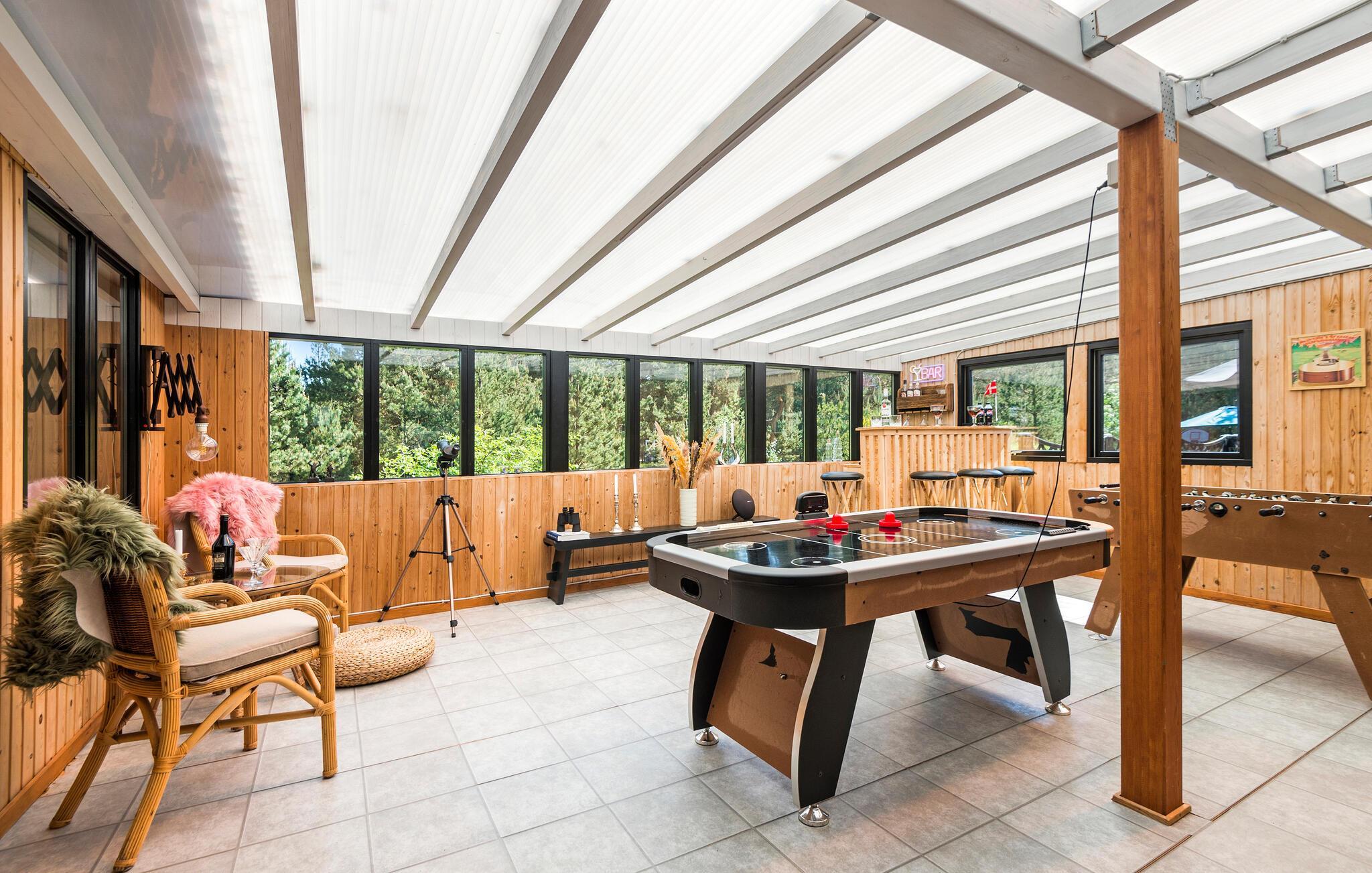 Reis met je uitgebreide familie of een familie van vrienden naar dit goed uitgeruste vakantiehuis, dat je niet alleen veel ruimte biedt, maar ook een schat aan activiteiten. De mooie en lichte sfeer van de woonkamers laat je samenkomen in de keuken of in de woonkamer, voel je hier thuis, kook, eet en ontspan op de bank. Laat de houtkachel je opwarmen en organiseer een filmavond. Je kunt ook genieten van de vele voorzieningen, zoals het zwembad, dat zowel jong als oud uitnodigt om een duik te nemen, of genieten van de wellnessfaciliteiten in het bubbelbad en de sauna. Beleef plezier in de serre, die perfect is voor spelletjes, plezier en lekkere drankjes.