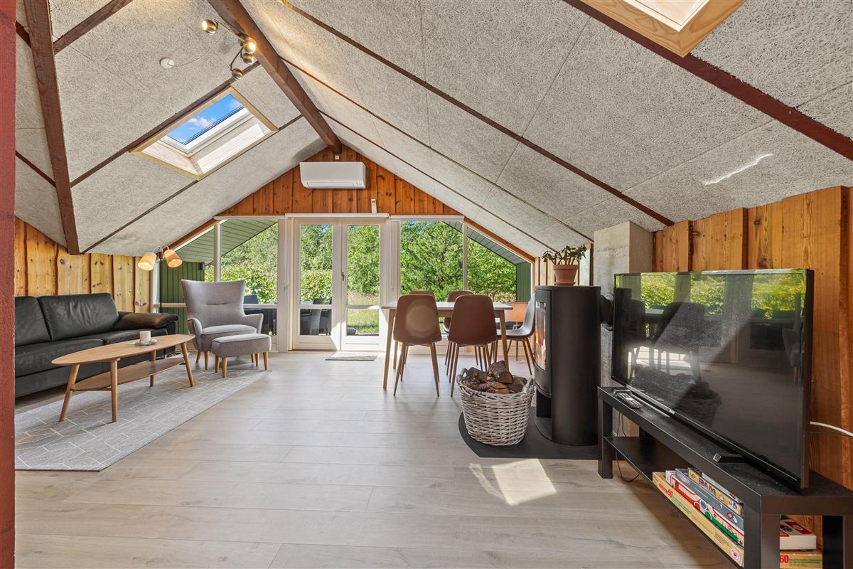 One of the highlights of this Mosevrå holiday home is the covered terrace. Here you can start your day with breakfast outdoors or enjoy the fresh air in the evening with a glass of wine. The generous outdoor space invites you to experience nature up close and offers plenty of room for relaxation and play. A holiday in this historic holiday home in Mosevrå promises peace and tranquility in a unique atmosphere.