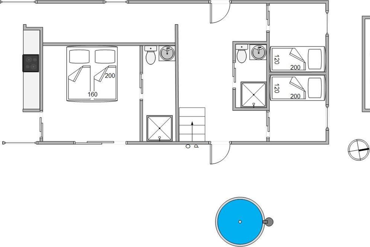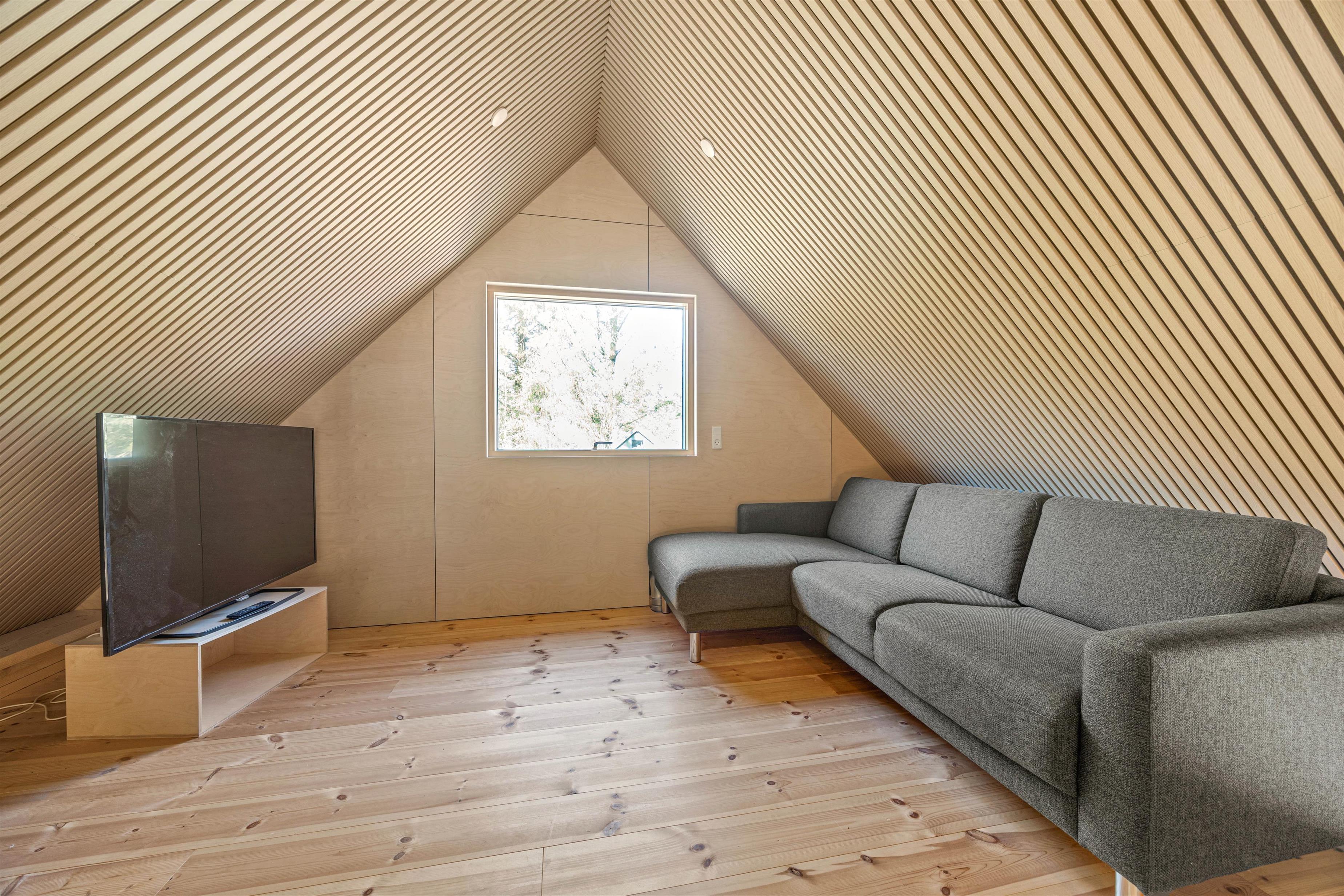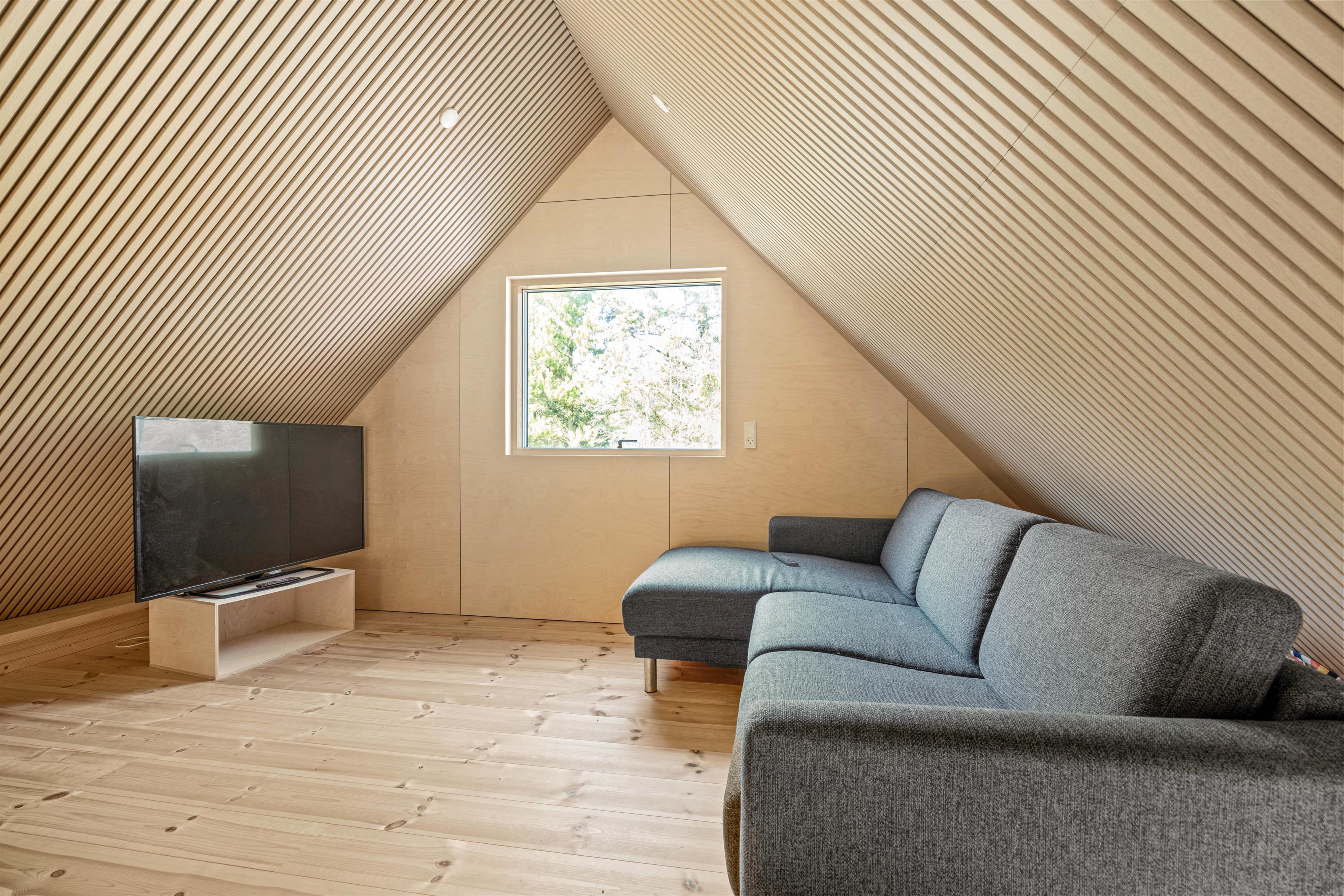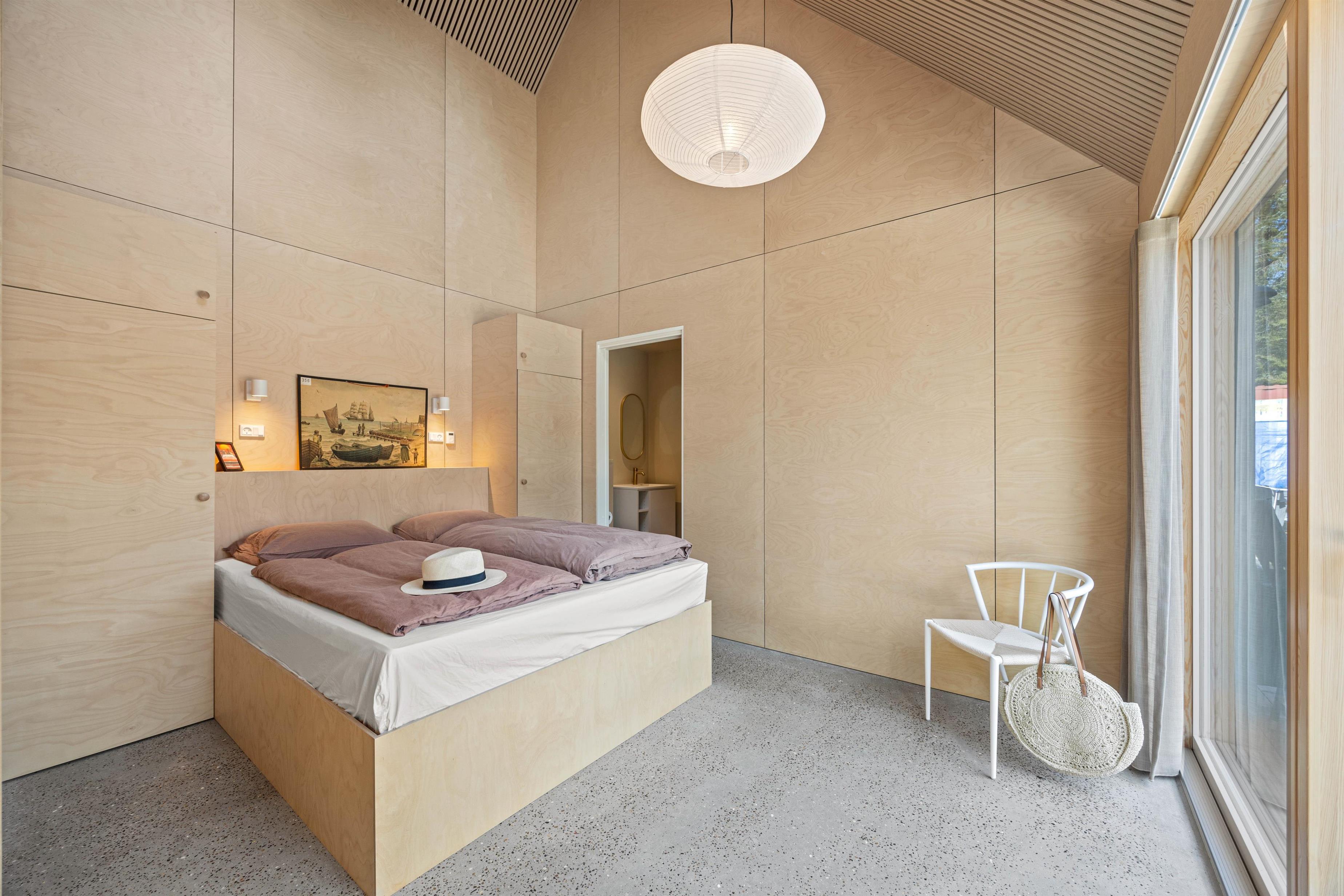 Featuring three bedrooms, the summer house includes one double bed and three single beds. The mezzanine is accessible via ladder and therefore has limited use. The well-equipped kitchen includes a dishwasher and a 90-litre freezer, making meal preparation effortless. A washing machine is also provided, ensuring fresh clothing throughout longer stays.