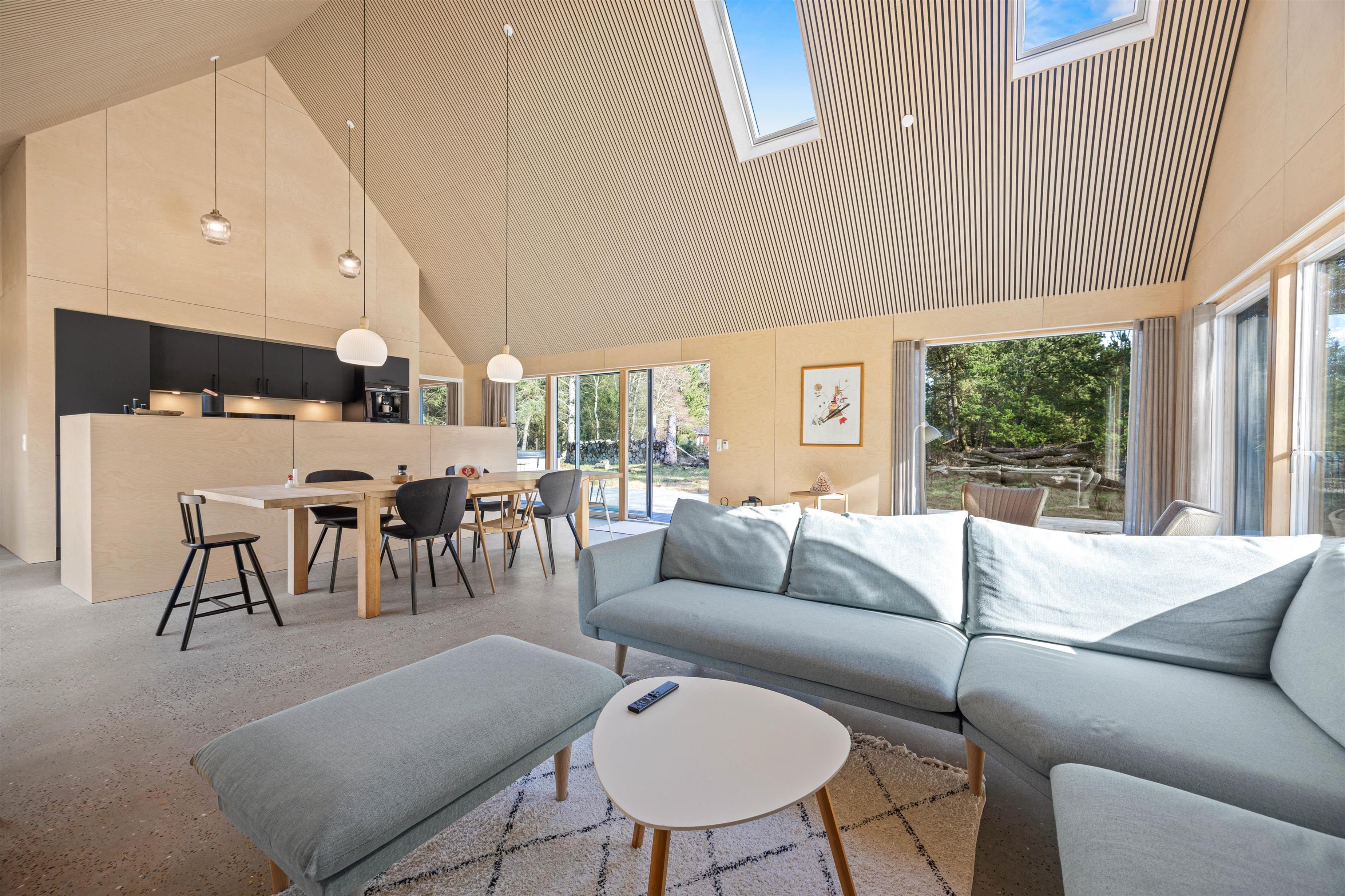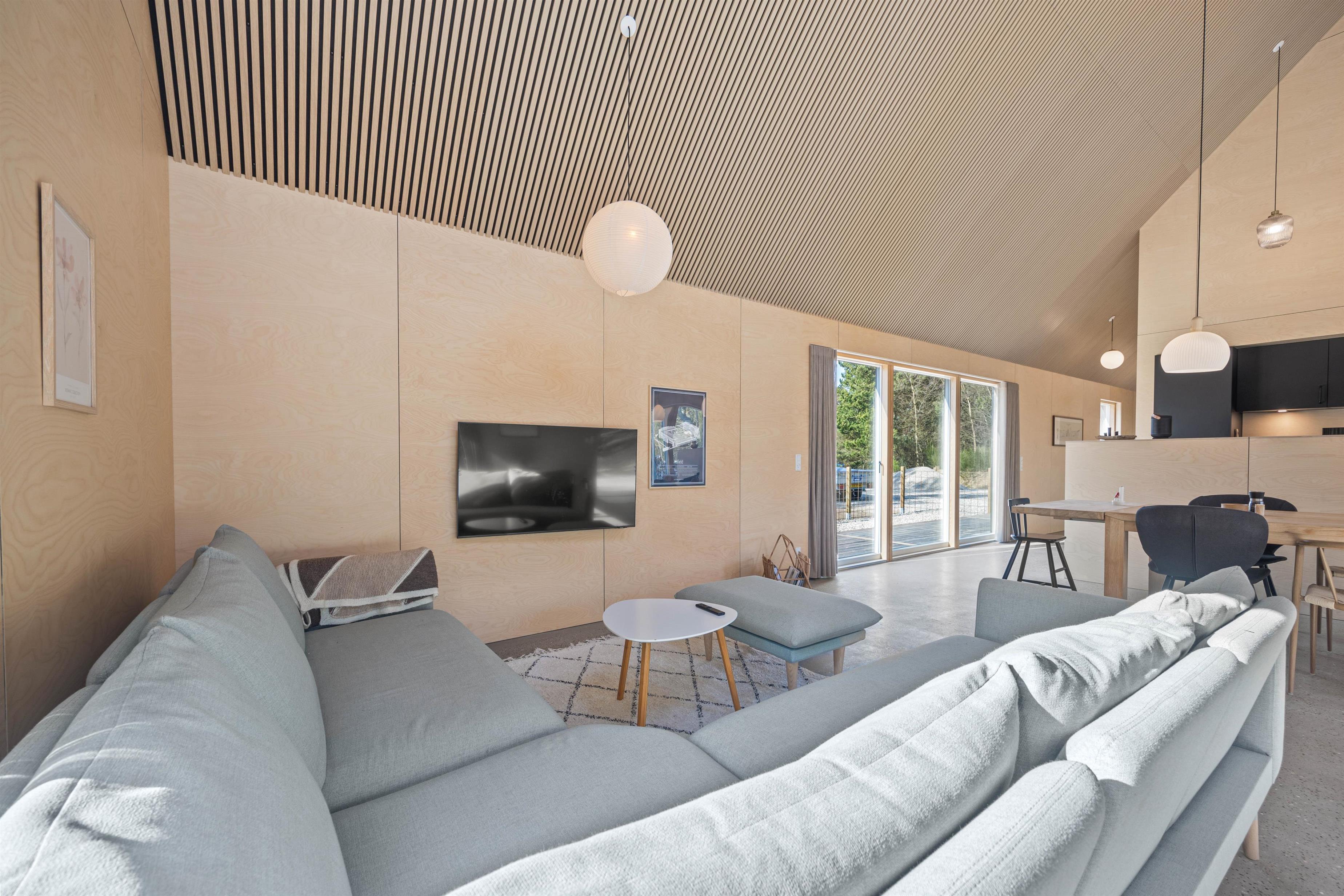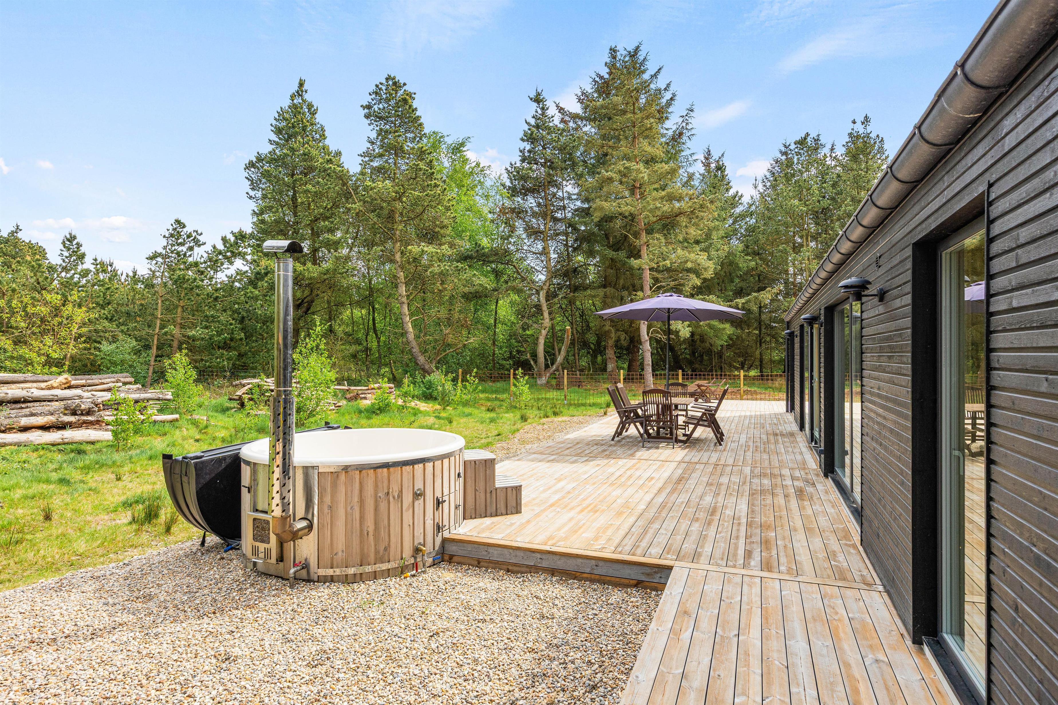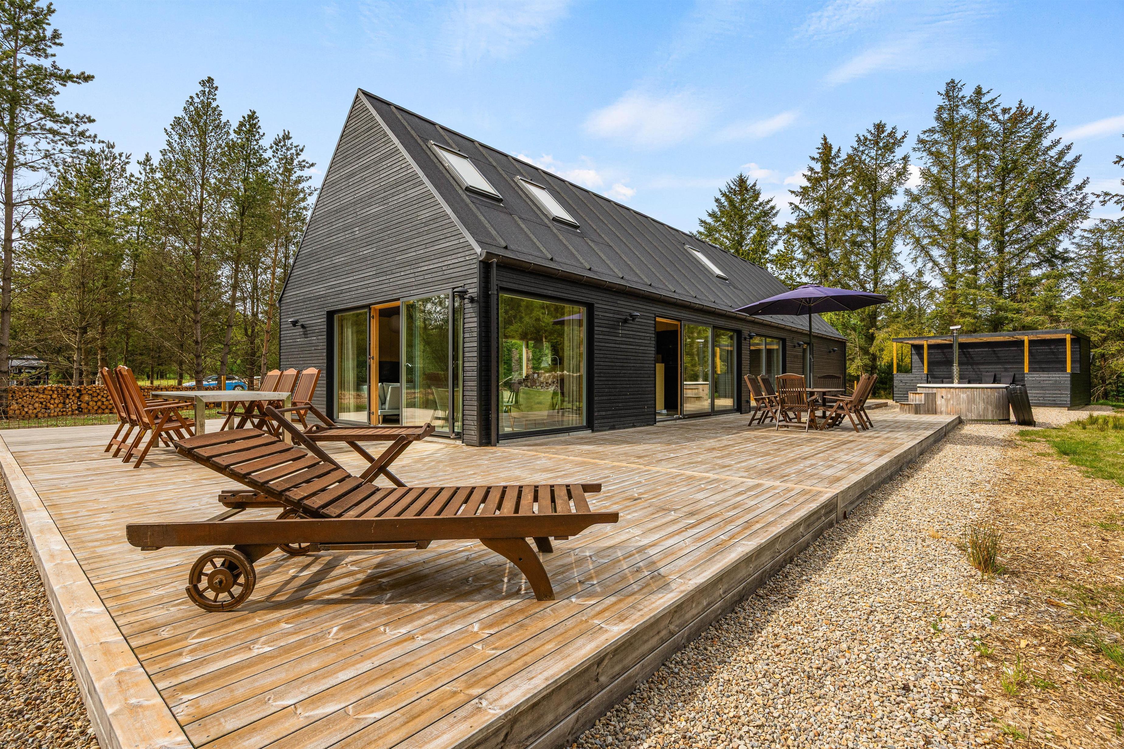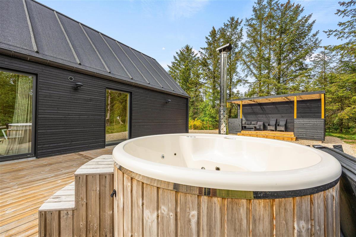 Built in 2023, this holiday home offers 129 square metres of living space accommodating up to 5 people. Enjoy luxurious amenities including an outdoor hot tub, two bathrooms with underfloor heating, and an efficient air-to-water heat pump ensuring year-round comfort.