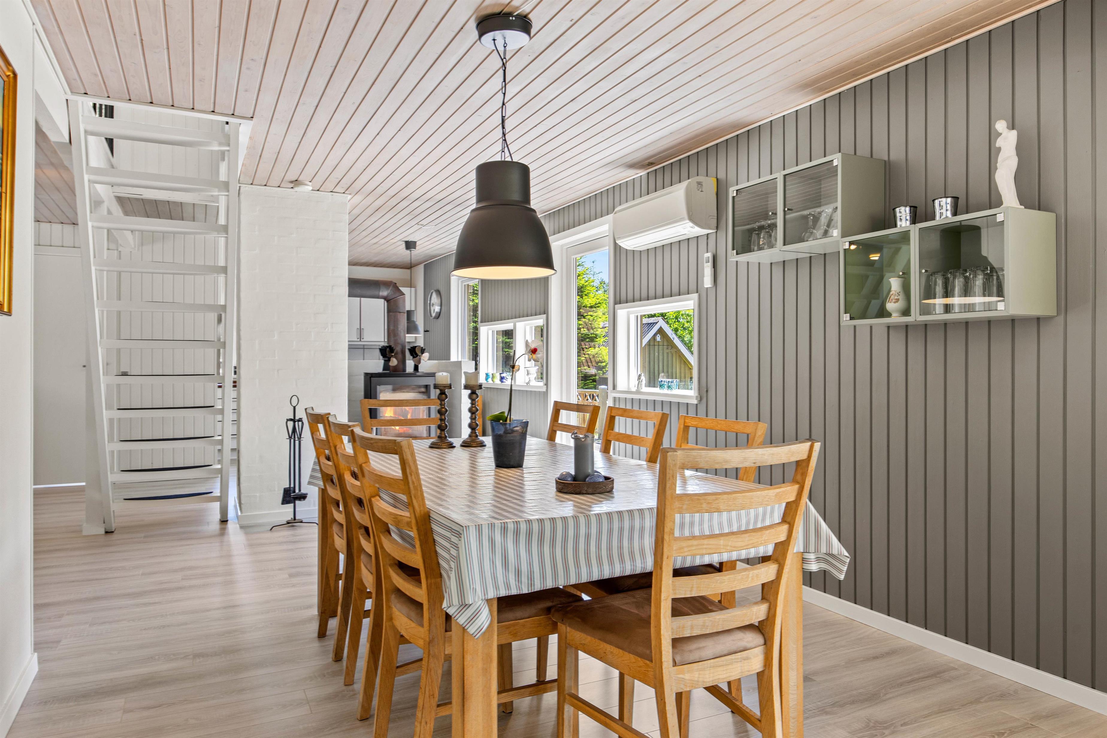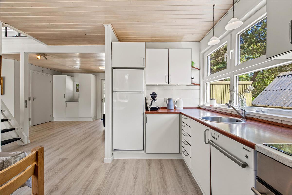 At Dalen 21, you'll feel at home the moment you step through the door of this charming holiday home. The living room is flooded with light through the gable-end windows. Here you can relax in front of the warm, crackling fire, play games or watch a film together on the television. The kitchen has everything you need to prepare home-cooked meals.
