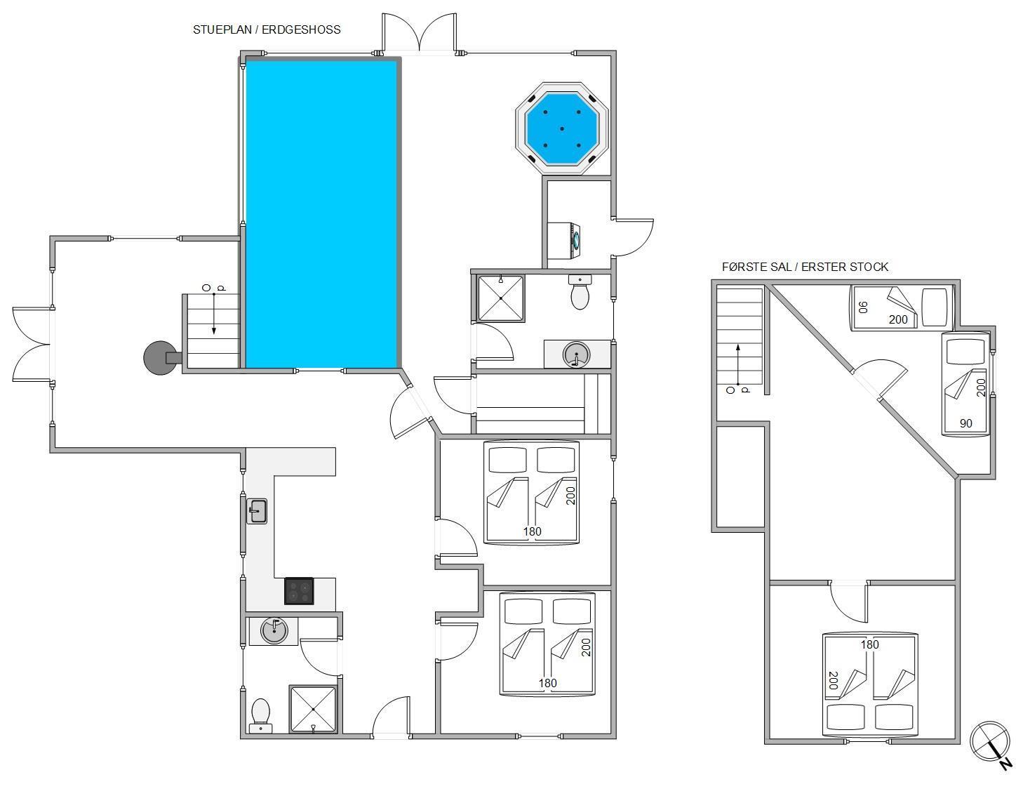 In Mosevrå, close to the idyllic Ho Bay, you'll find this lovely thatched roof holiday home, perfect for multiple families. The 180-square-metre holiday home accommodates up to 8 guests, and you're welcome to bring two dogs. The pool house at Bugten 7 offers indoor entertainment with a swimming pool, relaxation in the sauna and whirlpool, and a sociable living area. Outside, you can enjoy warm summer days and try out various play equipment.