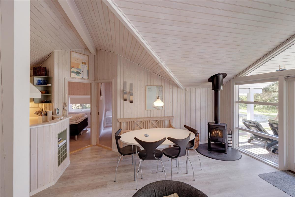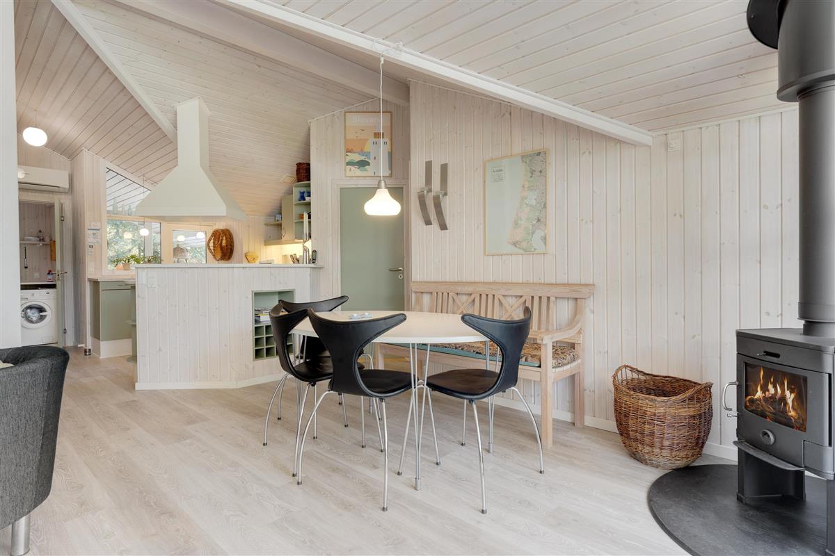 During cooler weather, you can warm up and relax in front of the crackling wood-burning stove. The house is fitted with a modern heat pump for energy-efficient heating.
