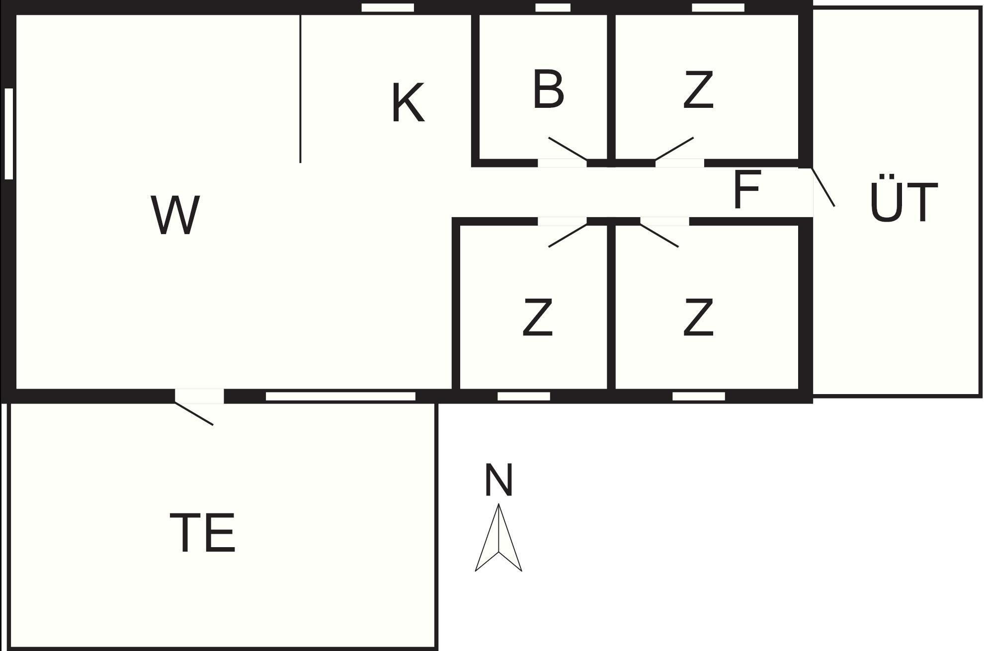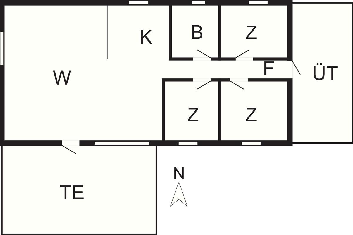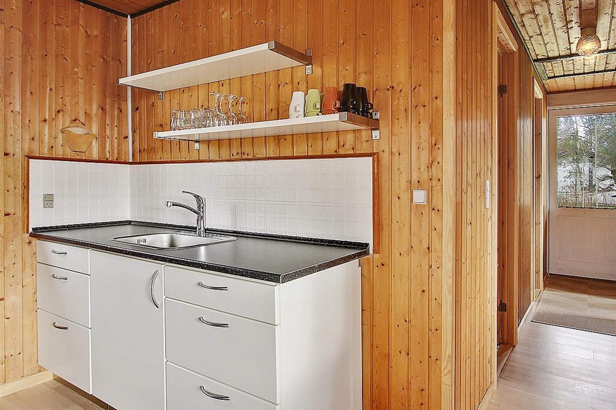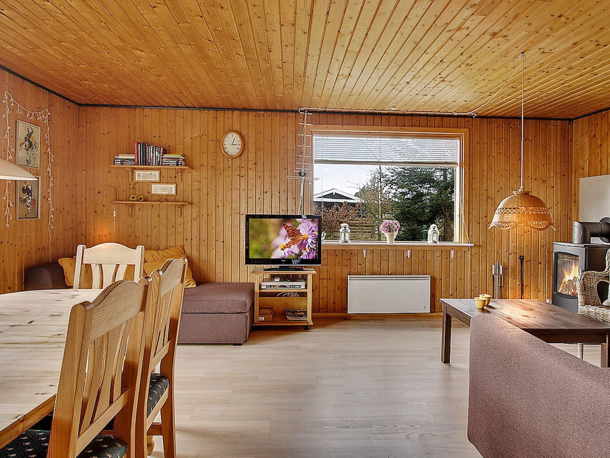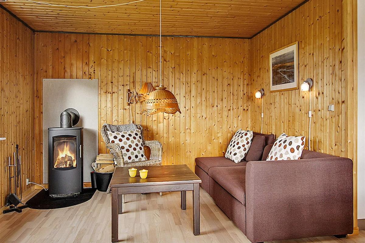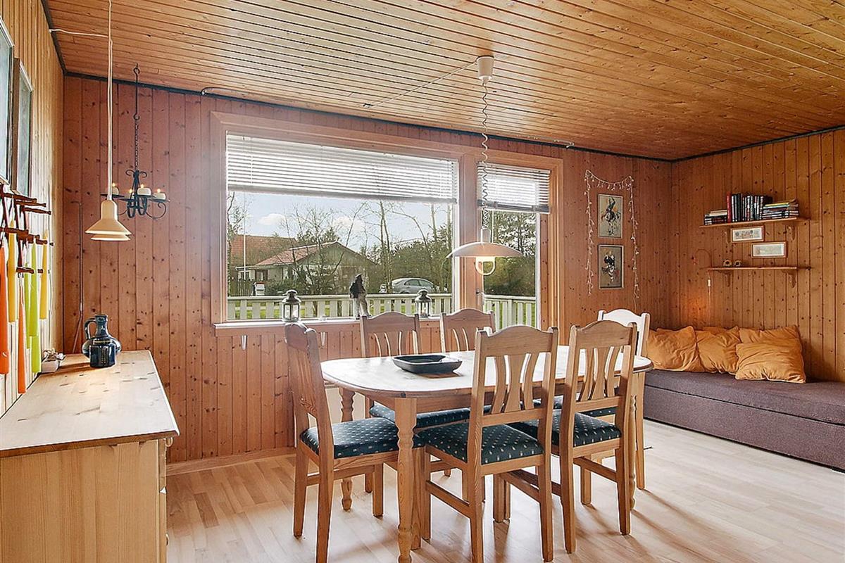 Ferienhaus in gemütlicher Ferienhausumgebung nur wenige Minuten Fußweg vom Wasser entfernt. Der Wohnraum mit dem Holzofen ist offen mit der Küche verbunden. Am Haus befindet sich eine offene und eine kleinere überdachte Terrasse. Keine Vermietung an Jugendgruppen.