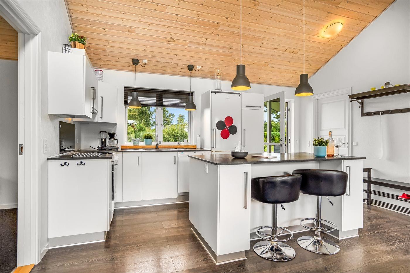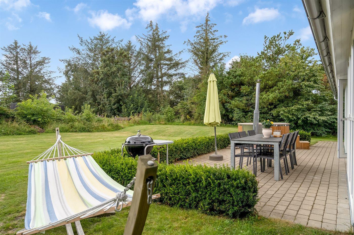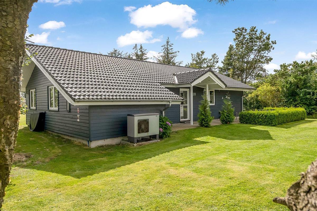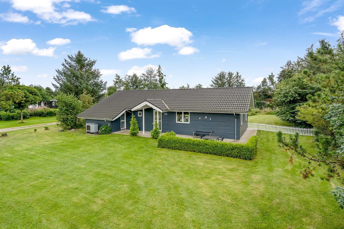 De vakantiewoning is gelegen op een 1200 m² groot aangelegde tuin. De grond is omheind. Afstand tot de zee 7000 m. Afstand tot de fjord 400 m. Dichtstbijzijnde winkel 2000 m. Bij de vakantiewoning hoort terras. Gereedschapsruimte. Schommel. Speeltoren. Glijbaan.Vuurplaats. Barbecue. Parkeerplaats bij het huis.