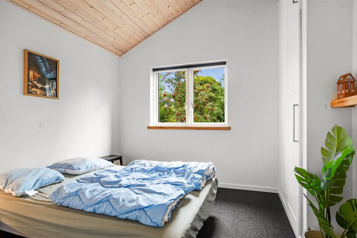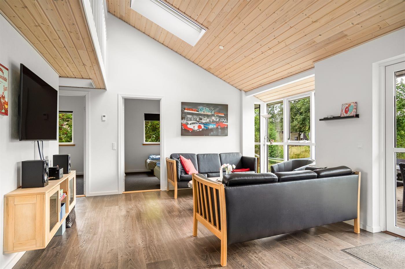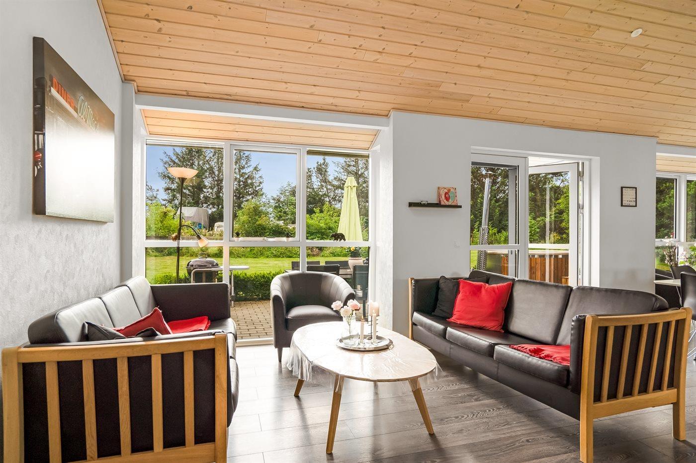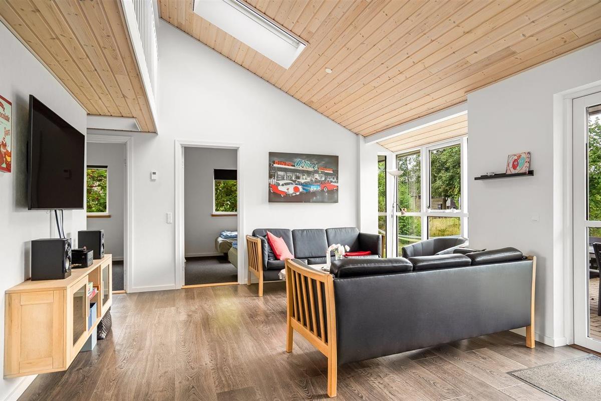 De vakantiewoning is gelegen op een 1200 m² groot aangelegde tuin. De grond is omheind. Afstand tot de zee 7000 m. Afstand tot de fjord 400 m. Dichtstbijzijnde winkel 2000 m. Bij de vakantiewoning hoort terras. Gereedschapsruimte. Schommel. Speeltoren. Glijbaan.Vuurplaats. Barbecue. Parkeerplaats bij het huis.