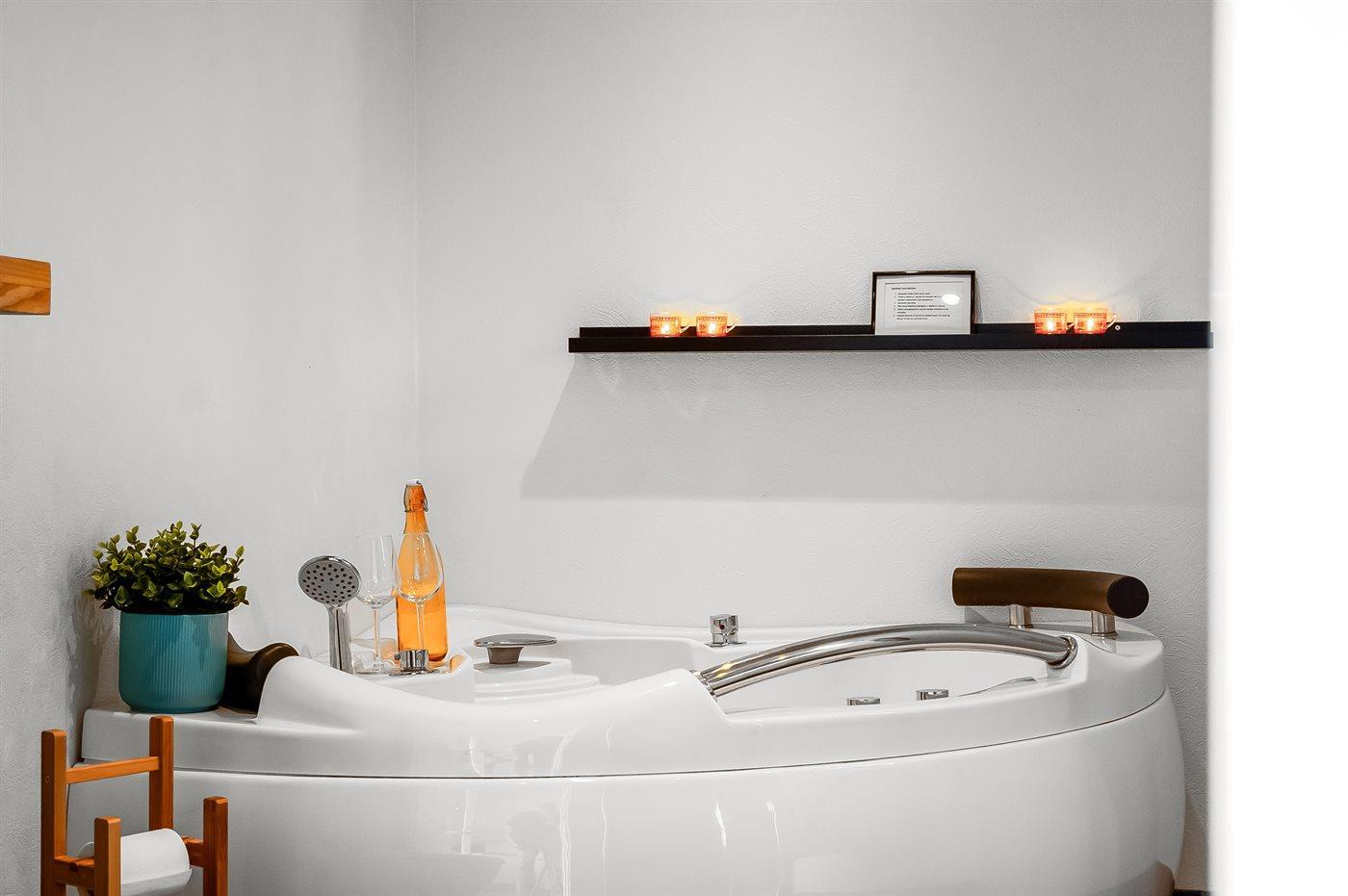 Het binnenbubbelbad (vulwater) biedt ontspanning aan 2 personen.Het buiten hot tub biedt ontspanning aan 6 personen.