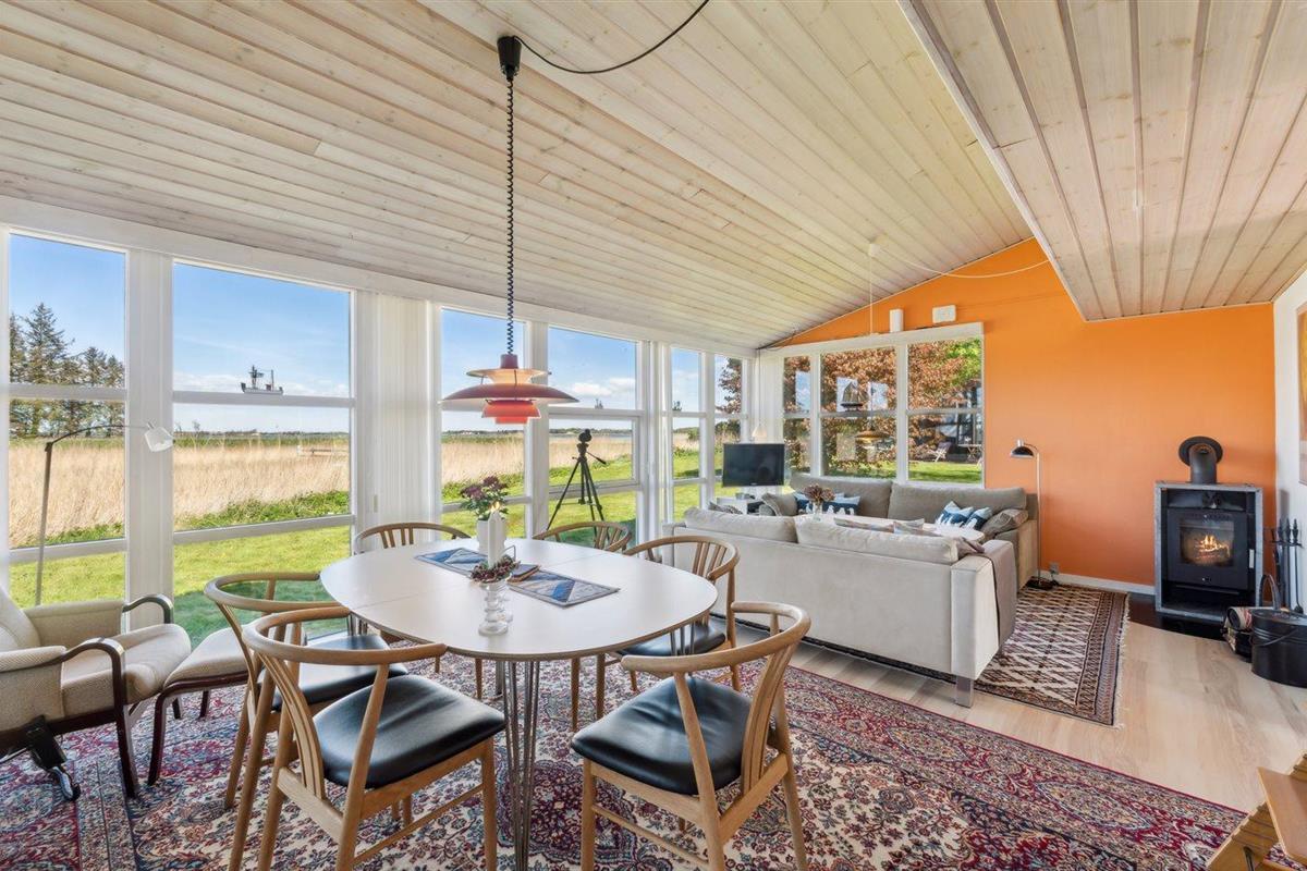 De vakantiewoning is gelegen op een 2550 m² groot natuural grond. Afstand tot de zee 8600 m. Afstand tot de fjord 130 m. Dichtstbijzijnde winkel 2570 m. Er is een golfbaan op een afstand van 8300 m. Bij de vakantiewoning hoort terras. Daarnaast is er een overdekt terras. Schommel. Glijbaan. Op zwoele avonden zorgt de buitenhaard voor een gezellige sfeer. Barbecue. Het huis heeft een stopcontact voor het opladen van een elektrische auto. CEE-stekker. Met 11 kW-laadvermogen. Parkeerplaats bij het huis.