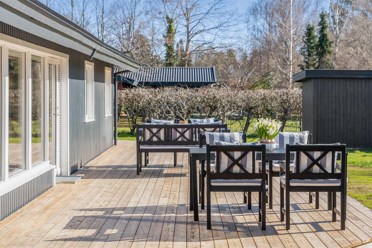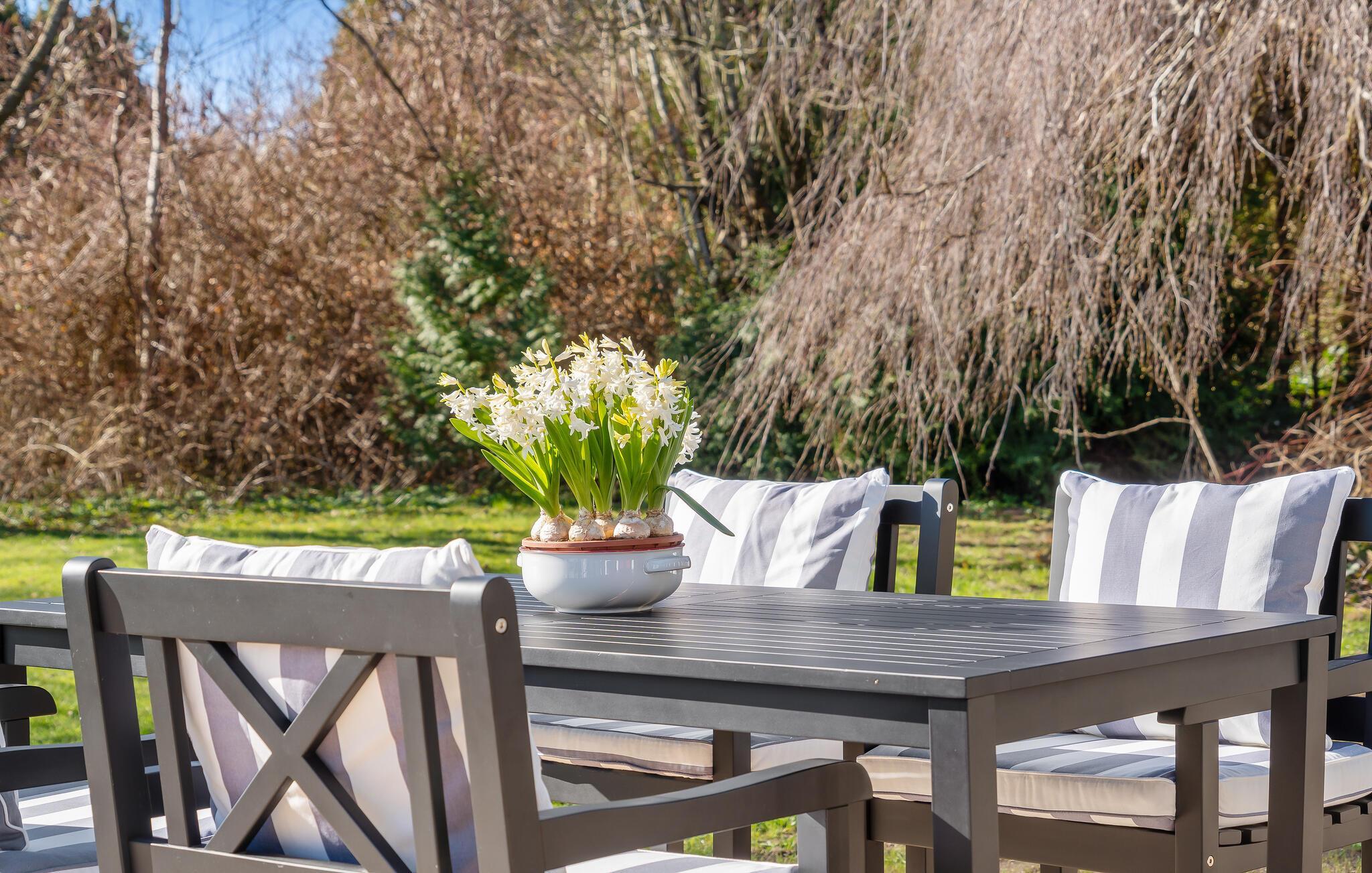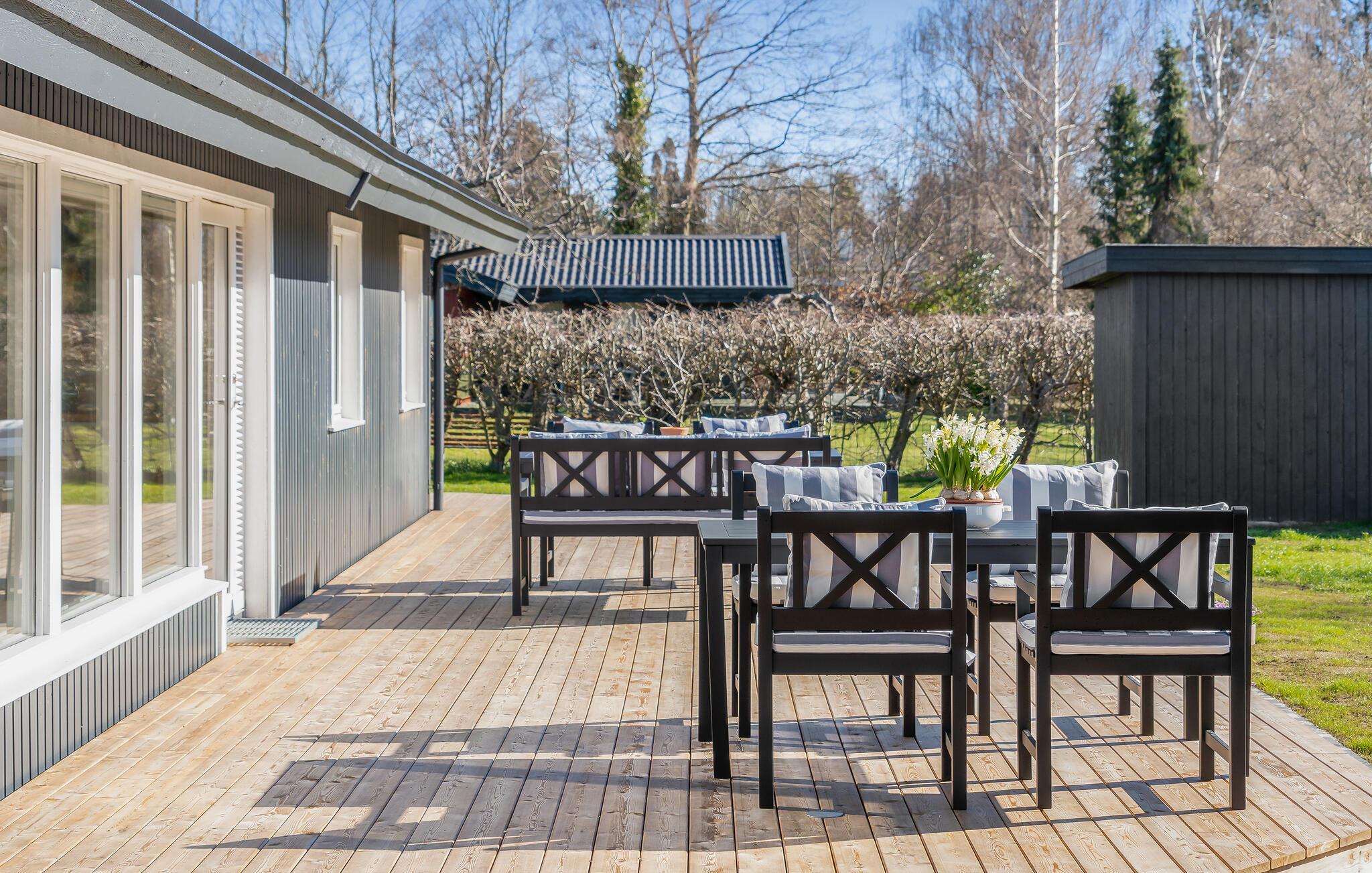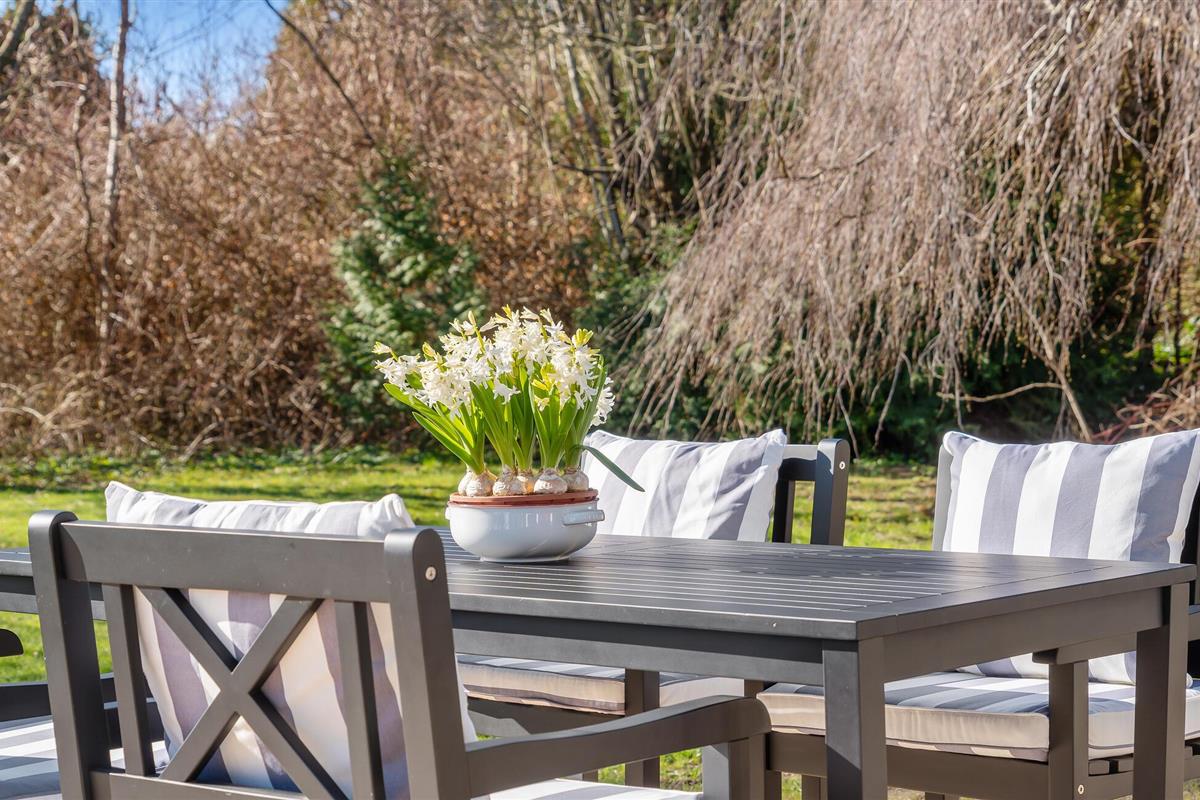 De ruime tuin met schaduwrijke bomen nodigt uit tot ontspannende uren in de buitenlucht. Begin de dag met een stevig ontbijt op het ruime houten terras en gebruik de warme zomeravonden voor gezellige barbecues met je geliefden.