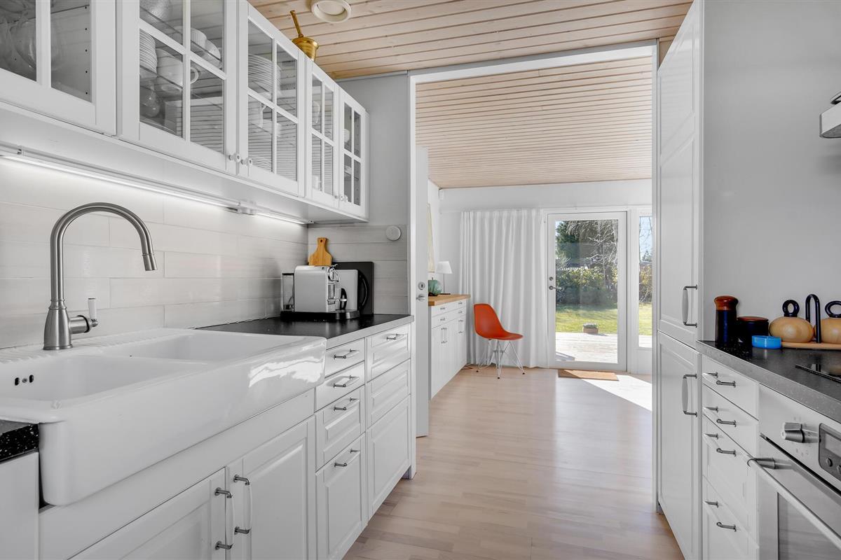 Stap binnen en voel je meteen thuis in de lichte kamers met houten panelen van dit uitnodigende vakantiehuis niet ver van het lange zandstrand van Munkerup. Kook je favoriete gerechten in de goed uitgeruste keuken en geniet ervan in de gezellige eethoek met uitzicht op de groene tuin. Ontspan 's avonds op de ruime bank bij het knapperend haardvuur en breng gezellige uurtjes door met bordspellen spelen of een spannende film kijken.