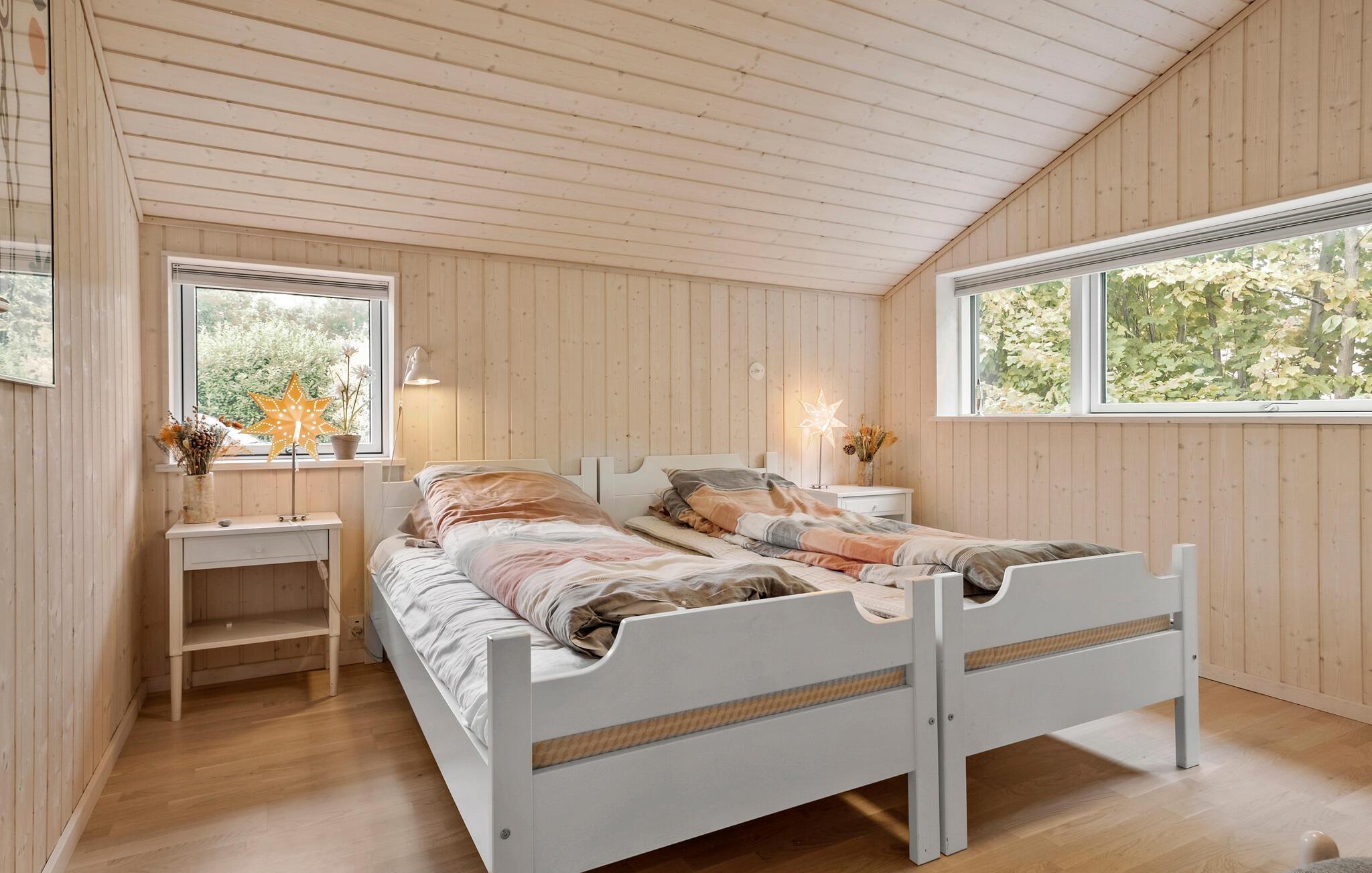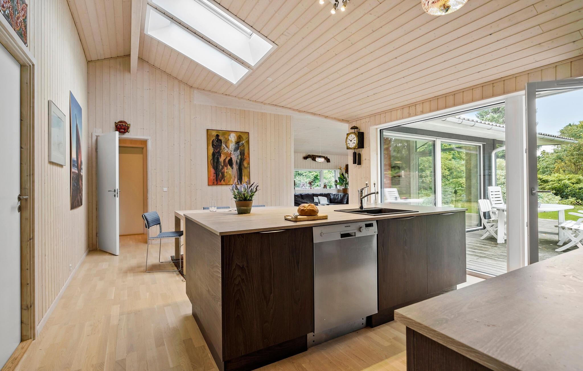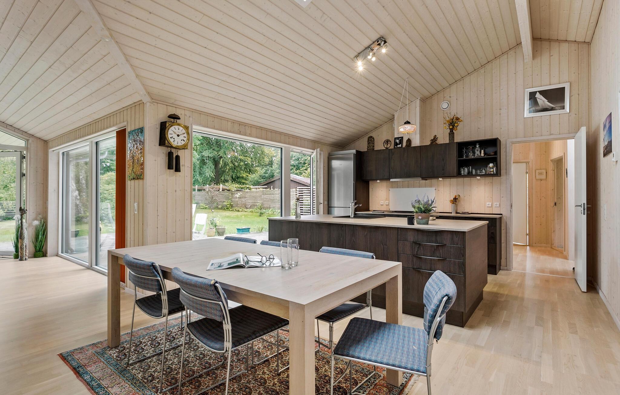 Dit comfortabele en ruime vakantiehuis verwelkomt je met een gezellige sfeer en biedt voldoende ruimte om te genieten van een ontspannen vakantie aan zee, zelfs met een groter gezin. Verzin culinaire hoogtepunten in de open keuken, plan je activiteiten tijdens gezellige maaltijden, trakteer jezelf op gezellige momenten in de sauna of ontspan na een lange dag in de frisse zeelucht met een bordspel of een spannende film in de uitnodigende woonkamer.