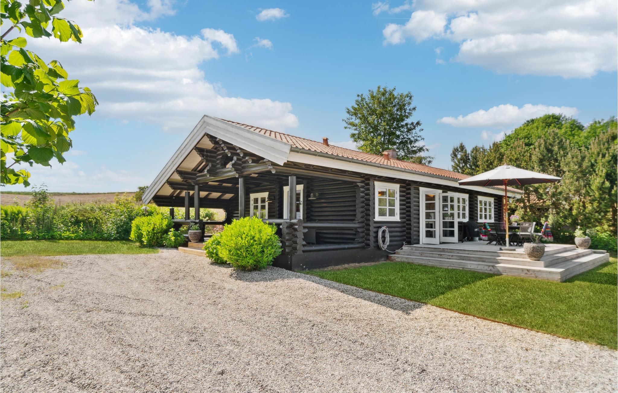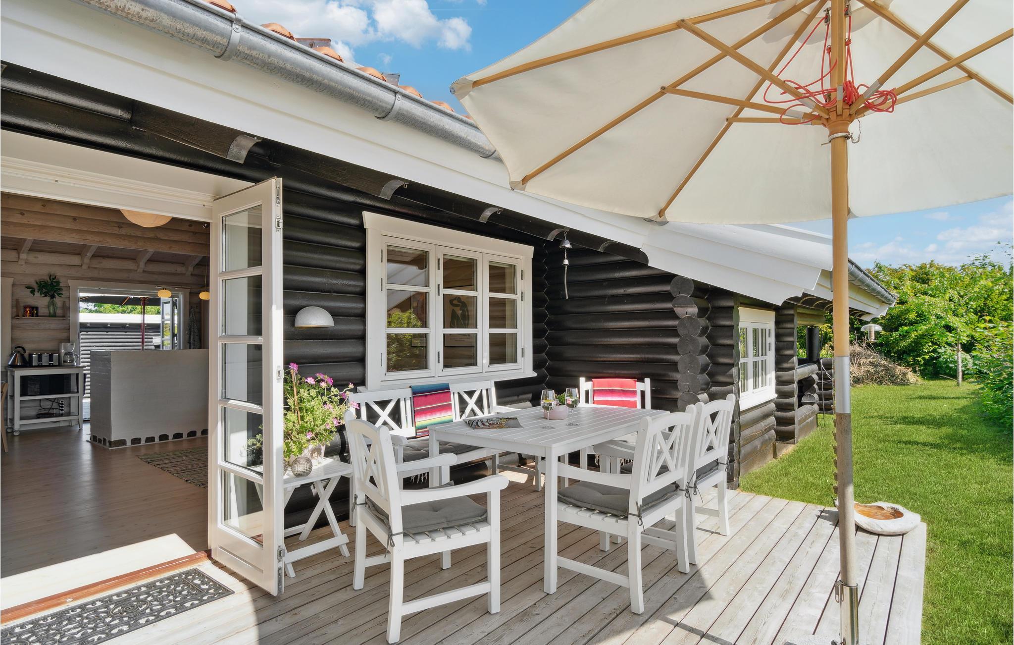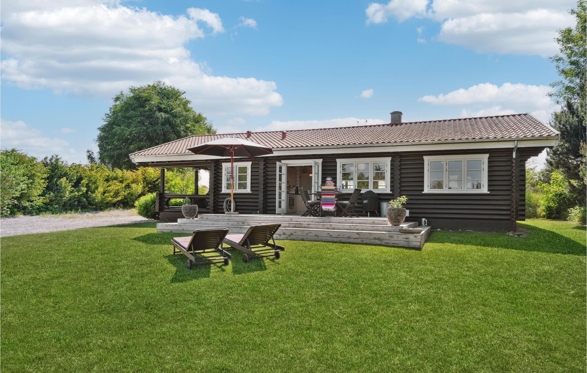 Op een prachtige locatie aan de rand van Munkerup Strand heet deze elegante en smaakvolle blokhut je welkom.