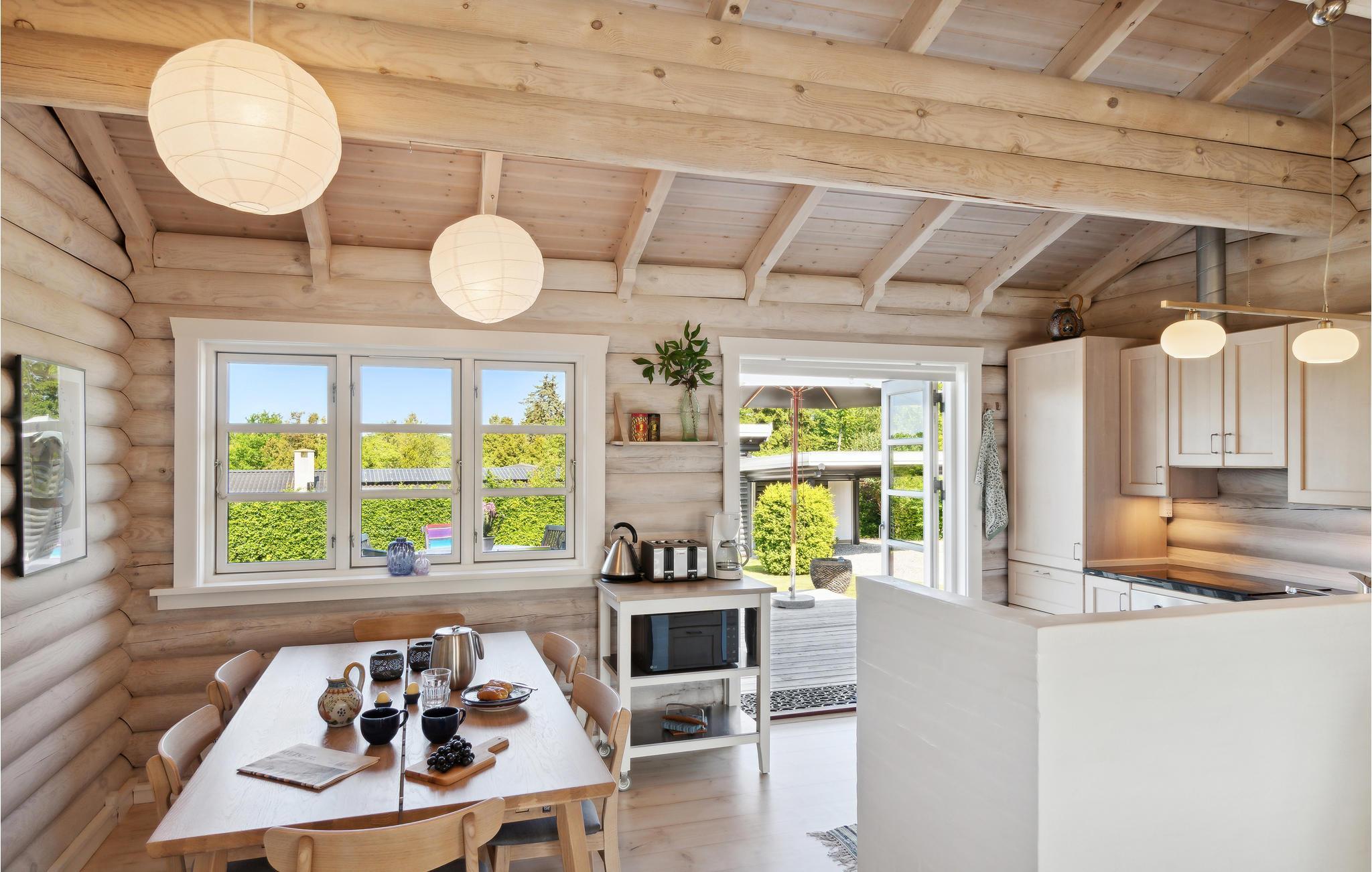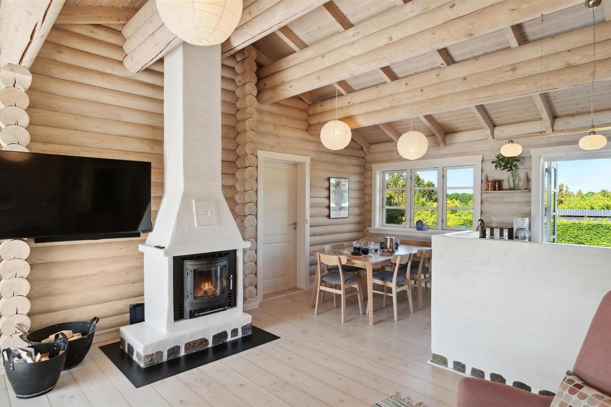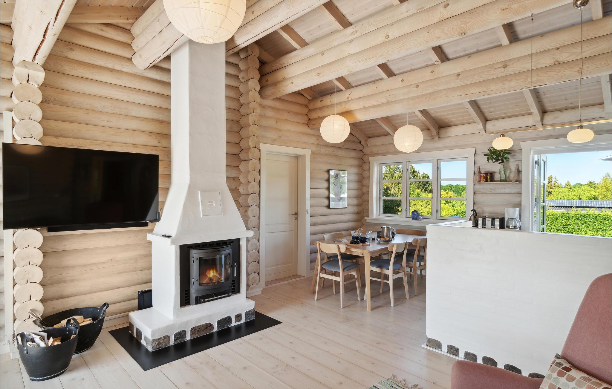 Kijk uit naar een vriendelijke en toch gezellige sfeer in het huis. Het licht gebeitste hout draagt bij aan je welzijn in dit mooie en comfortabele huis. Maak het jezelf gemakkelijk in de woonkamer, leg je voeten op de bank, kijk 's avonds een film of luister naar de knisperende vlammen in de open haard. In het volledig uitgeruste huis kun je tot rust komen en genieten van het comfort.