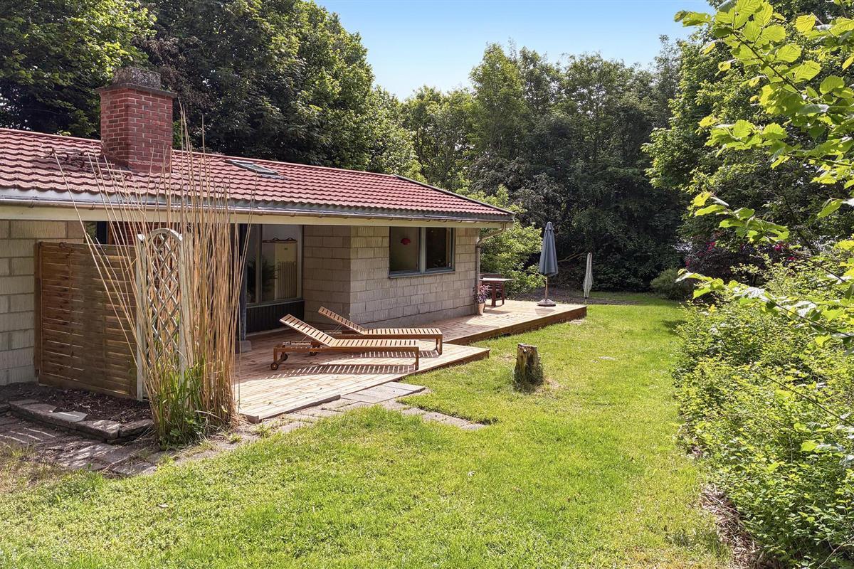 Ontspan in dit gezellige vakantiehuis nabij Munkerup Strand met een ruim terras en een prachtige, groene tuin.