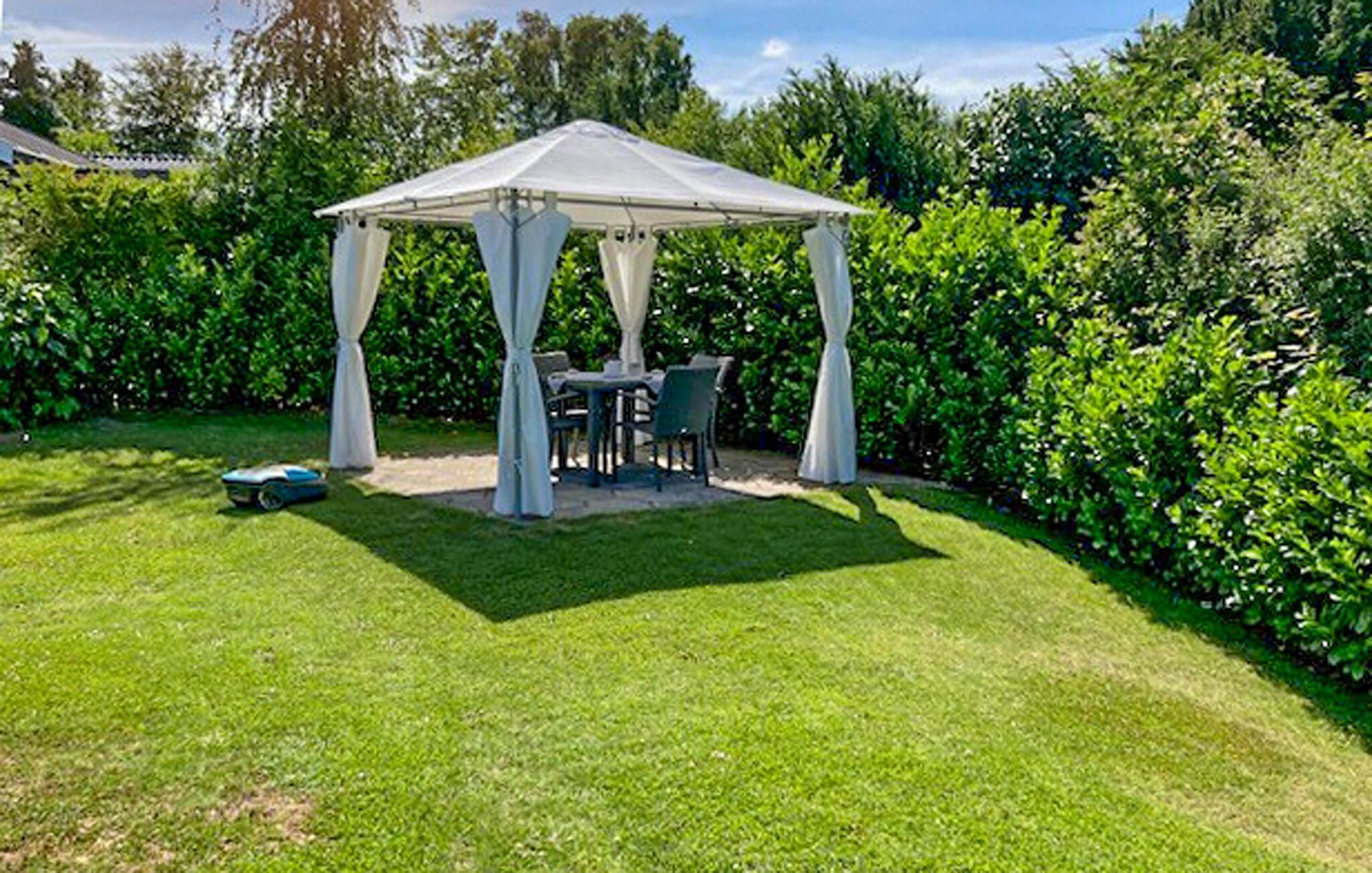 De goed onderhouden en beschutte buitenruimte biedt veel privacy voor ontspannende uren in de buitenlucht. Begin je dag met een ontbijt in het groen en ontspan op de ligstoel terwijl de kinderen een picknick organiseren. Gebruik de zomerkeuken om sfeervolle barbecues te bereiden of neem plaats in de gezellige lounge met een glas wijn.