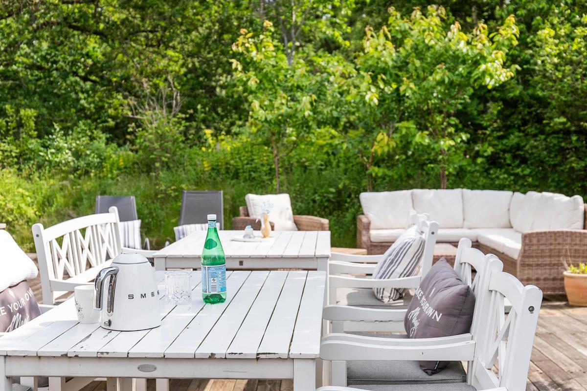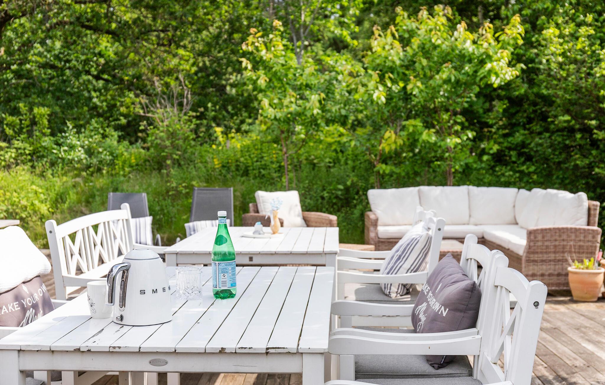 Stap uit op het grote terras dat om het huis ligt en geniet van de dag op een van de vele zonnige of schaduwrijke plekjes. Gebruik de comfortabele stoelen voor lange zomeravonden met een glas wijn of nodig mensen uit voor een al fresco maaltijd. Bereid verse pizza's in de pizzaoven buiten of ontspan in de hangmat omringd door weelderig groen.