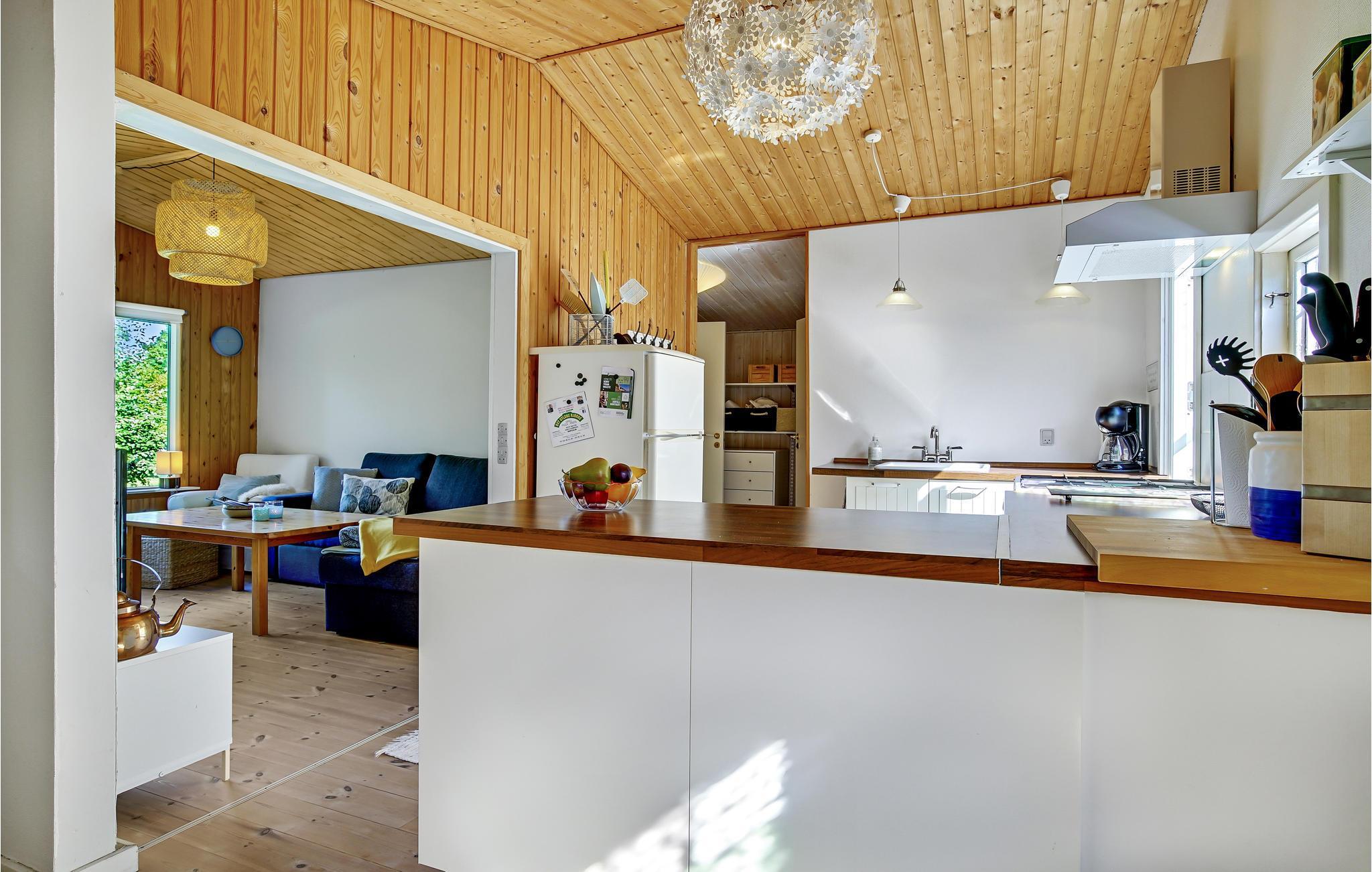 Dit gezellige vakantiehuis ligt in het dorp Næs, bij Vordingborg. Het huis ligt in een rustige omgeving en aan de buitenkant van een woonwijk met uitzicht op de velden. Het heeft een open keuken die verbonden is met de woonkamer en eetkamer. Het huis heeft een mooie badkamer met douche en vloerverwarming.