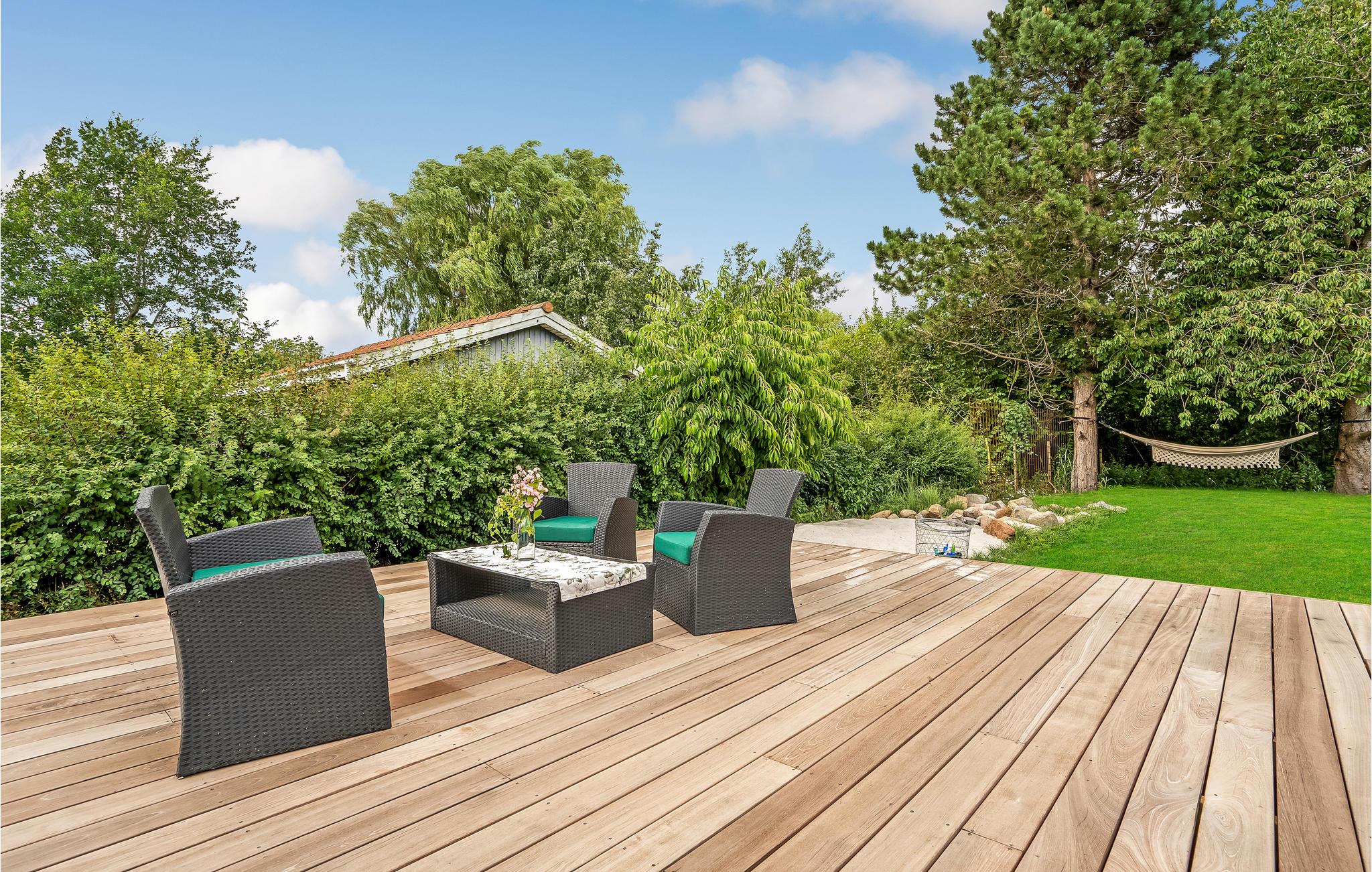 U woont slechts een paar honderd meter van de zee, waar u in het water kunt springen of ontspannende wandelingen kunt maken langs het zandstrand. Voor dagtochten raden we het natuurgebied van het nabijgelegen schiereiland Knudshoved Odde en het gezellige stadje Vordingborg met diverse winkels, cafés en een oud kasteelcomplex aan.