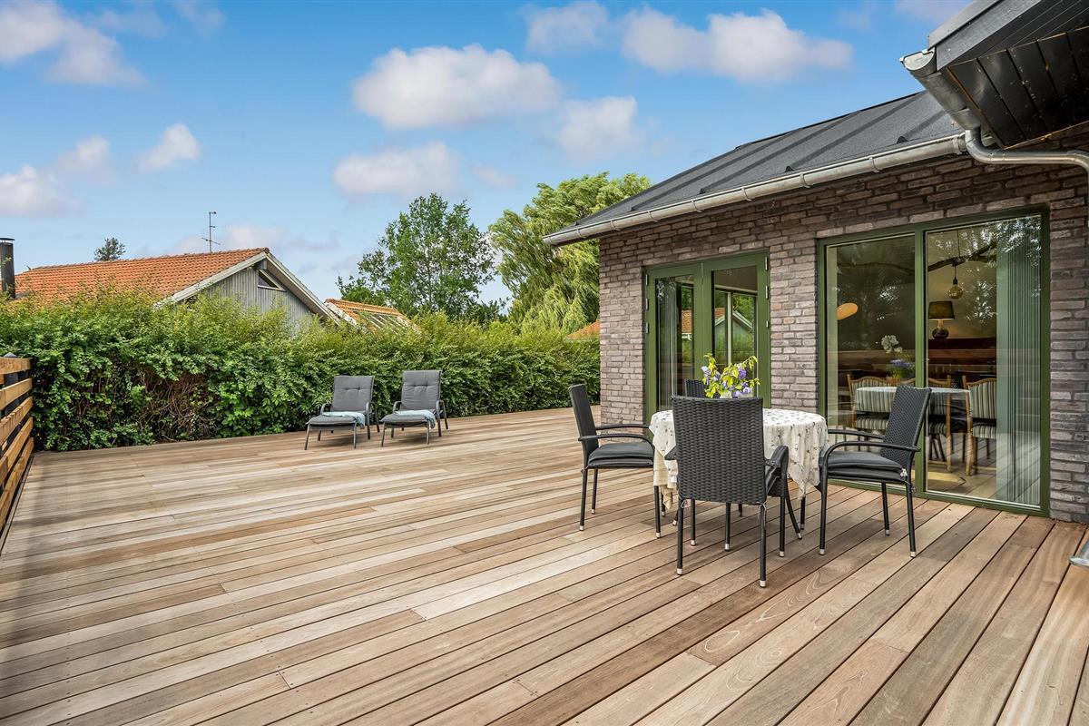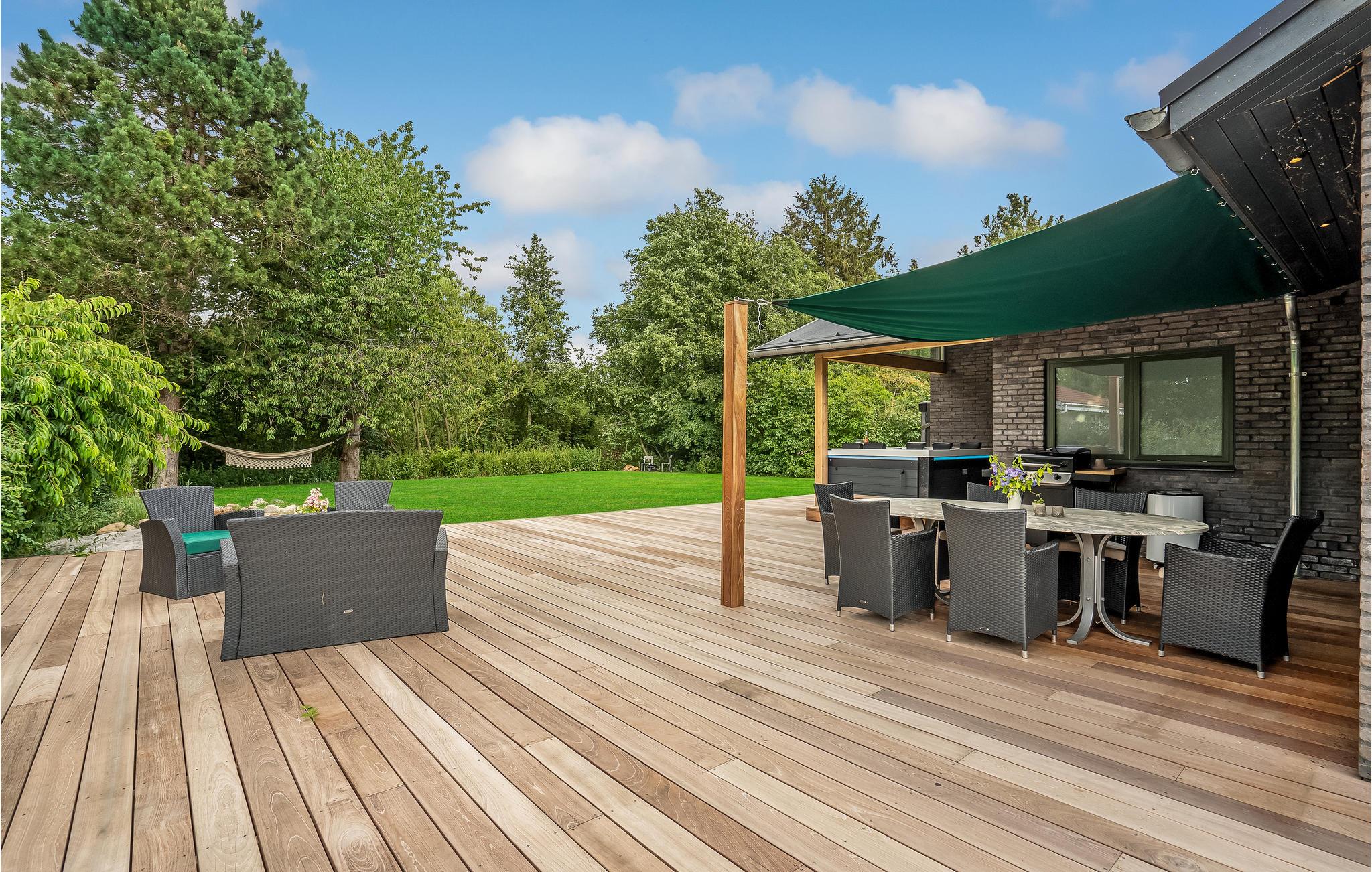 Het ruime houten terras en de tuin met zijn vele hoekjes nodigen uit om volop te genieten van de heldere zomeravonden. Laat de kinderen zich vermaken op het grasveld of in de zandbak terwijl u zich ontspant in het tuinmeubilair of in de hangmat met een ijsdrankje. Er is ook een buitendouche voor verfrissing op warme dagen.