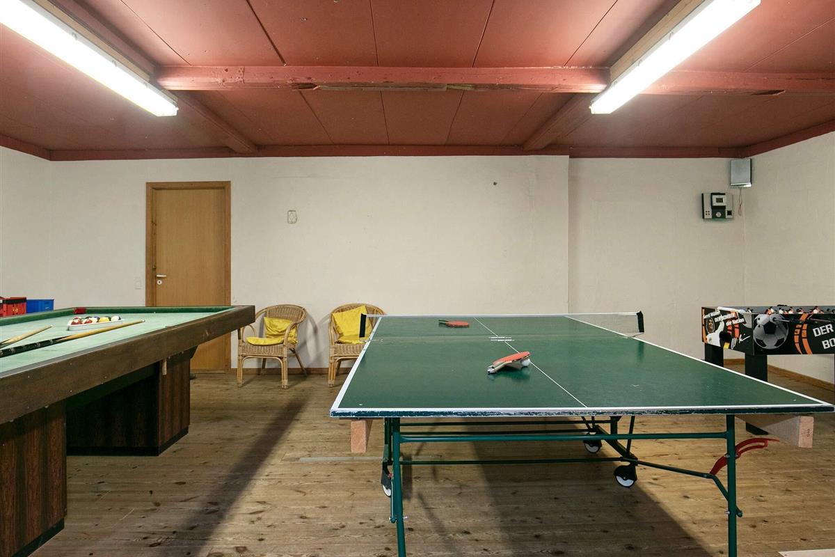 Den absoluten Anziehungspunkt des Hauses bildet der 80 m² große Poolraum mit einem 21 m² großen Swimmingpool, Kinderbecken und einem großen Whirlpool. Haus und Pool sind ganzjährig beheizt, im Winter auf 22 bzw. 30 Grad. Zudem steht ein 50 m² großer Aktivitätsraum mit Billard, Tischtennis etc. für den Freizeitspaß bereit.