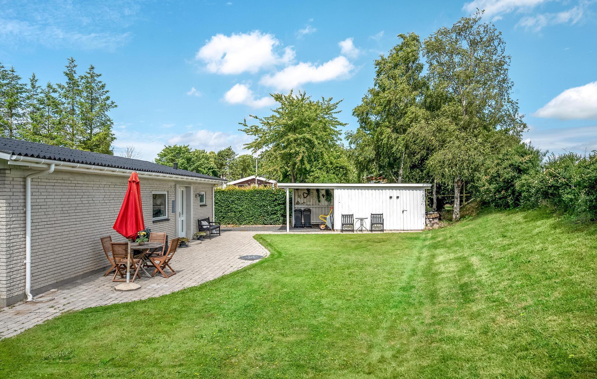 Gezellig vakantiehuis met tuin en terras, vlak bij het kiezelstrand van Næsby Strand in Denemarken.