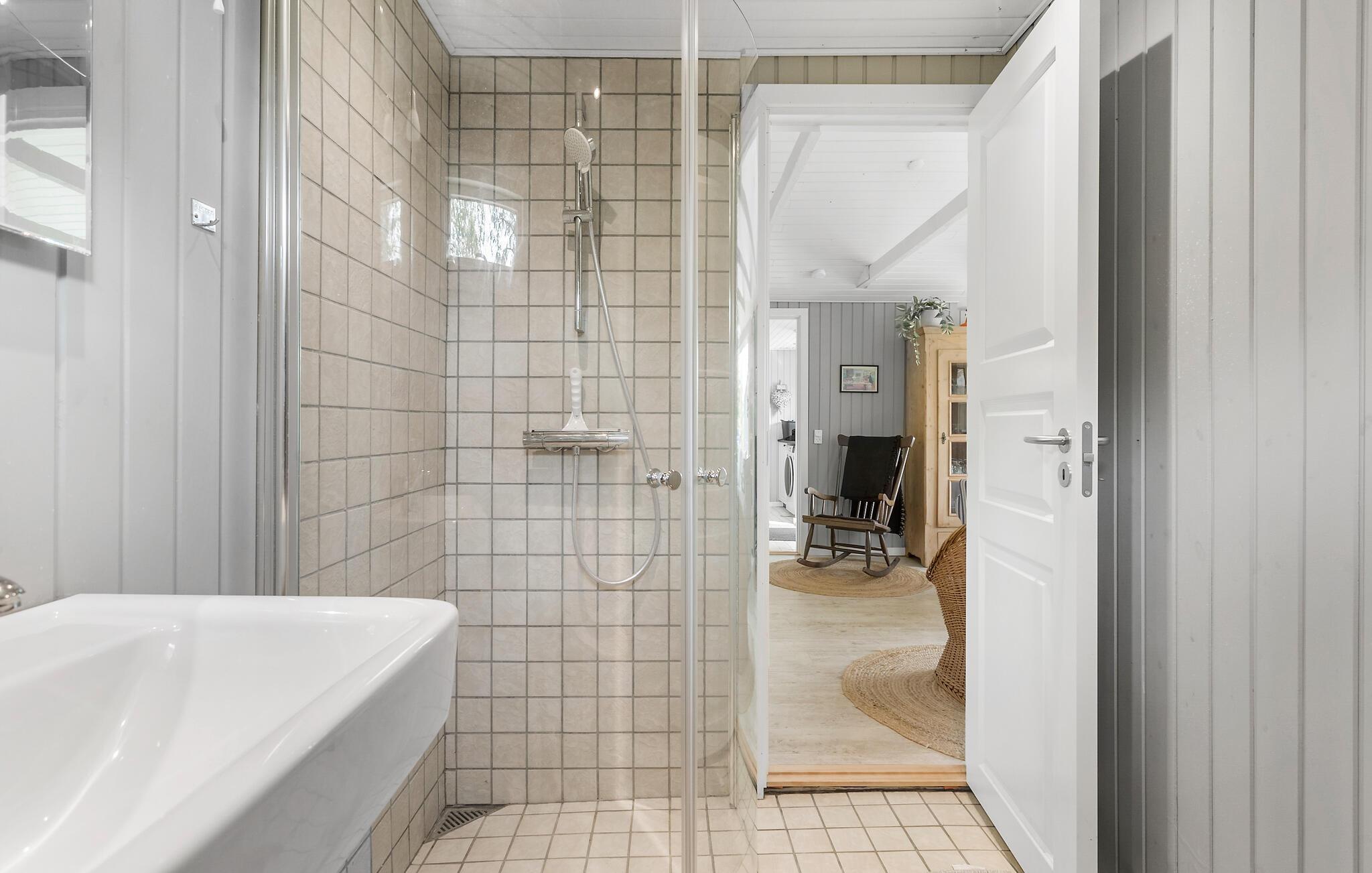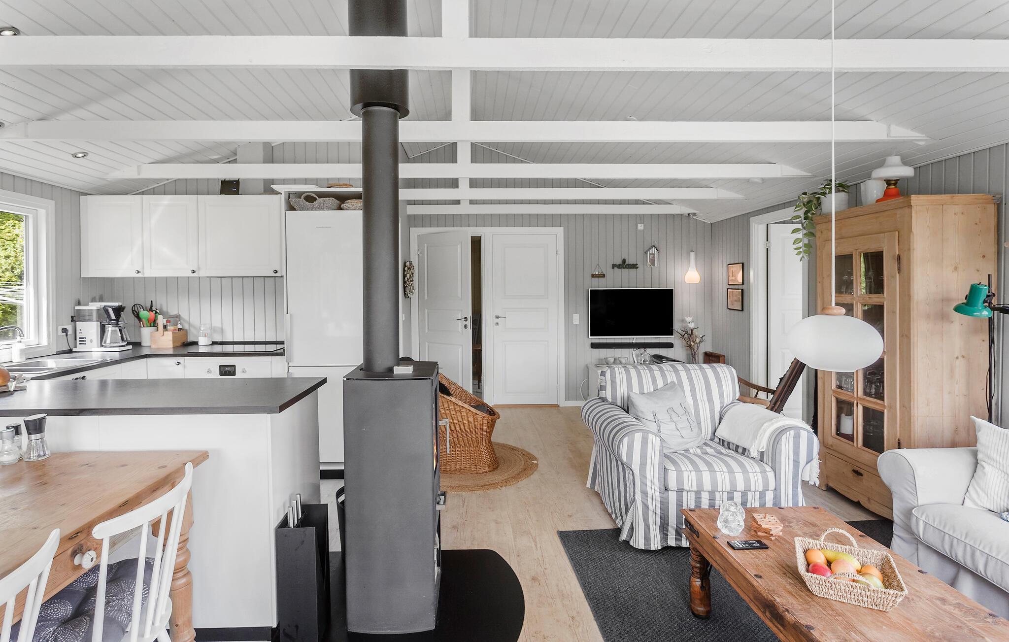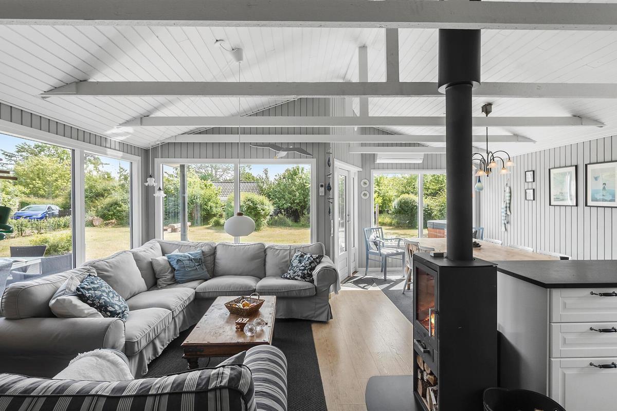 Dit mooie vakantiehuis ligt aan het strand van Næsby op het eiland Lolland. Het heeft een open keuken, die modern is uitgerust en in verbinding staat met de eet- en woonkamer met houtkachel. Vanaf hier heeft u toegang tot het overdekte terras en het open terras met kwaliteits tuinmeubilair. Er is ook een mooie buitenkeuken met gootsteen op het terras waar u heerlijke barbecues kunt bereiden en doorbrengen. Er is een wasmachine in de bijkeuken. De badkamer met douche heeft vloerverwarming. Er zijn 3 slaapkamers met goede bedden en bergruimte. Het huis wordt verwarmd door een warmtepomp.