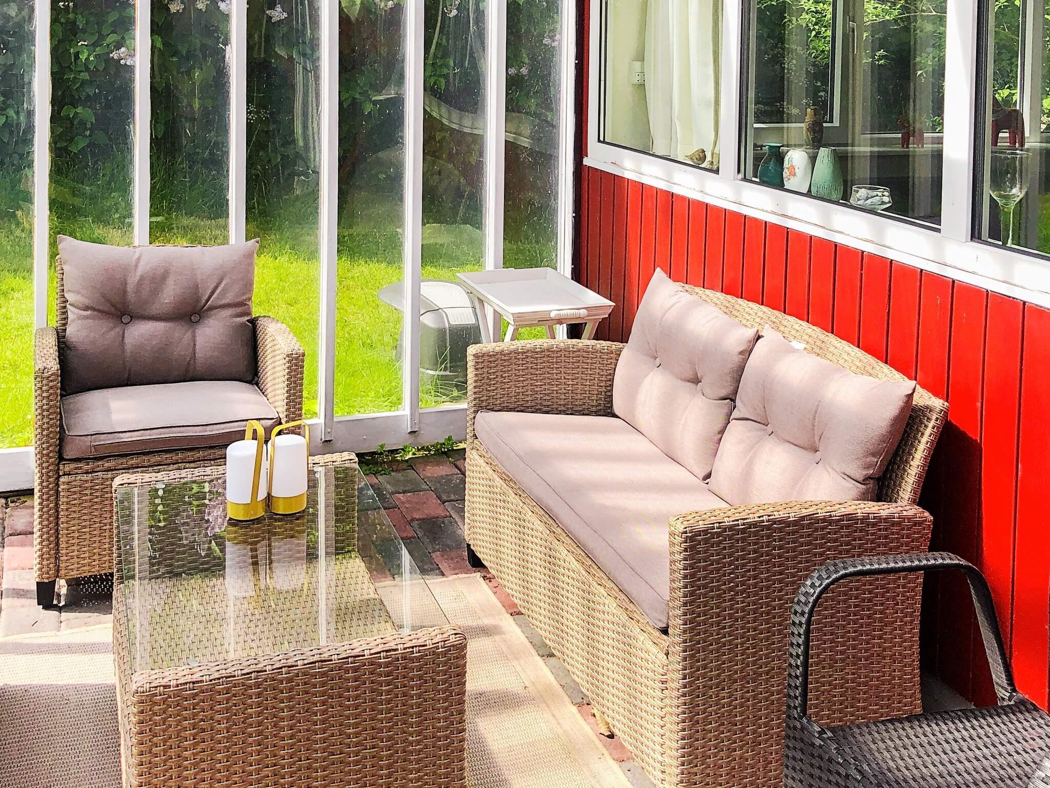 Draußen erwartet Sie eine schön überdachte Terrasse mit Grill und Gartenmöbeln, auf der Sie köstliche Grillgerichte und lange Abende unter dem Sternenhimmel mit Ihren Lieben genießen können.