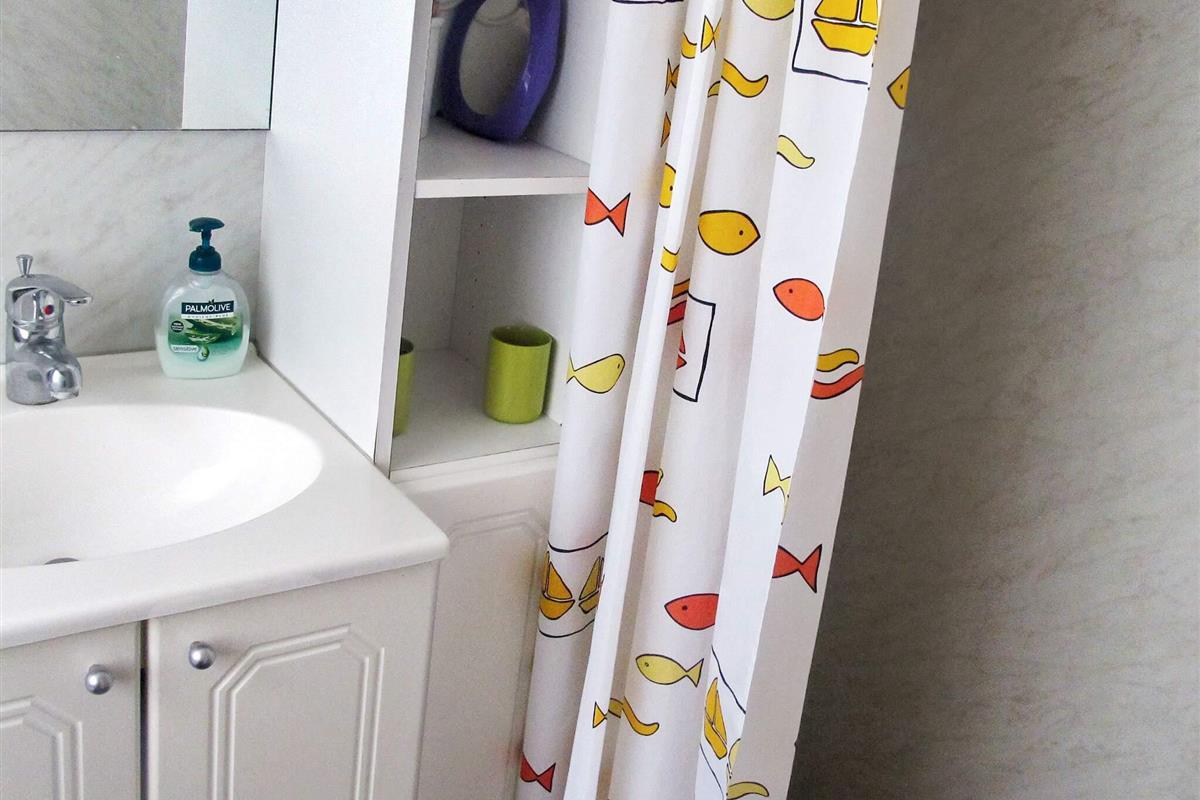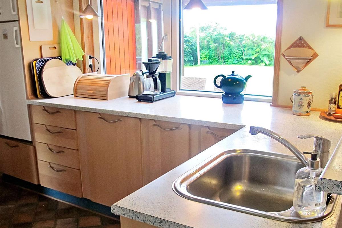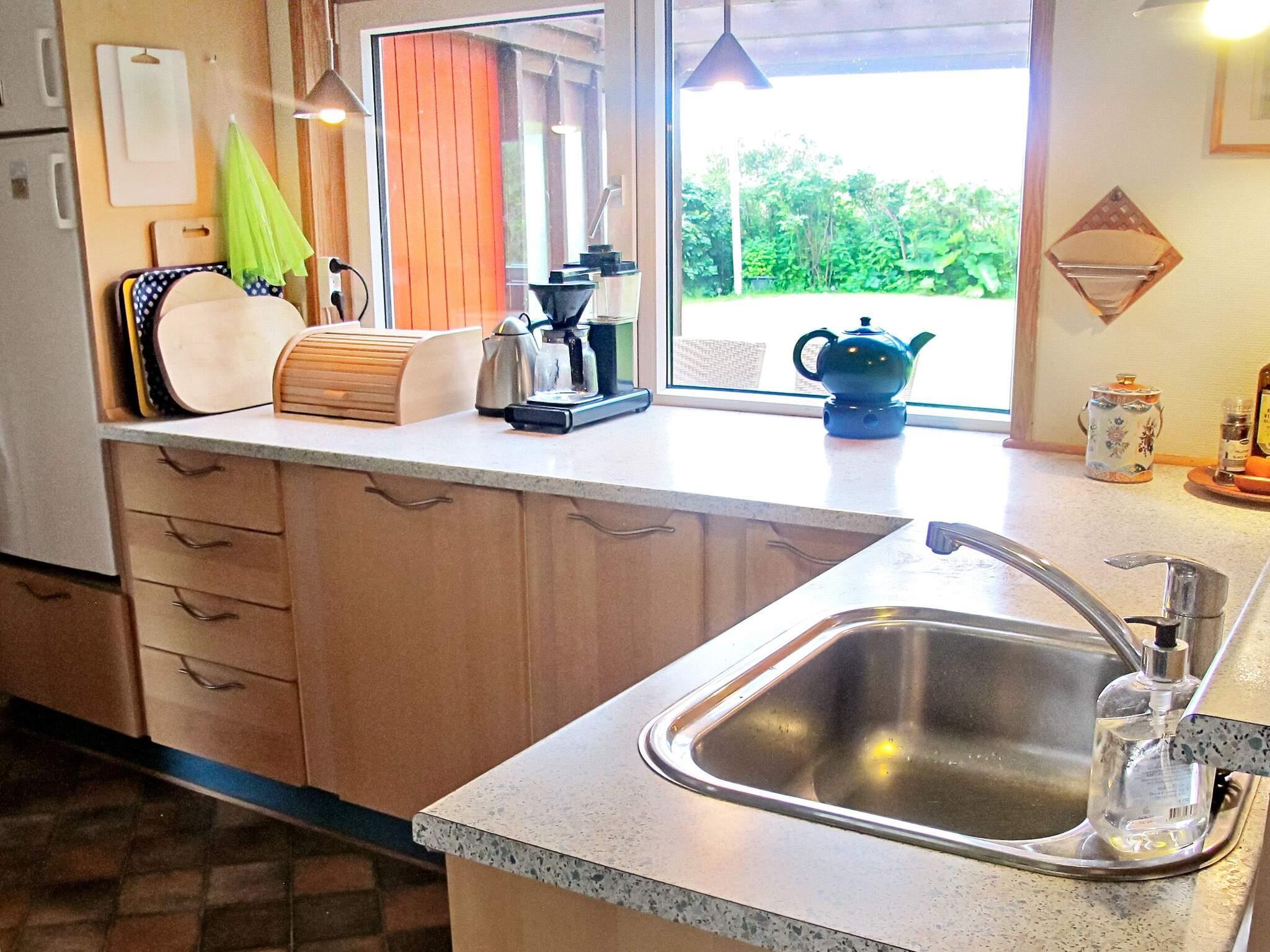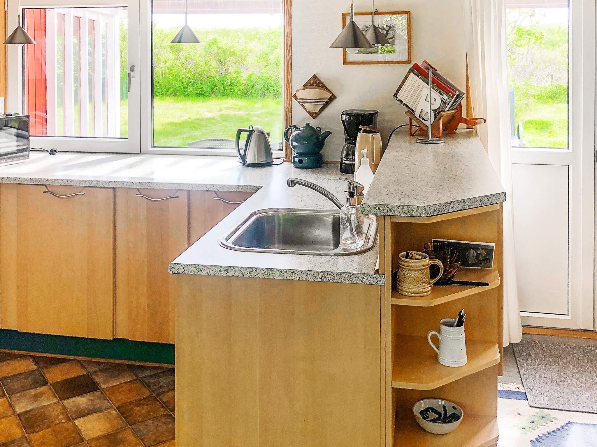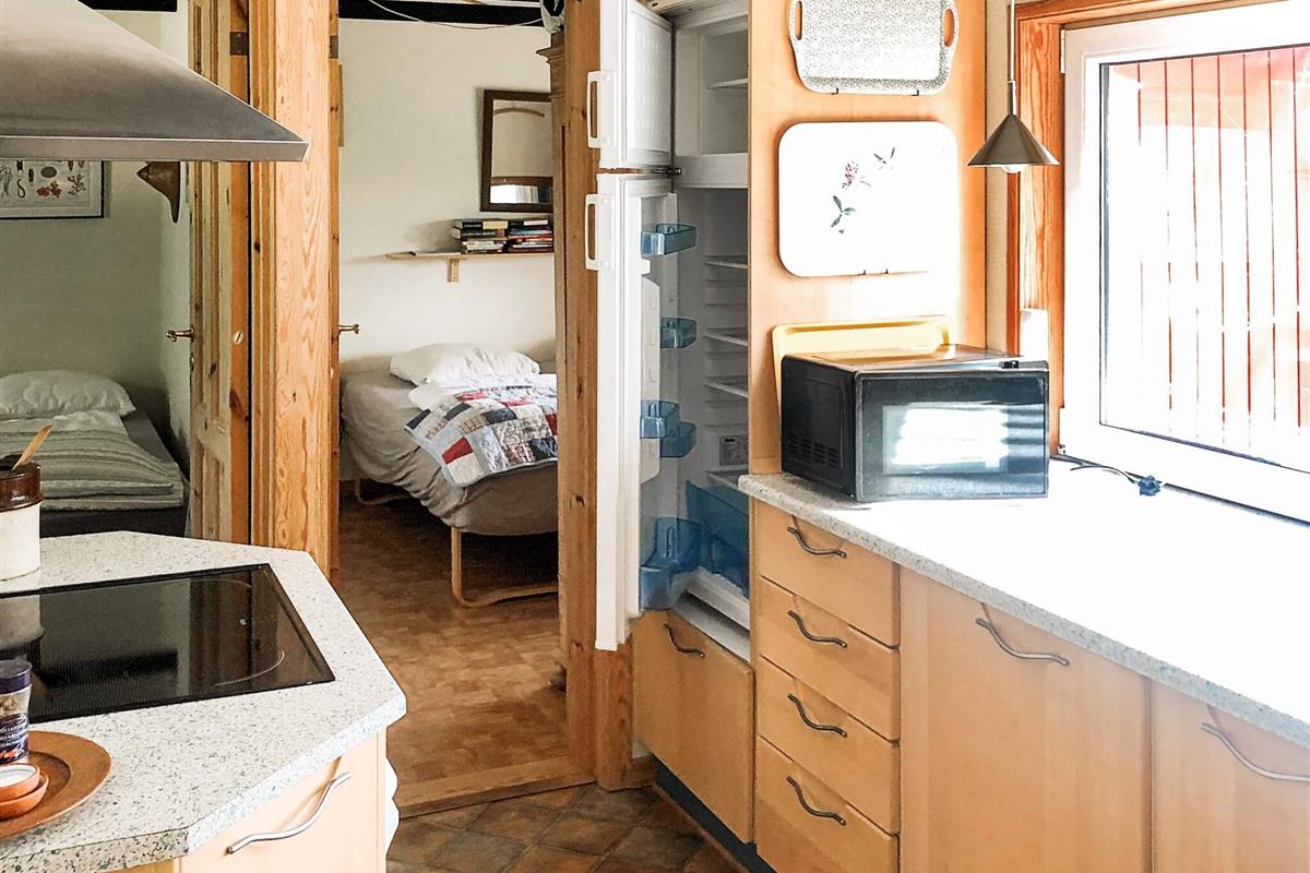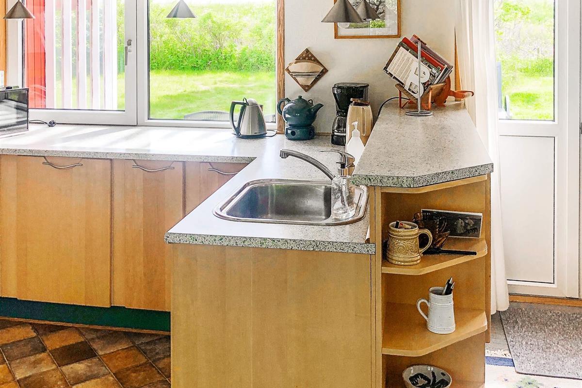 Das Ferienhaus verfügt außerdem über eine gut ausgestattete Küche mit allen notwendigen Geräten zum Kochen sowie ein Badezimmer mit Toilette, Waschbecken und Dusche.