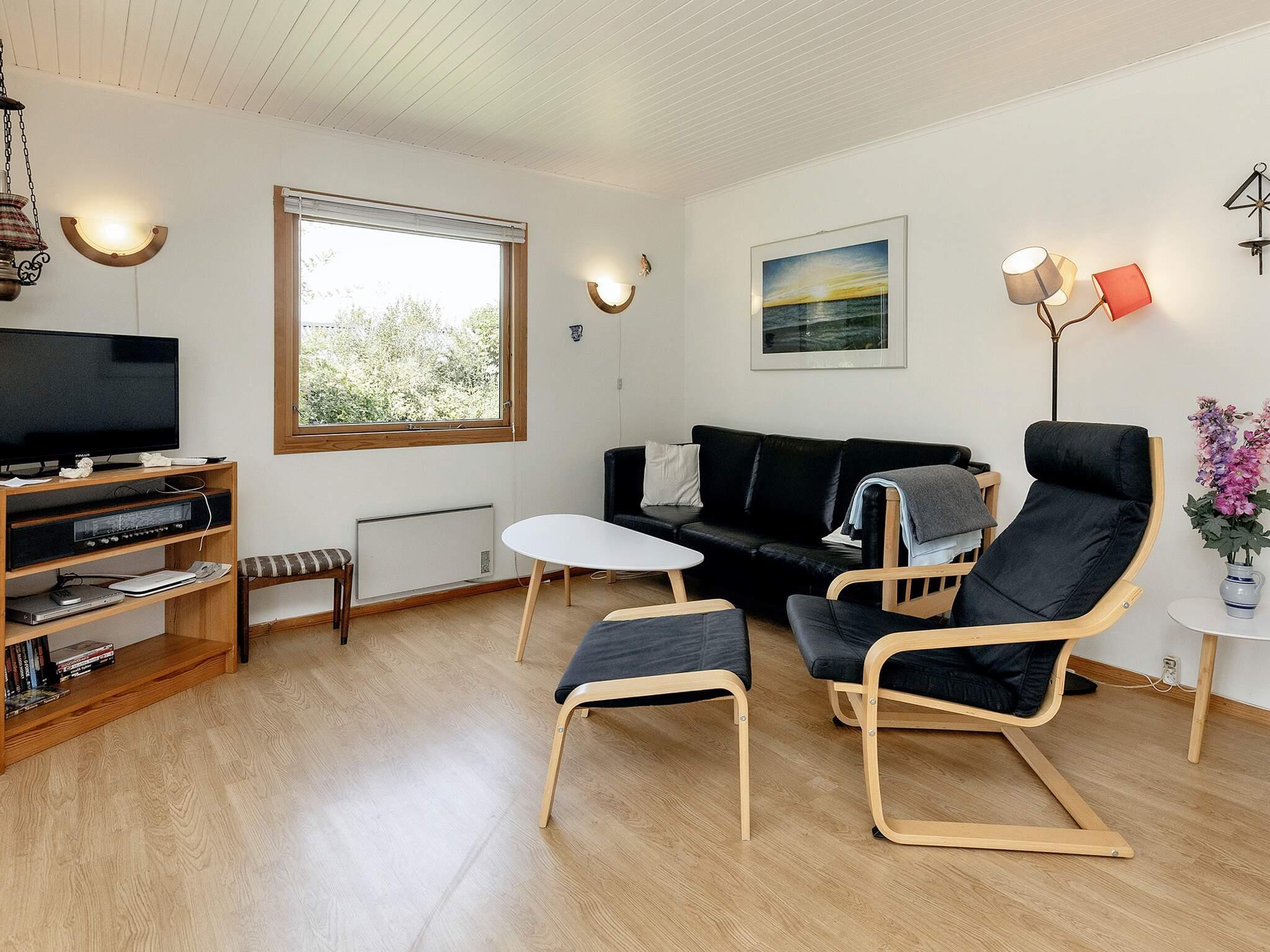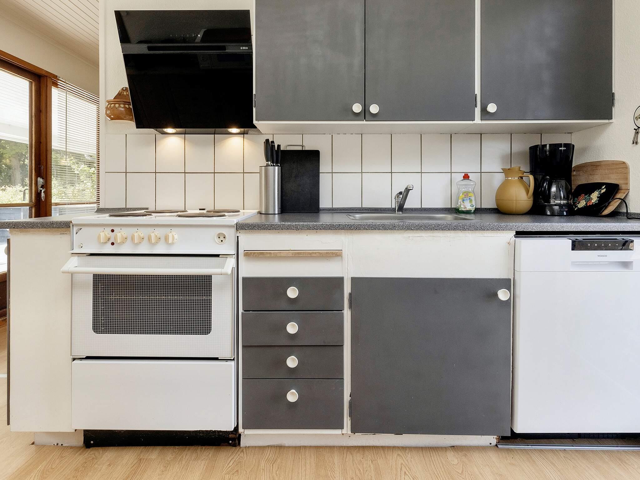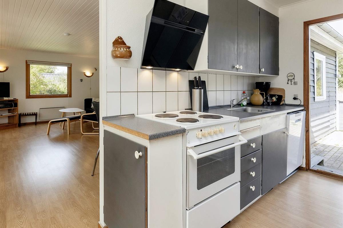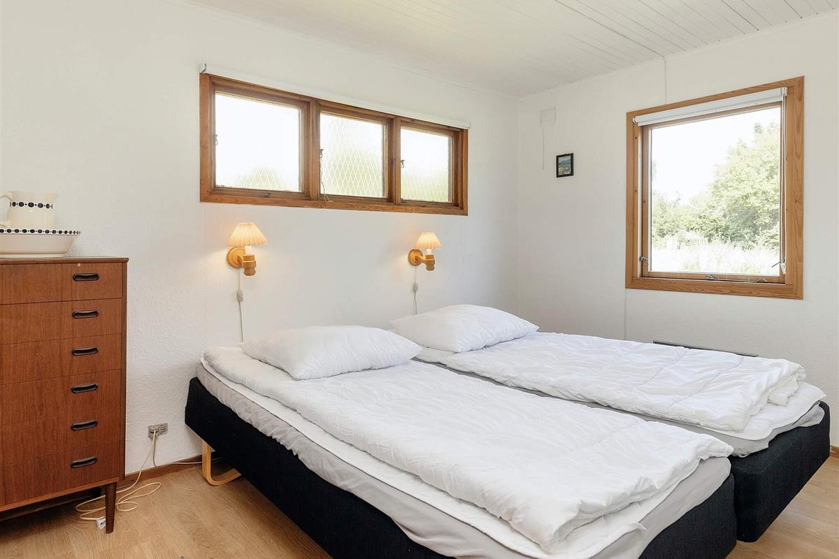 Im Ferienhaus gibt es ein Schlafzimmer mit Doppelbett sowie ein 2. Zimmer mit zwei Einzelbetten und ein 3. Zimmer mit zwei Kojen im Etagenbett. In der Küche gibt es eine Kaffeemaschine, einen Herd mit Backofen, eine Mikrowelle, eine Kühl-Gefrierkombination und einen Geschirrspüler. Badezimmer mit WC, Waschbecken, Dusche und Waschmaschine. Im Wohnzimmer findet man einen Fernseher mit dänischen und einigen deutschen Sendern sowie einen DVD-Player und Internet. Vom Wohnzimmer aus gelangen Sie hinaus auf die halb überdachte Terrasse und in den großen Garten. Es gibt auch ein Kinderbett und einen Hochstuhl im Haus.