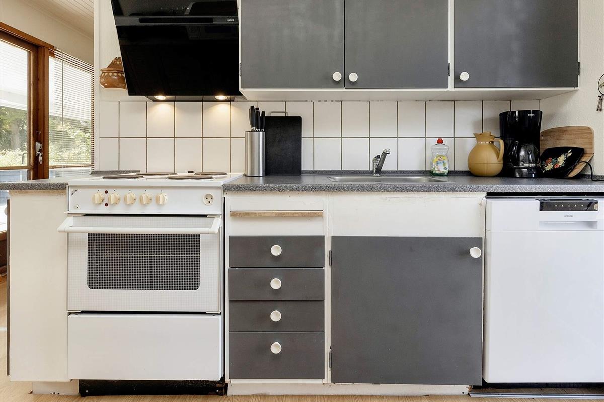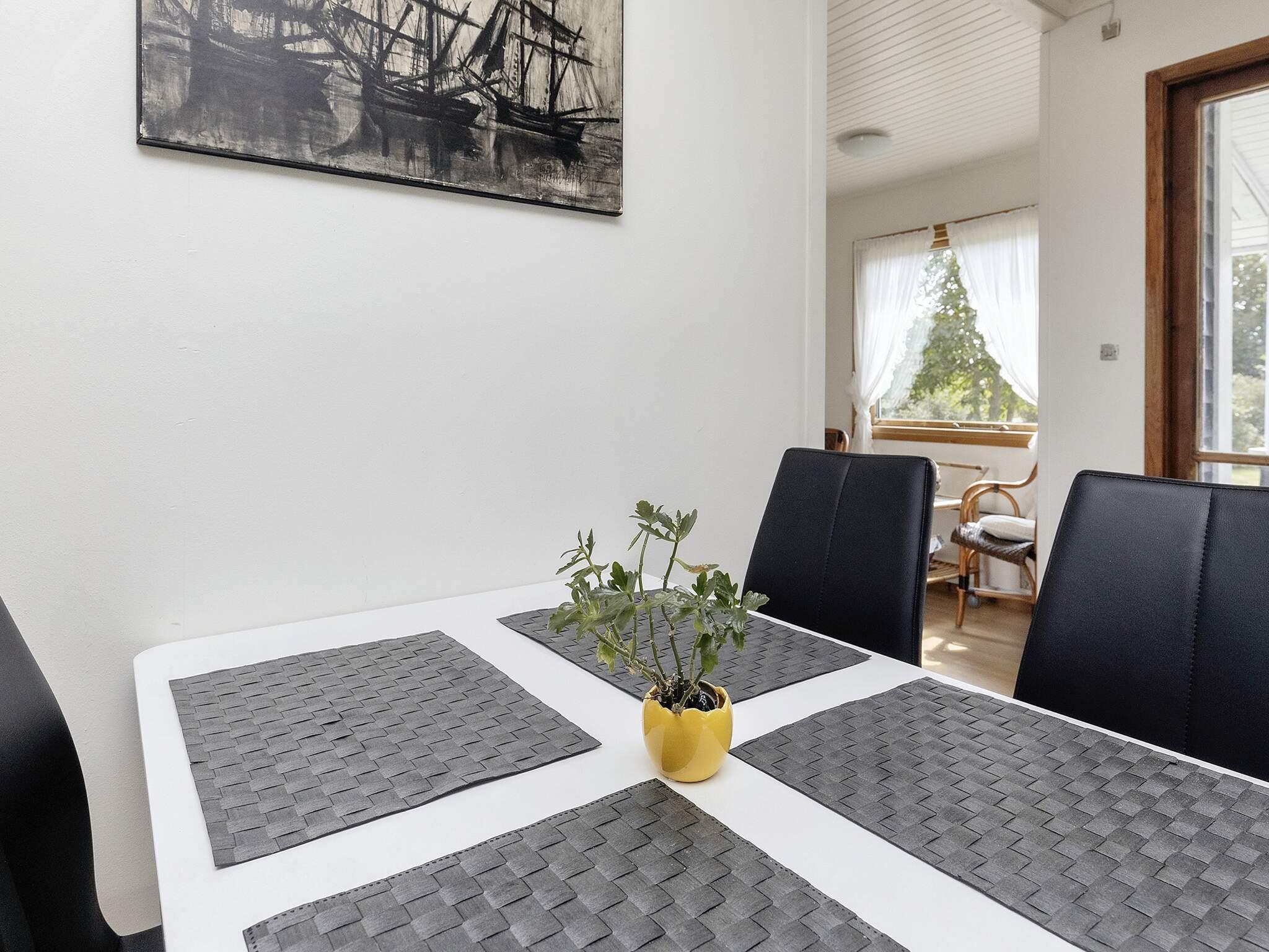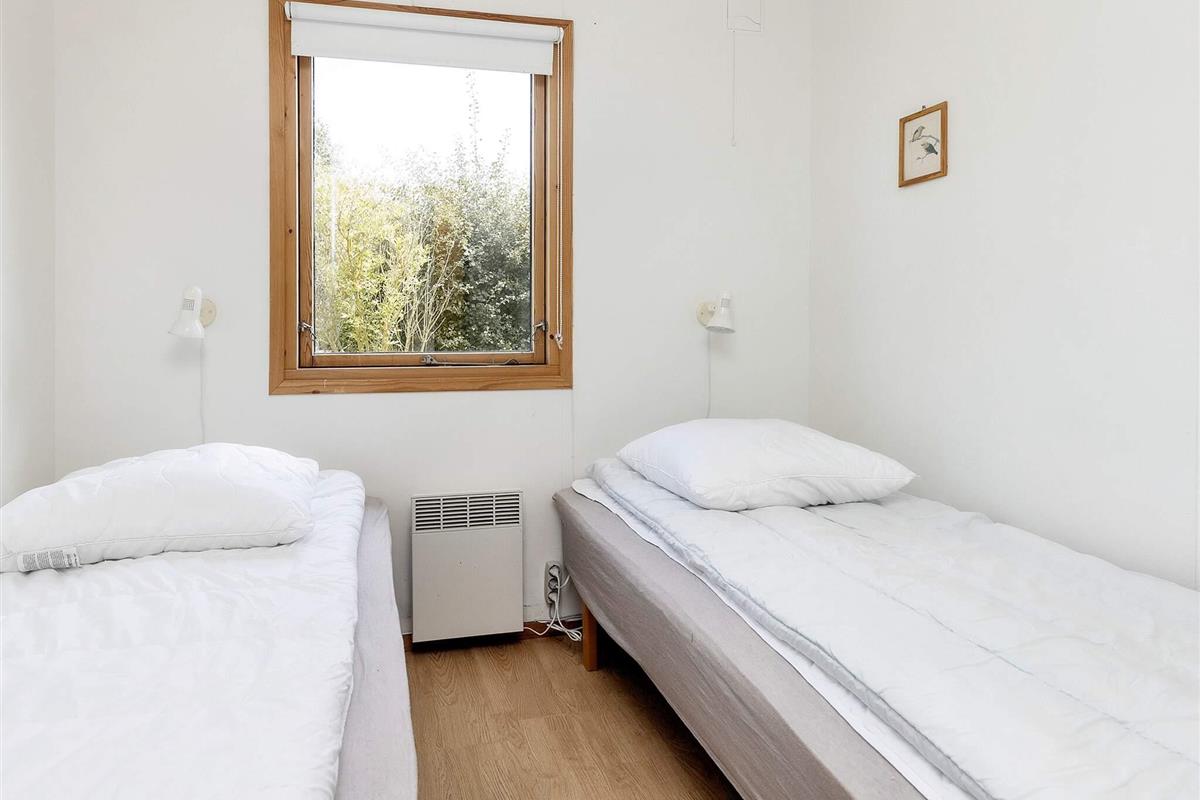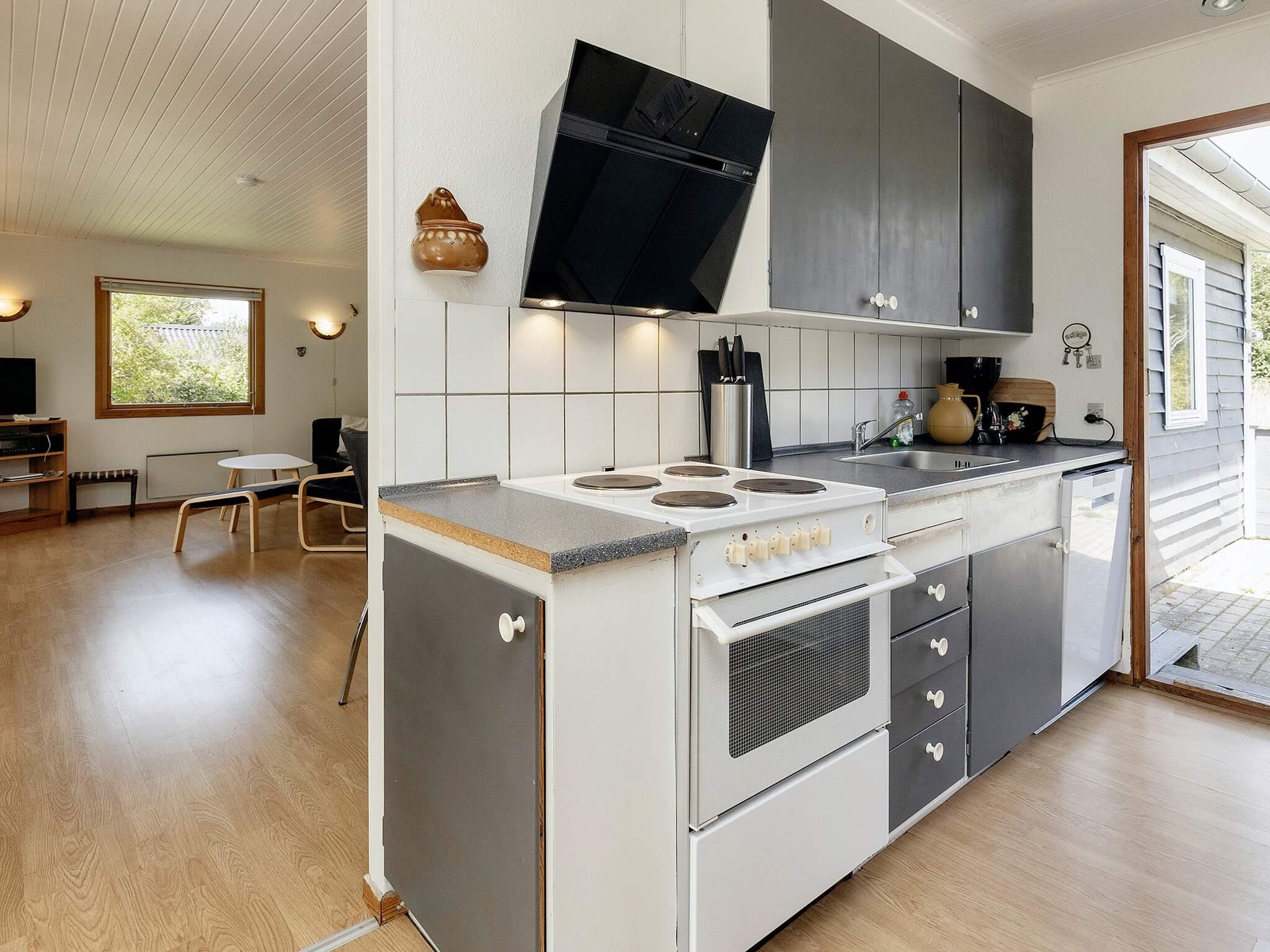 Im Ferienhaus gibt es ein Schlafzimmer mit Doppelbett sowie ein 2. Zimmer mit zwei Einzelbetten und ein 3. Zimmer mit zwei Kojen im Etagenbett. In der Küche gibt es eine Kaffeemaschine, einen Herd mit Backofen, eine Mikrowelle, eine Kühl-Gefrierkombination und einen Geschirrspüler. Badezimmer mit WC, Waschbecken, Dusche und Waschmaschine. Im Wohnzimmer findet man einen Fernseher mit dänischen und einigen deutschen Sendern sowie einen DVD-Player und Internet. Vom Wohnzimmer aus gelangen Sie hinaus auf die halb überdachte Terrasse und in den großen Garten. Es gibt auch ein Kinderbett und einen Hochstuhl im Haus.