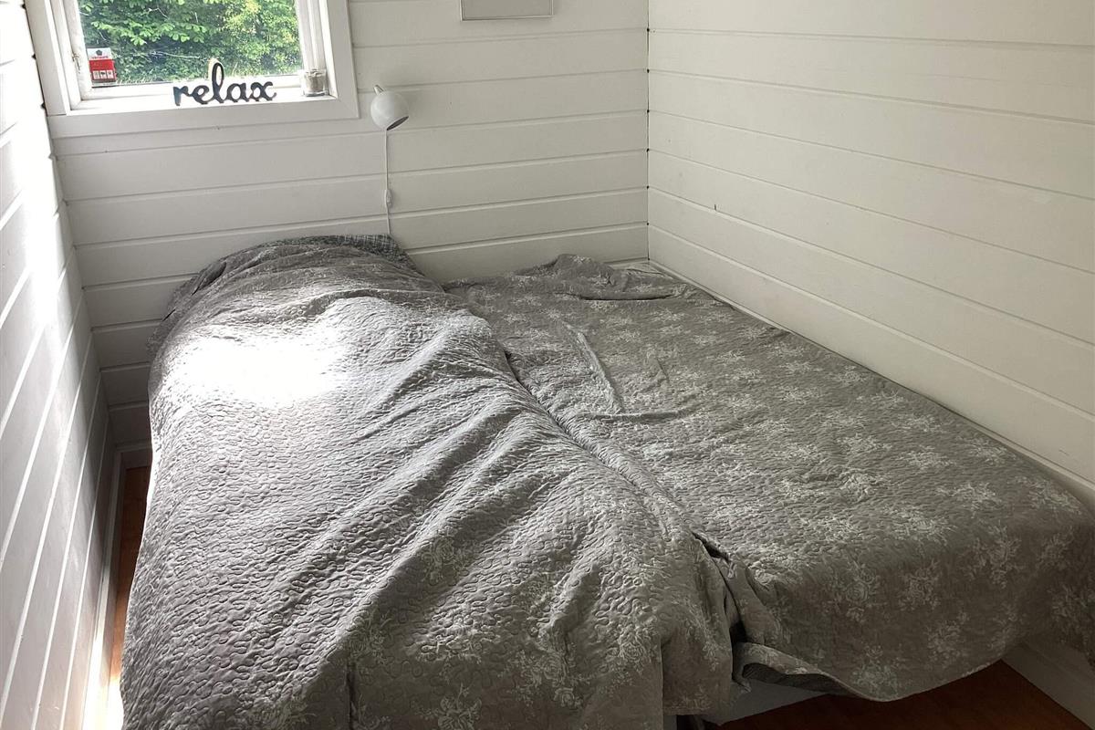 Im Haus befinden sich drei Schlafzimmer; eines mit Doppelbett, eines mit zwei Einzelbetten und ein 3. mit einem Einzelbett. Die offene Küche ist gut ausgestattet und verfügt unter anderem über einen Gasherd, eine Kaffeemaschine, eine Mikrowelle, einen Geschirrspüler und einen Gefrierschrank. Das Wohnzimmer verfügt über eine Wärmepumpe und einen Holzofen, einen Fernseher mit Chromecast und WLAN. Das Badezimmer ist mit Toilette, Waschbecken und Dusche ausgestattet. Vom Wohnzimmer aus haben Sie Zugang zur Terrasse und zum Garten.