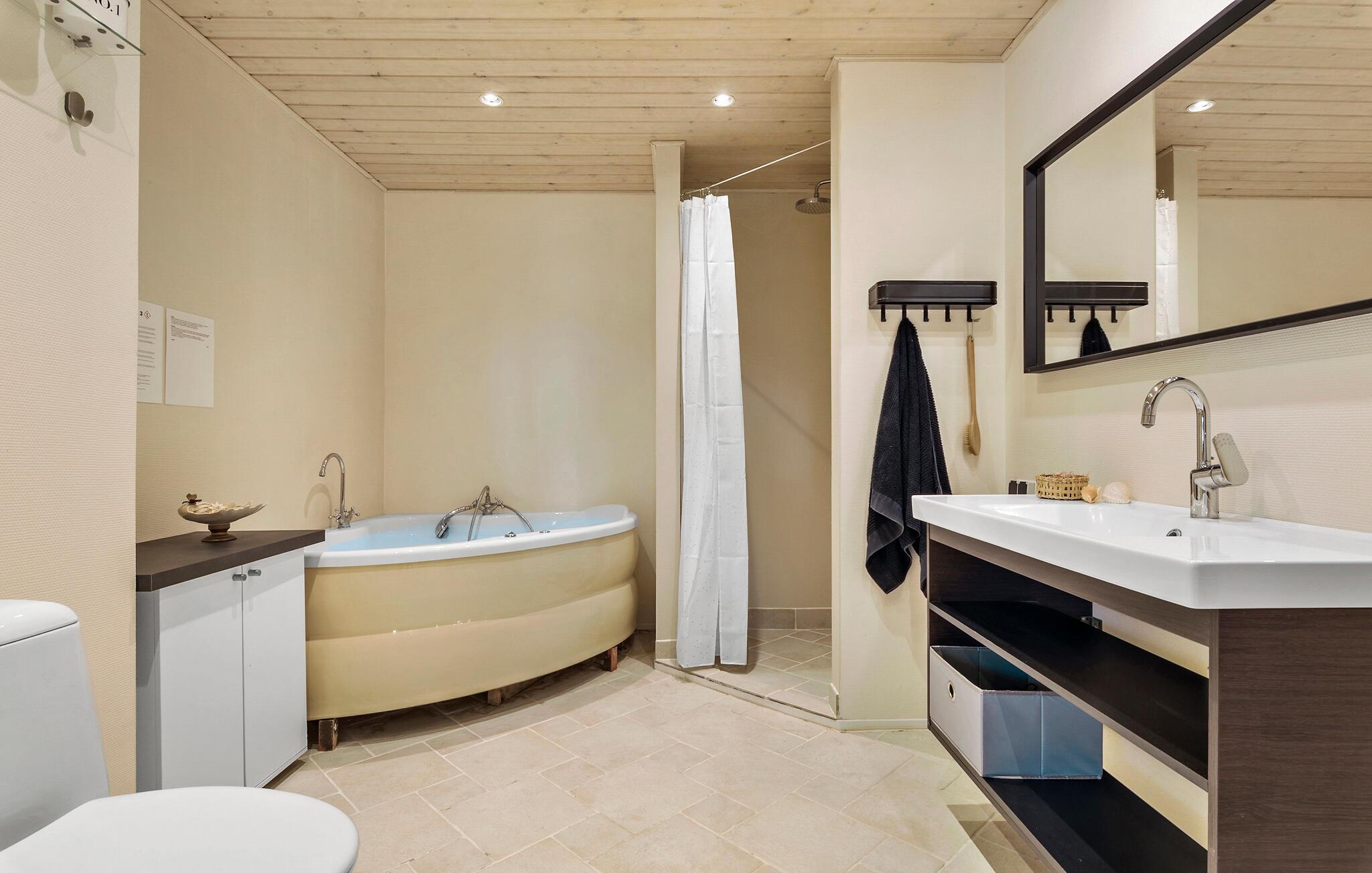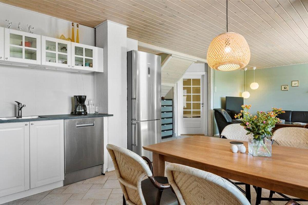 Dicht bij het betoverende Limfjord wacht je een ontspannen begin van de dag na een aangename nachtrust in je gezellige vakantiehuis. Begin de ochtend met een warme kop koffie, vers bereid in de ruime, goed uitgeruste eetkeuken, en trakteer je familie op een heerlijk ontbijt. De uitnodigende zithoek in de woonkamer is ideaal om te ontspannen met een spannend boek of te genieten van een onderhoudende film.