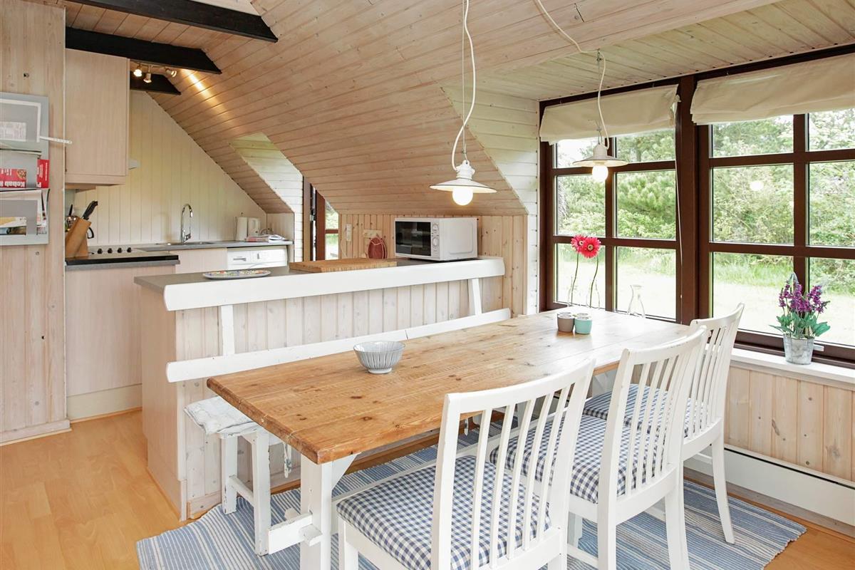 Gut instand gehaltenes Ferienhaus nur ca. 150 m vom Ufer am Nissum Fjord gelegen, an dem man baden und surfen kann. Das Ferienhaus ist zweckmäßig eingerichtet und hat einen offenen Küchen-/Wohnbereich mit Zugang zur Terrasse davor. Zur technischen Ausstattung gehören auch deutsche TV-Sender und WLAN. Holzboden im Küchen-/Wohnbereich. Stromsparende Wärmepumpe sowie wärmender Holzofen für kühlere Abende. Zusätzlich zu drei Schlafzimmern gibt es auch einen Hems oben unter dem Dach, der als Spielfläche für größere Kinder genutzt werden kann. Draußen auf dem Naturgrundstück gibt es eine Schaukel und viel Platz für Ballspiele aller Art. Der kleine Fischereihafen des Ortes liegt nur ca. 150 m vom Ferienhaus. Dort gibt es auch einen Spielplatz und einige Sitzbänke mit Ausblick zum Fjord. Keine Vermietung an Jugendgruppen erwünscht!