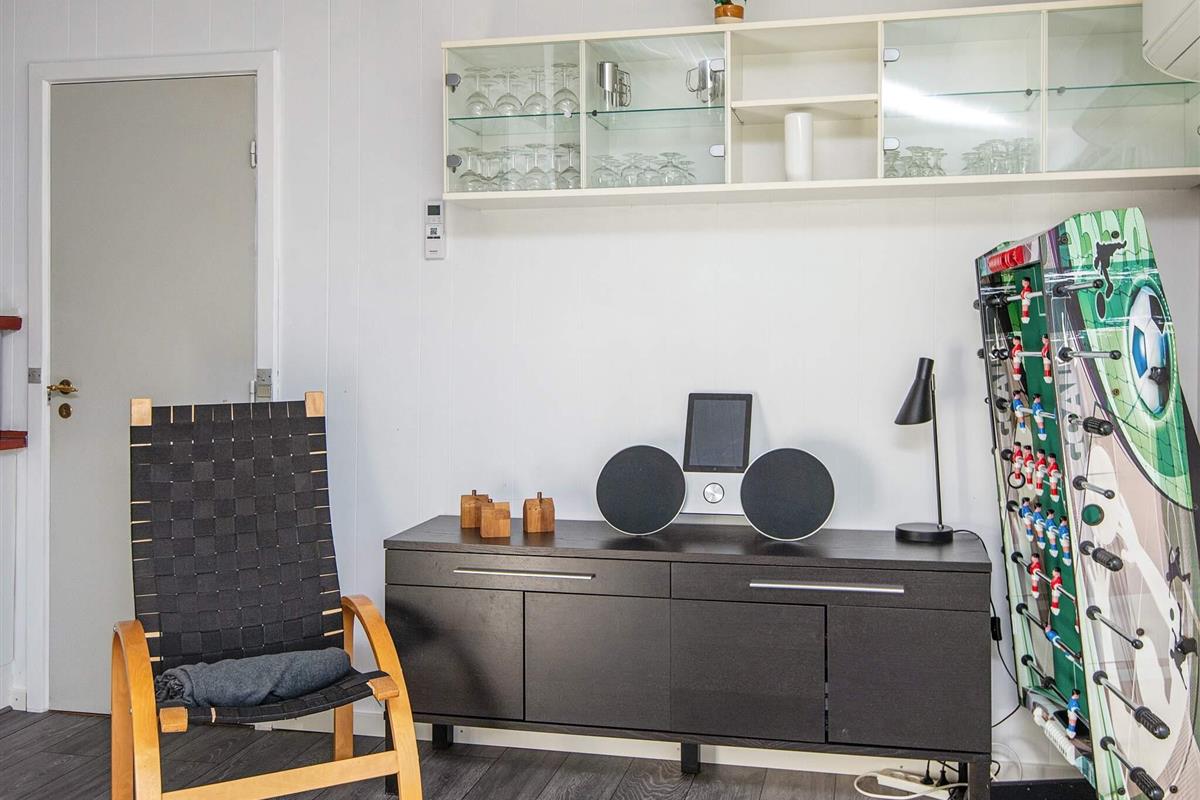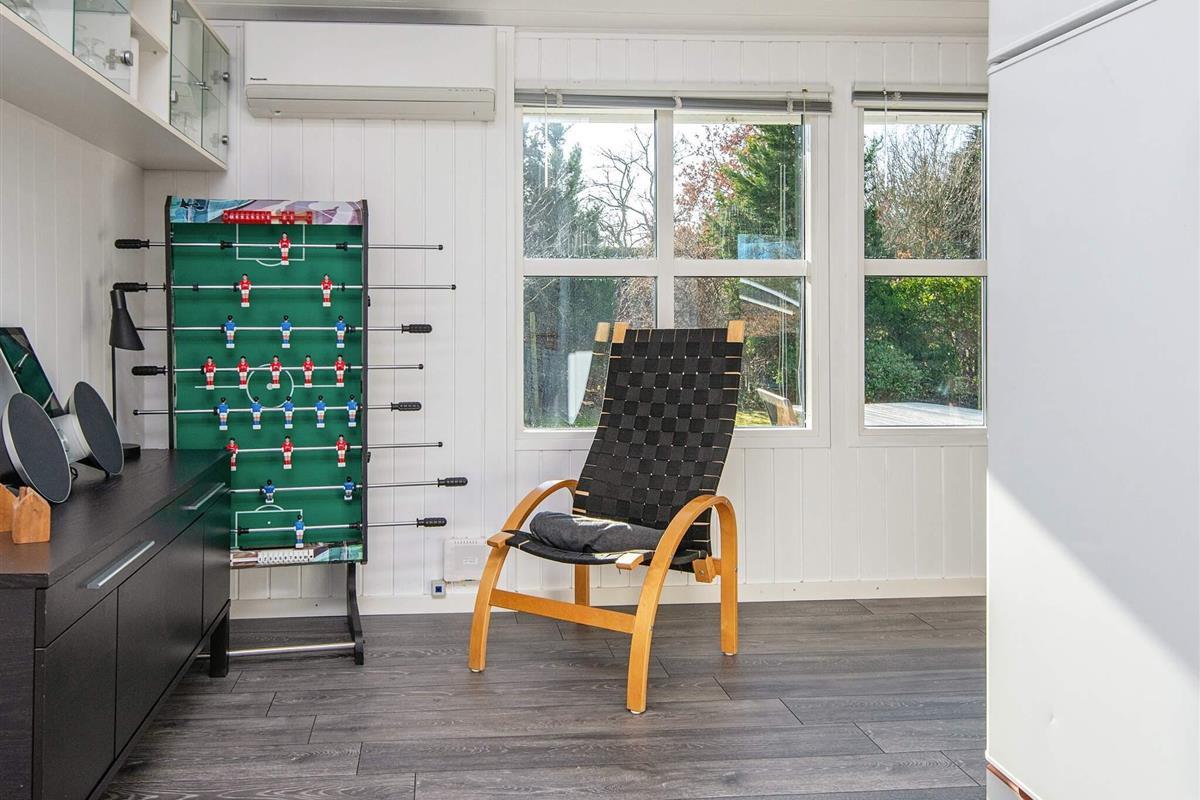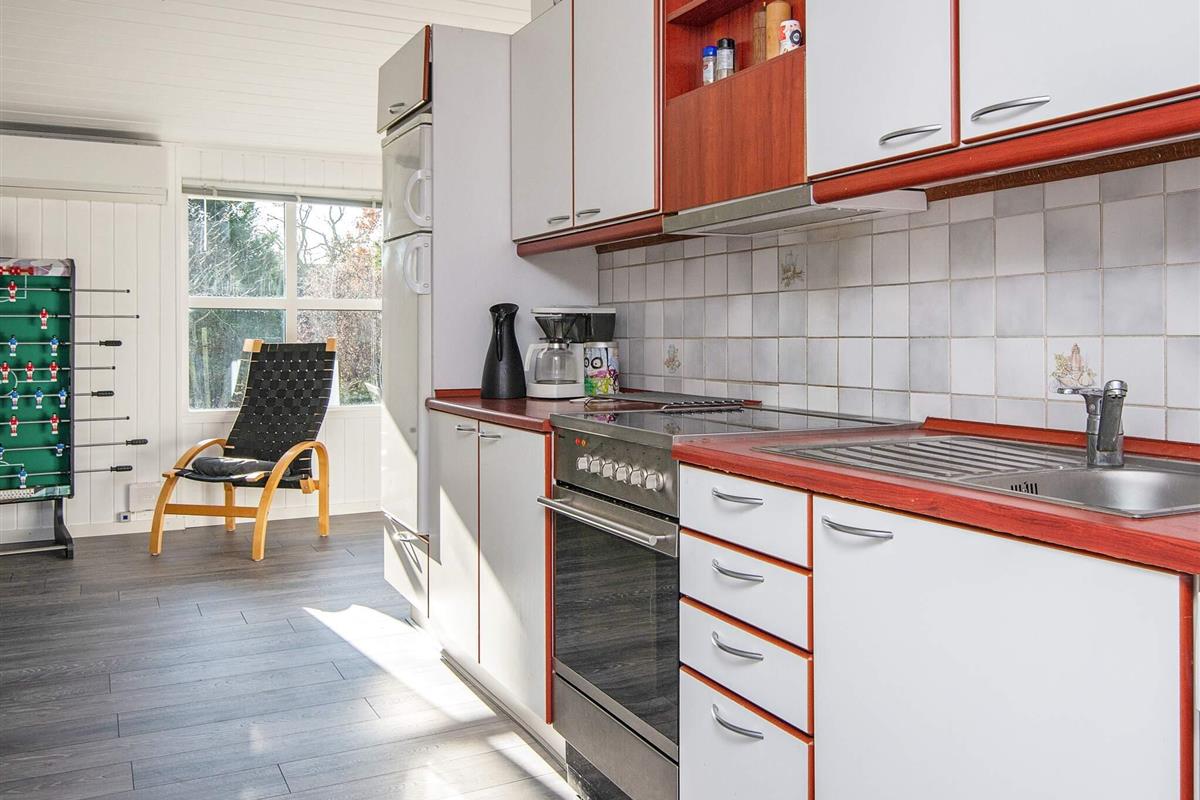 Im Umkreis von nur 100 m befinden sich nicht weniger als drei Bolzplätze, ein Waldspielplatz und eine Petanquebahn. Sie wohnen hier zudem nur etwa 100 m vom kleinen, gemütlichen Hafen am Fjord entfernt, wo Sie die Möglichkeit haben, ein Boot ins Wasser zu lassen. Dort sind auch Tische und Bänke für Lagerfeuer sowie ein weiterer Spielplatz vorhanden.