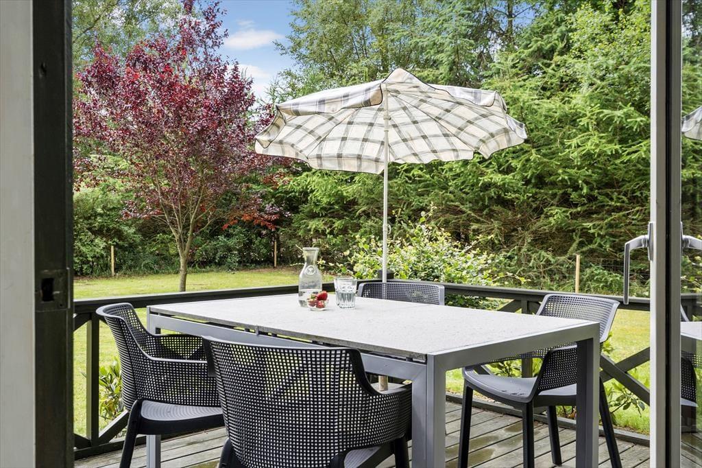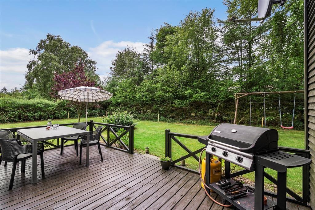 An heißen Sommertagen, wenn die Sonne hoch am Himmel steht, lockt die grüne Rasenfläche. Schnappe dir also deinen Fußball und genieße ein fröhliches Fußballspiel mit der Familie, bevor du dich auf die mit Gartenmöbeln ausgestattete Terrasse begibst. Auf der Terrasse kannst du ein leckeres Abendessen genießen, während die Kinder und Hunde auf der Wiese spielen. Da das große Grundstück eingezäunt ist, kannst du sie frei spielen lassen, ohne dir Sorgen zu machen, dass sie Umgebung des Hauses auf eigene Faust erkunden. Auf dem Grundstück stehen große Bäume, die im heißen Sommer viel Schatten spenden.