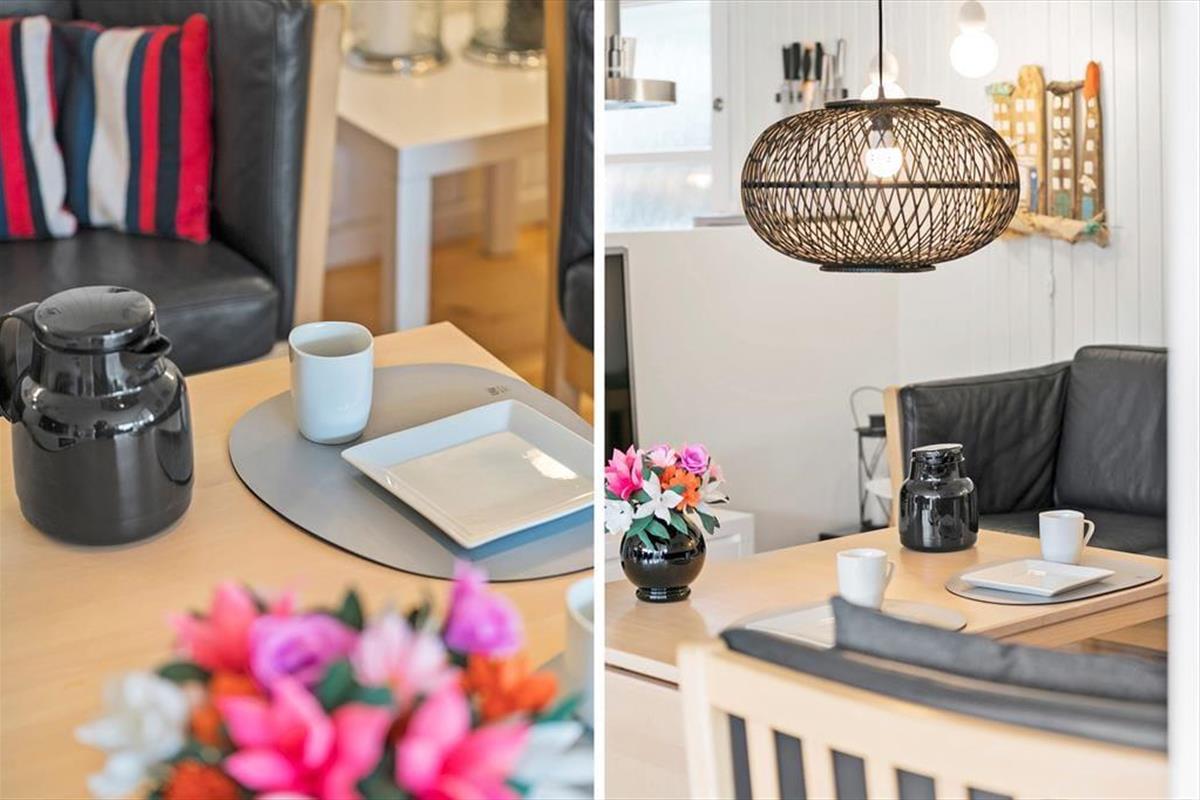 Dieses ausgesprochen schöne und gepflegte Ferienhaus betreten Sie durch die ansprechende, helle Küche mit weißem Küchenmobiliar. Offen an die Küche schließt der Wohn- und Essbereich, der über eine große Fensterpartie mit einem schönen Tageslichteinfall verfügt. Vom Wohnraum genießen Sie direkten Zugang zur Terrasse. Das attraktive, helle Badezimmer beinhaltet eine Duschnische und eine Fußbodenheizung. Die Schlafplätze verteilen sich auf drei helle Schlafräume. Das gesamte Urlaubsdomizil präsentiert sich hell, freundlich und gepflegt.